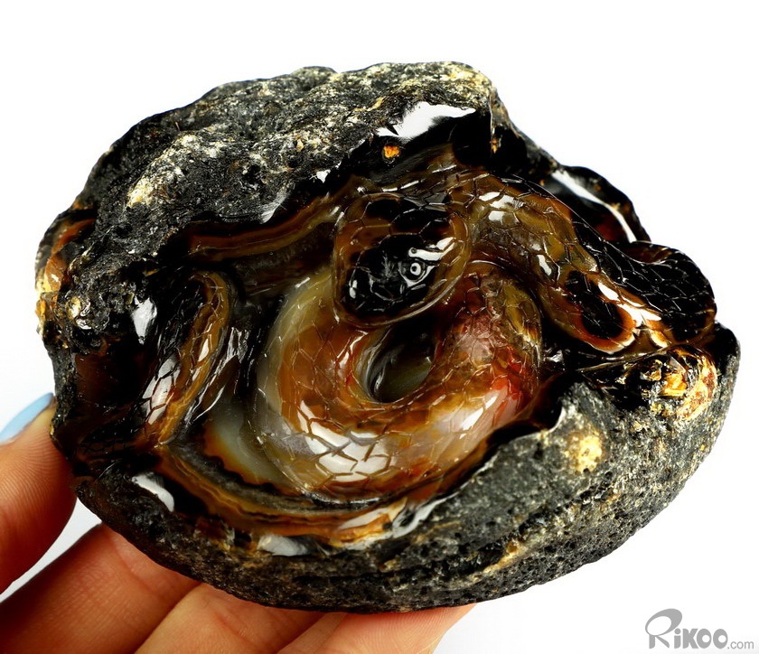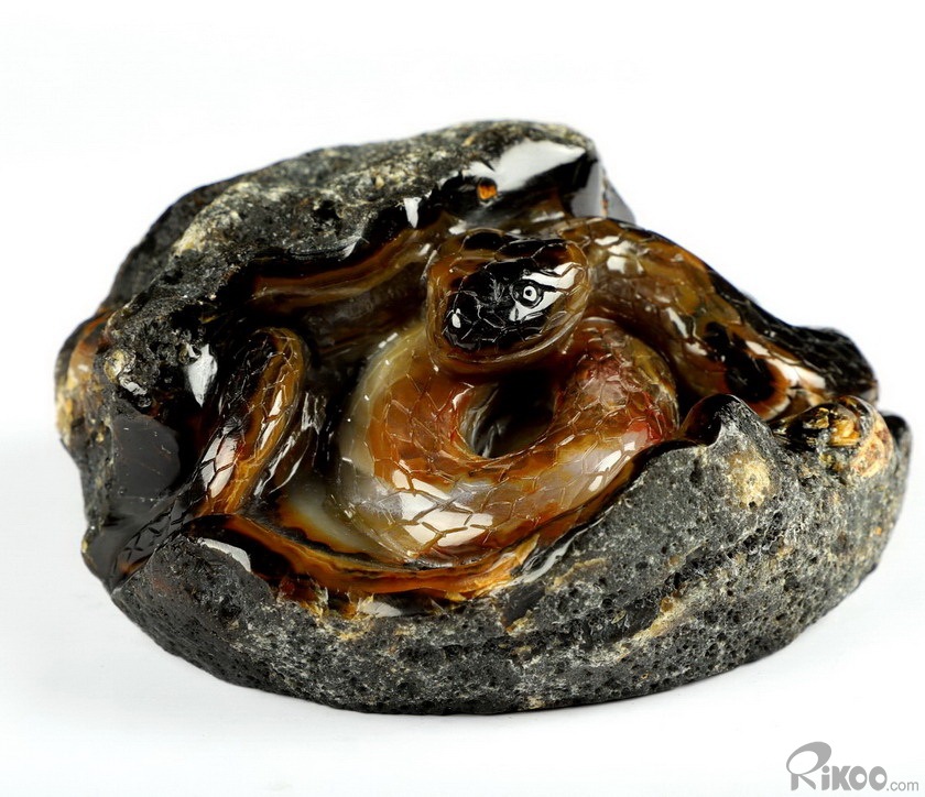 4.0" Carnelian Carved Crystal Snake, Realistic, Crystal Healing