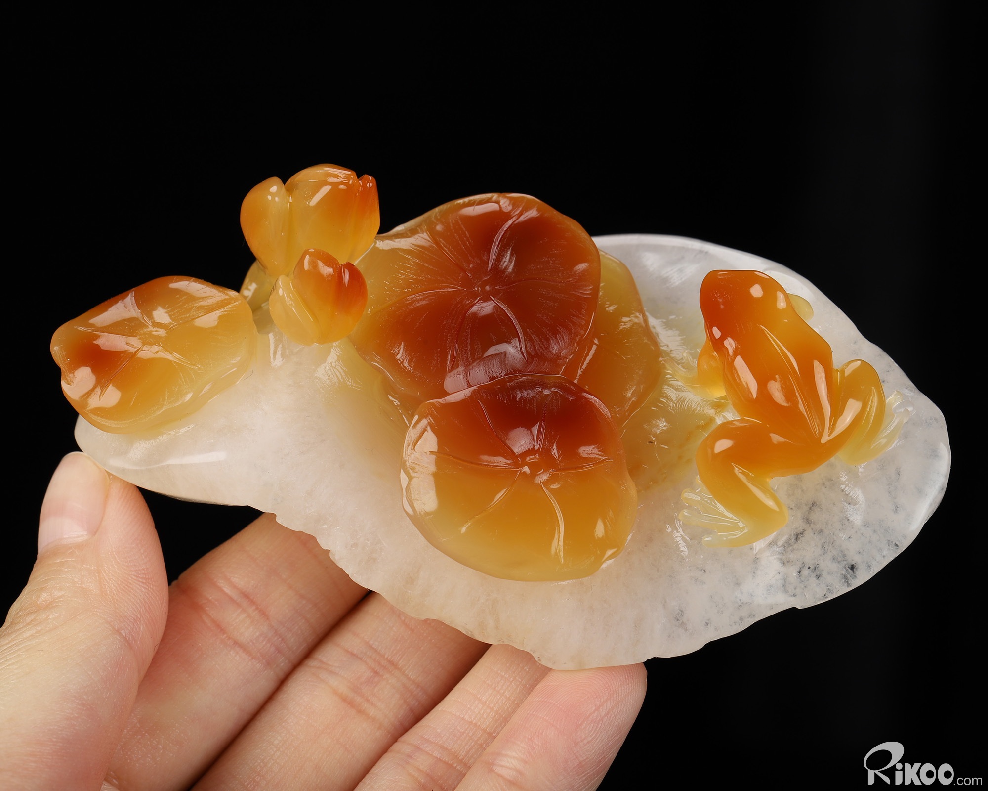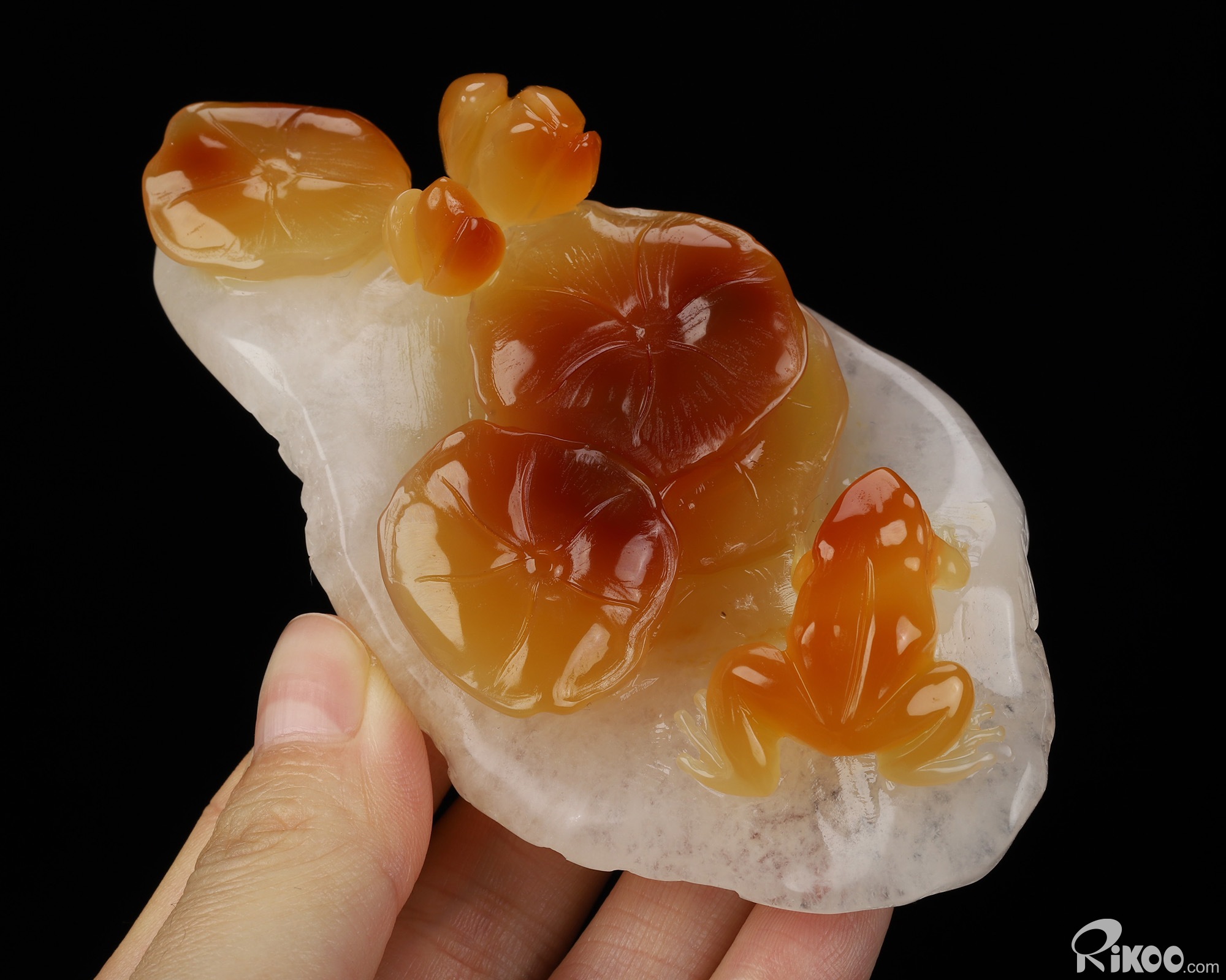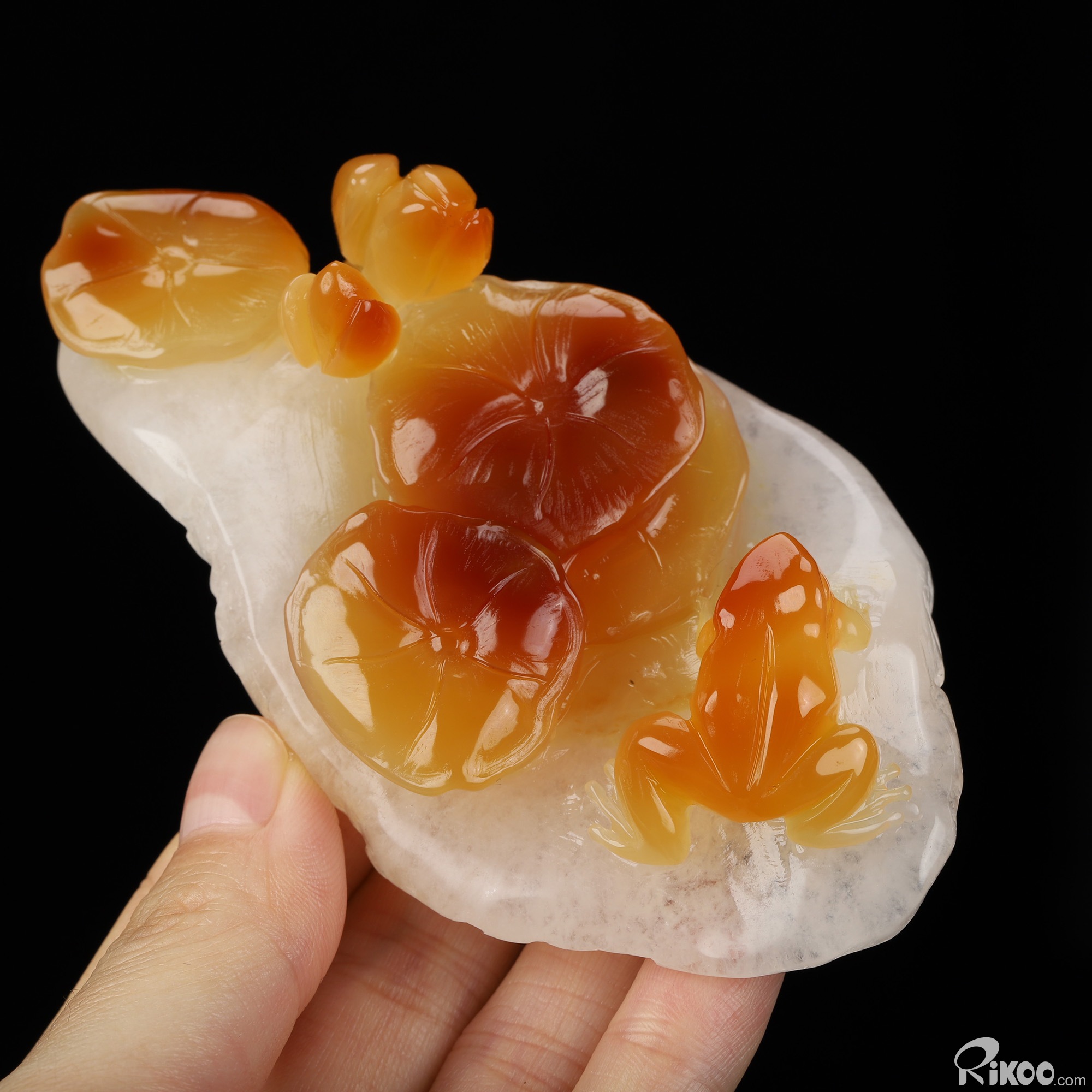 4.0" Carnelian Hand Carved Crystal Frog Sculpture, Crystal Healing