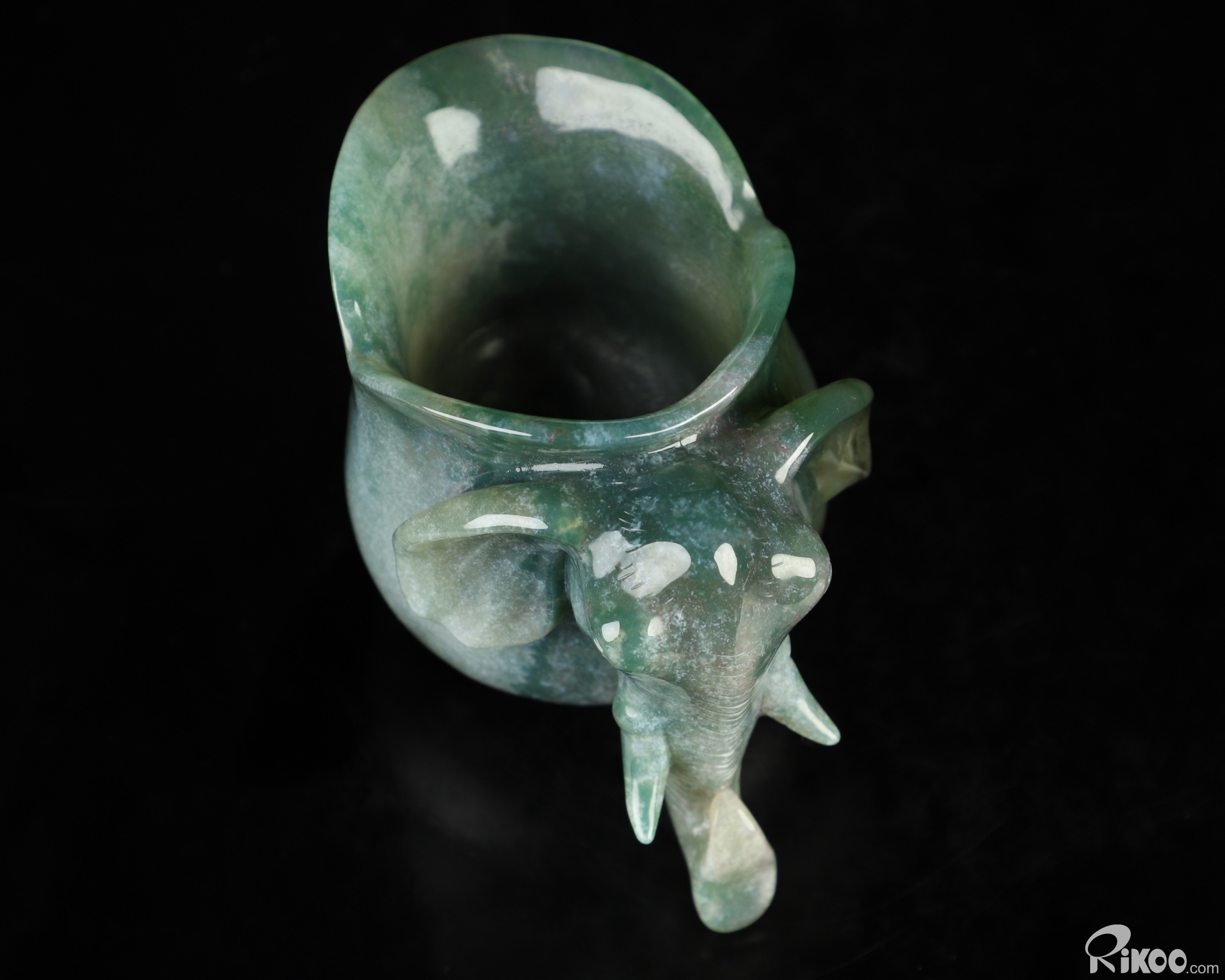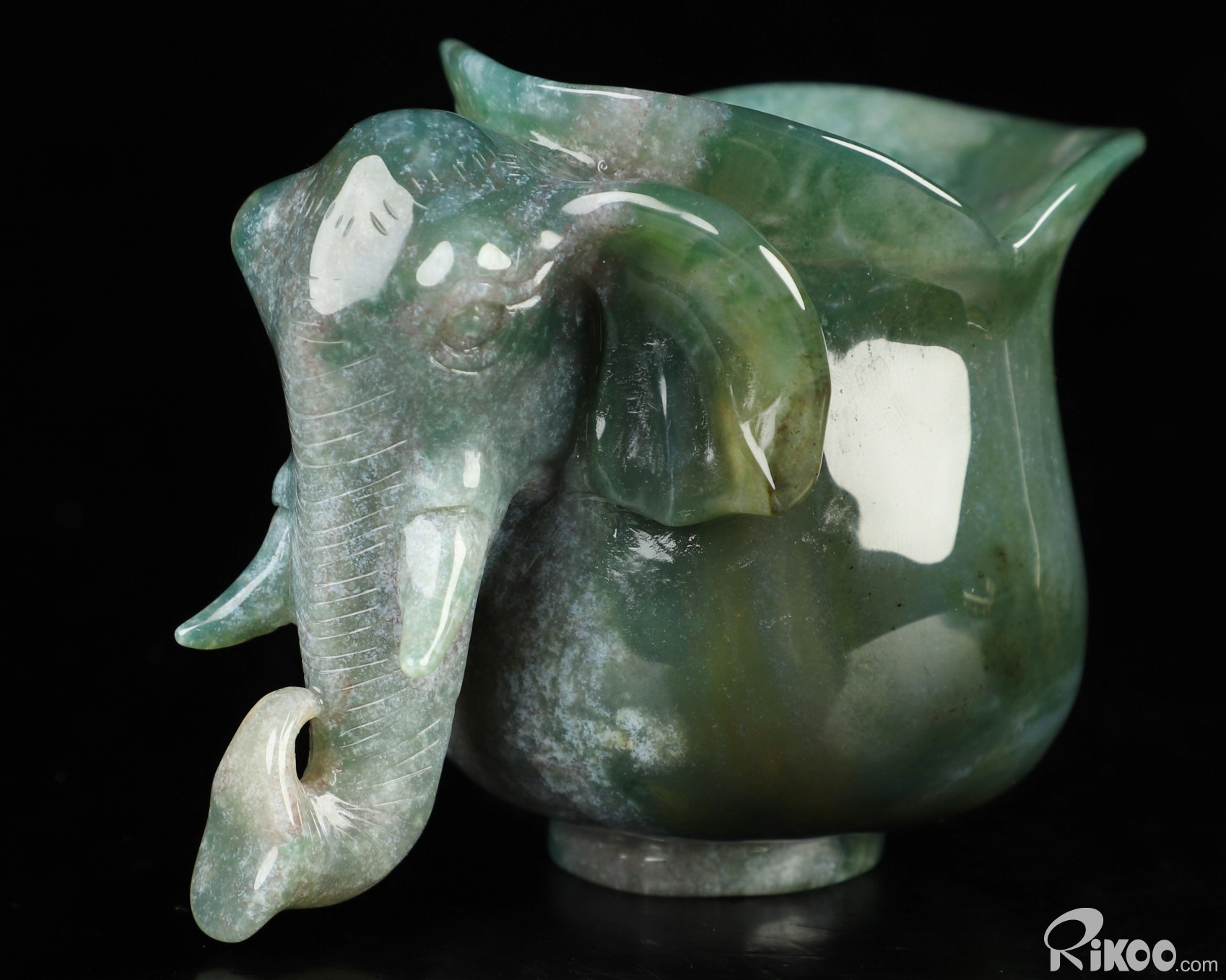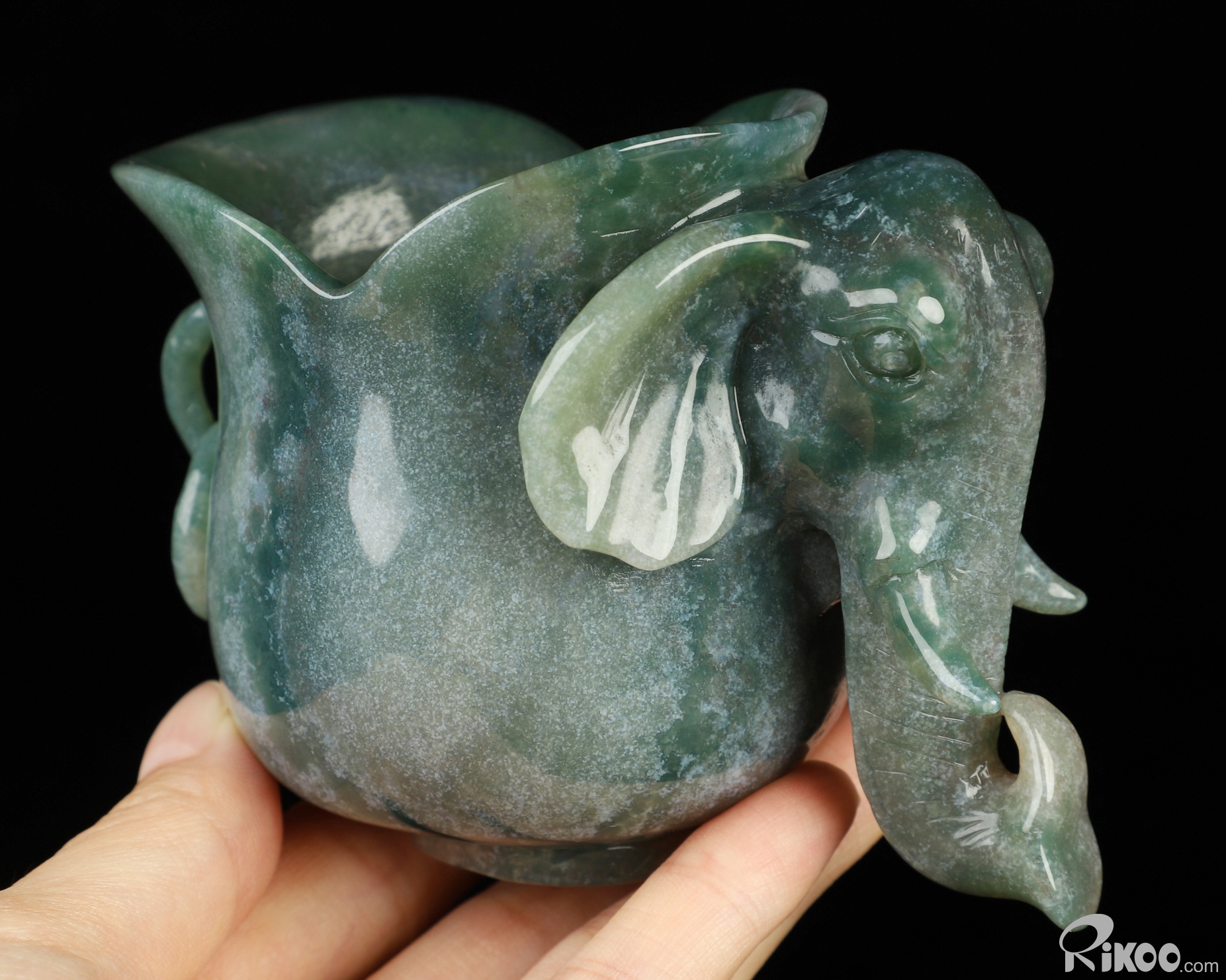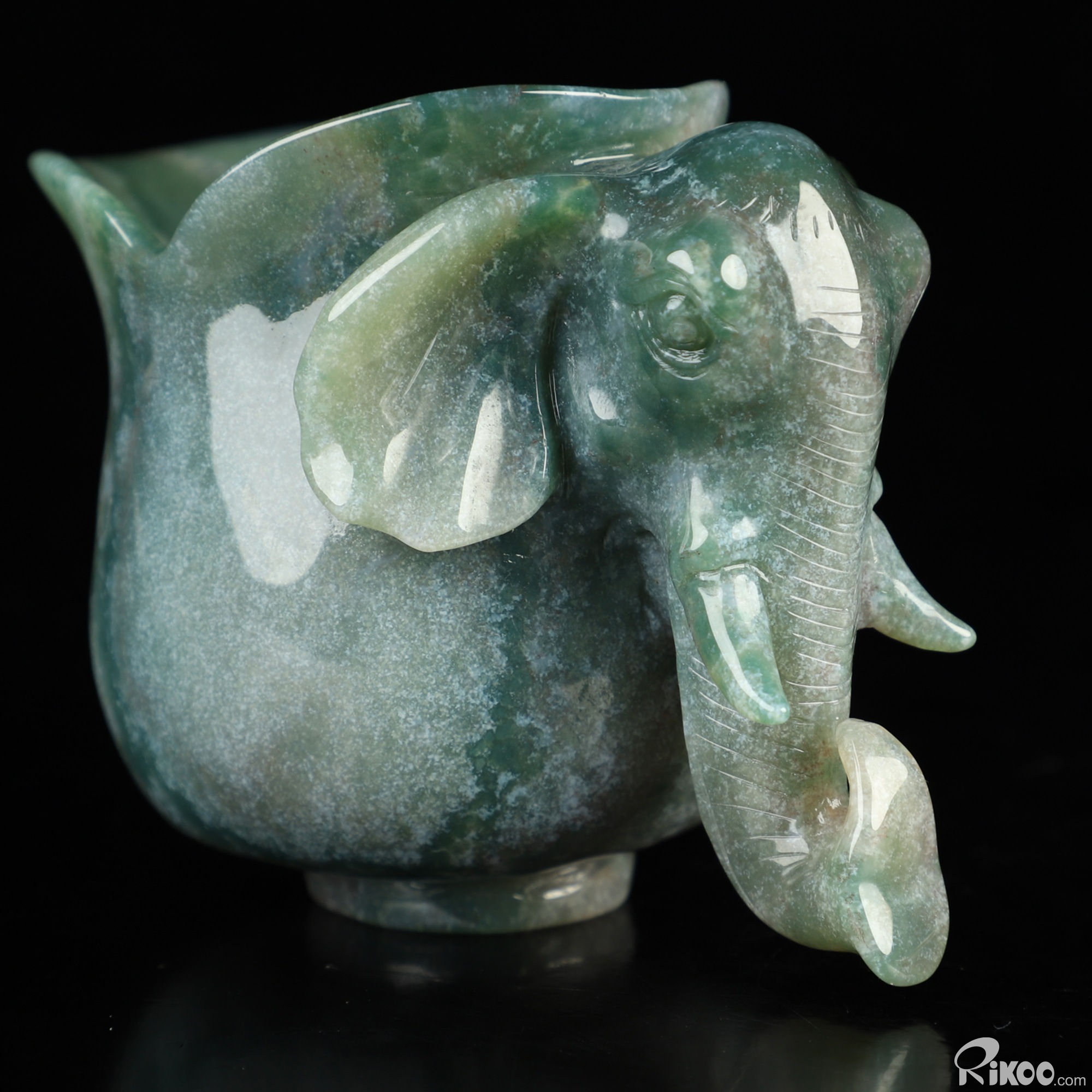 4.0" Green Moss Agate Hand Carved Crystal Elephant Cup, Crystal Healing