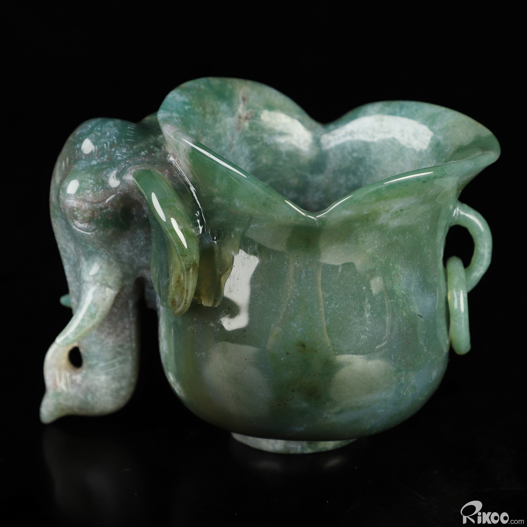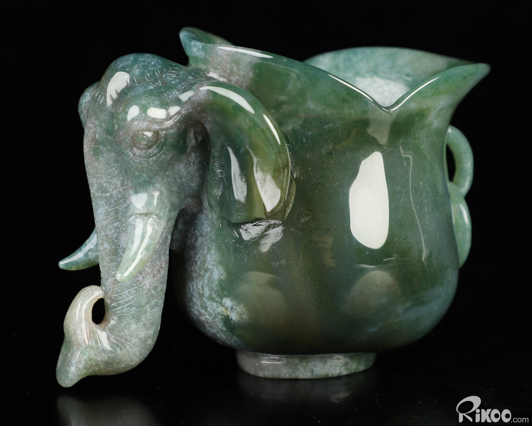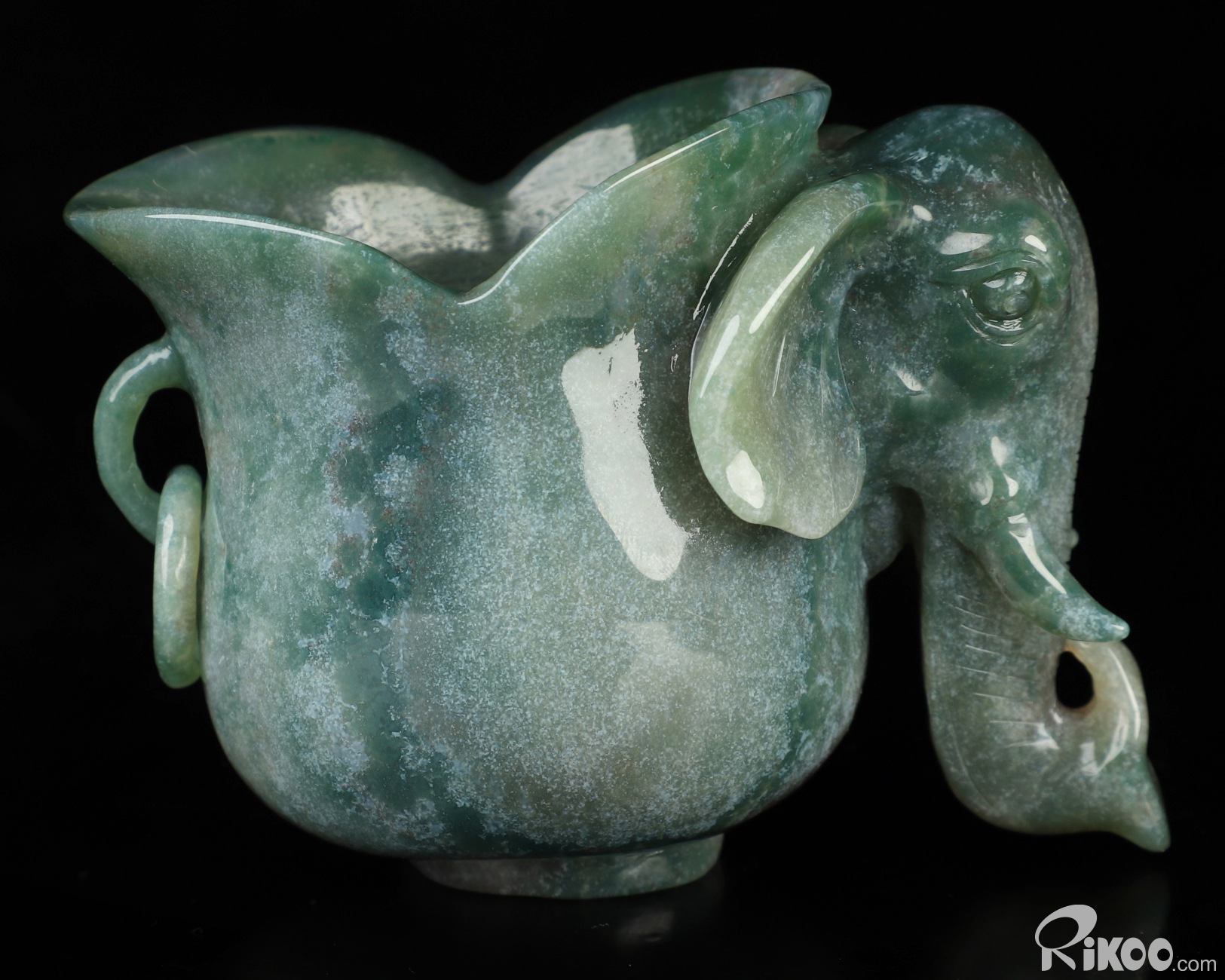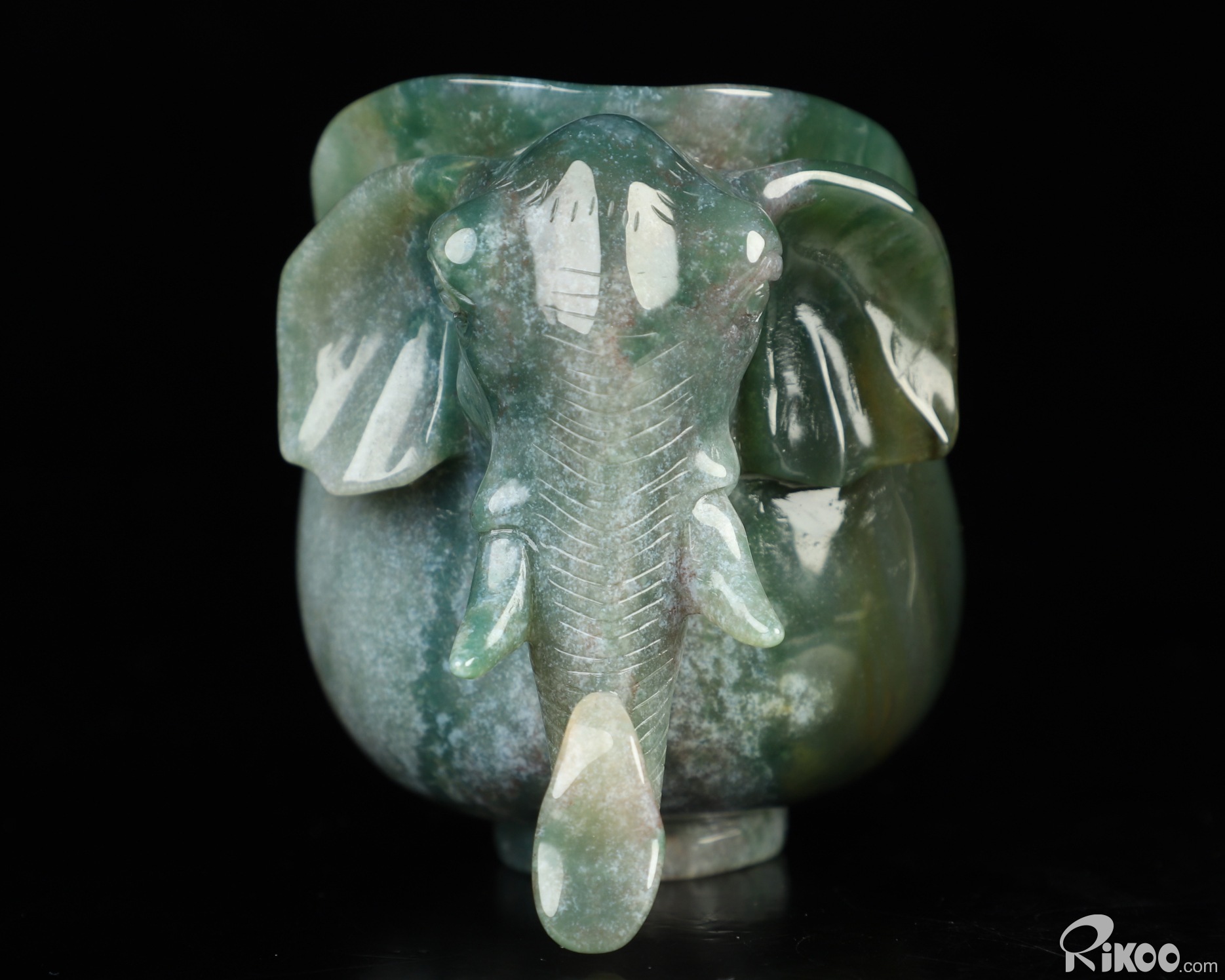 4.0" Green Moss Agate Hand Carved Crystal Elephant Cup, Crystal Healing