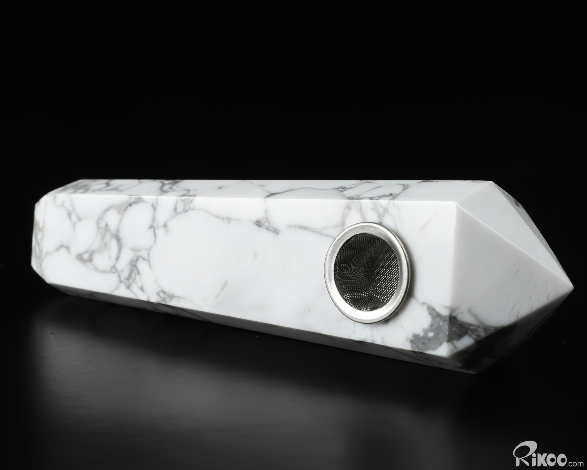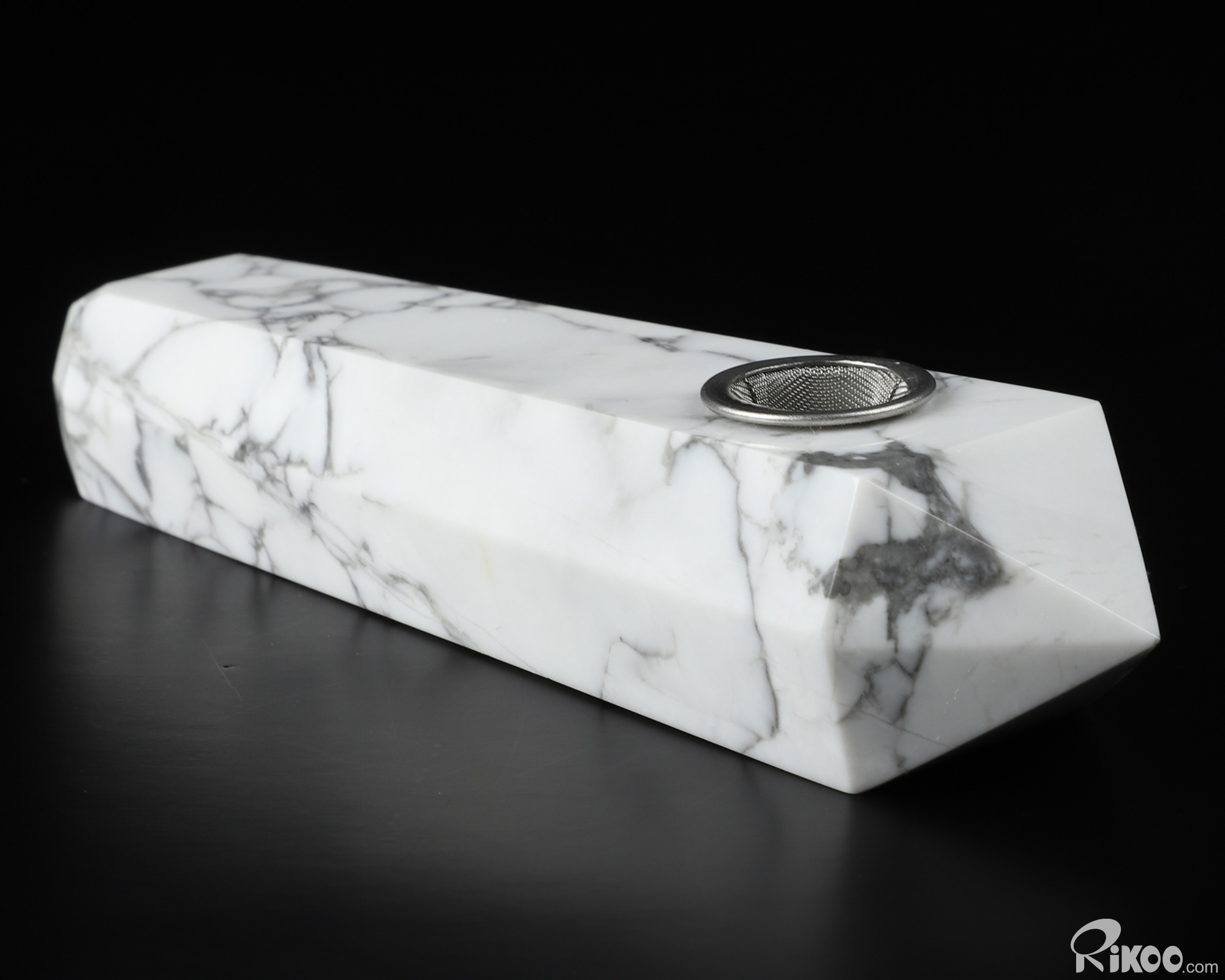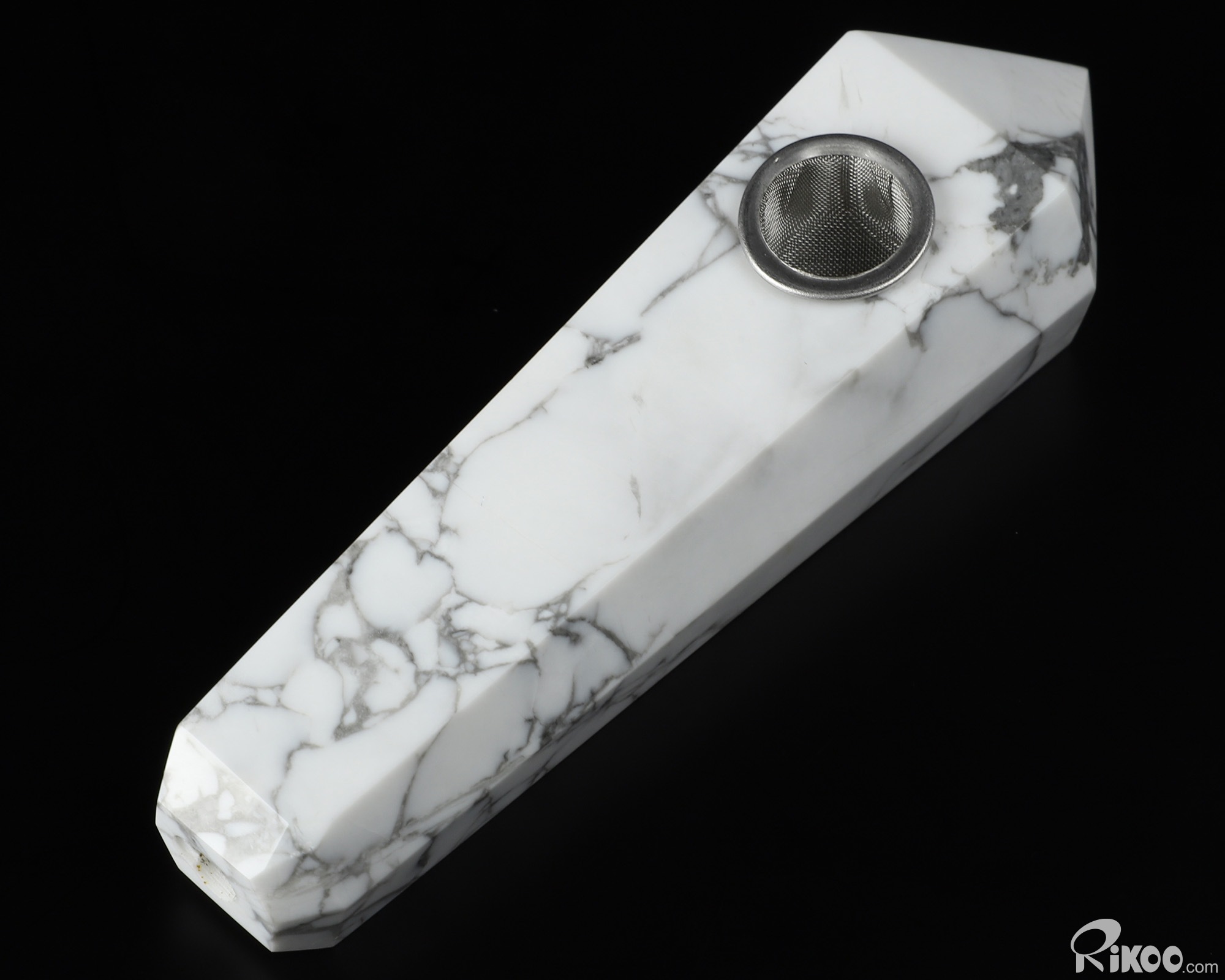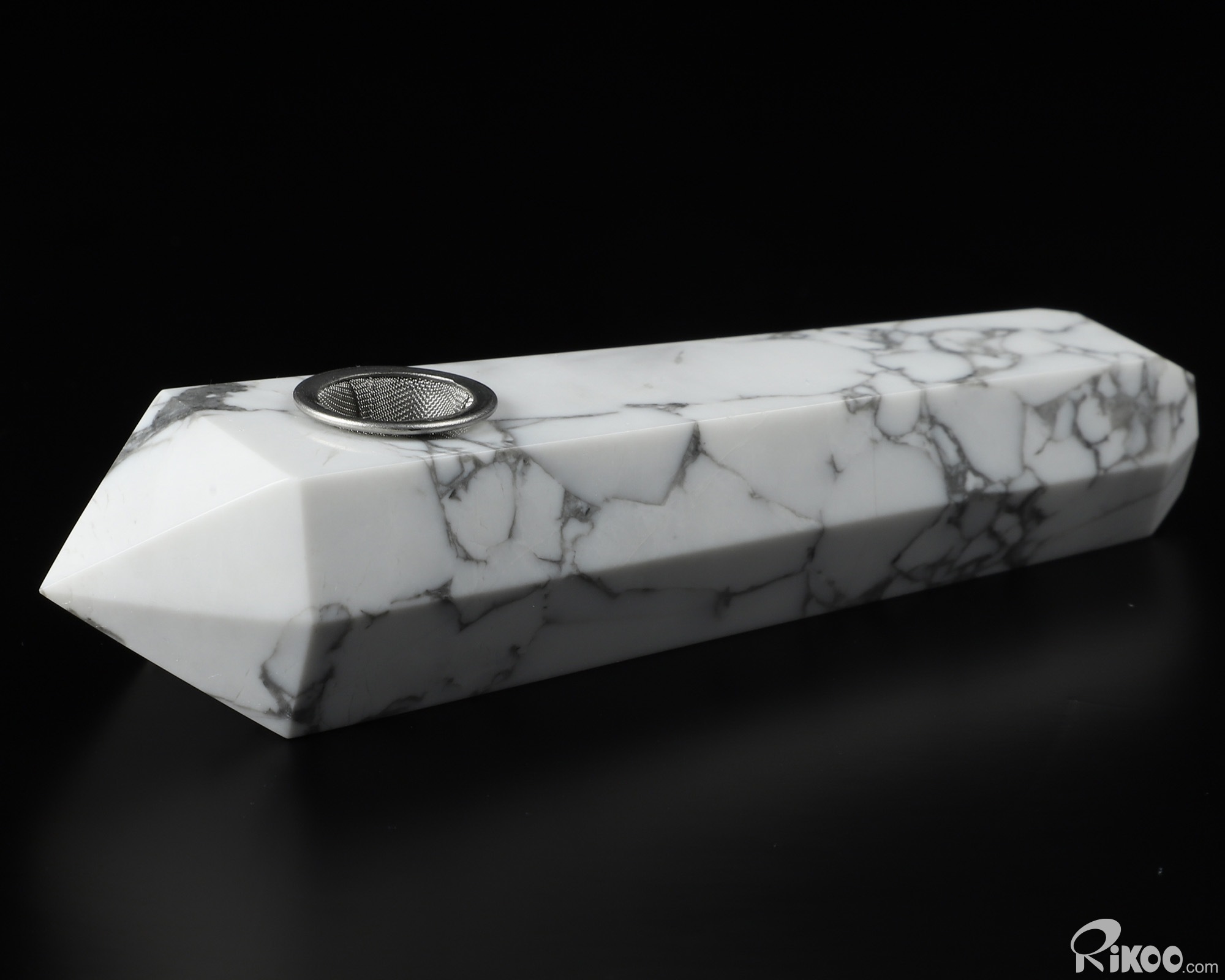 4.0" Howlite Carved Crystal Smoking Pipe, Crystal Healing