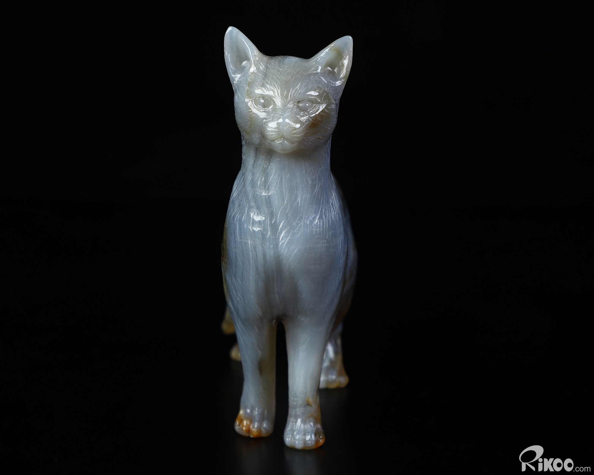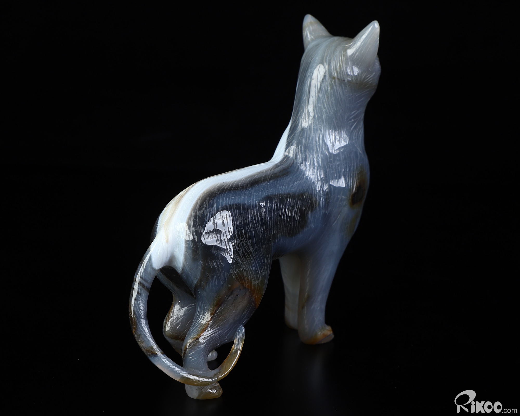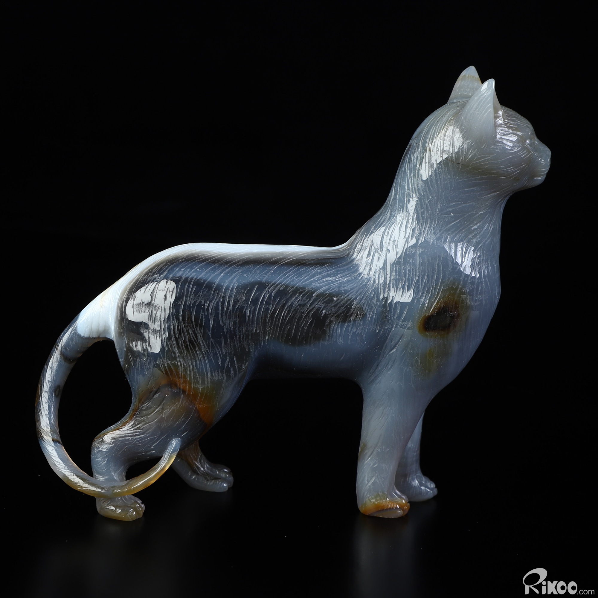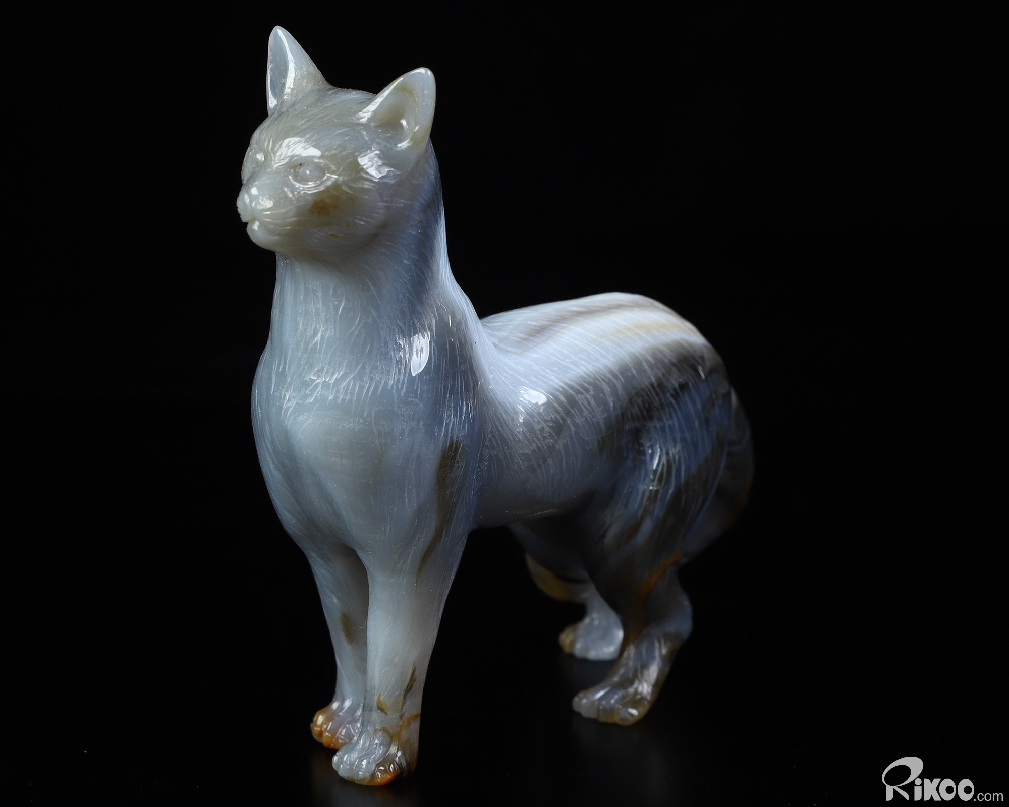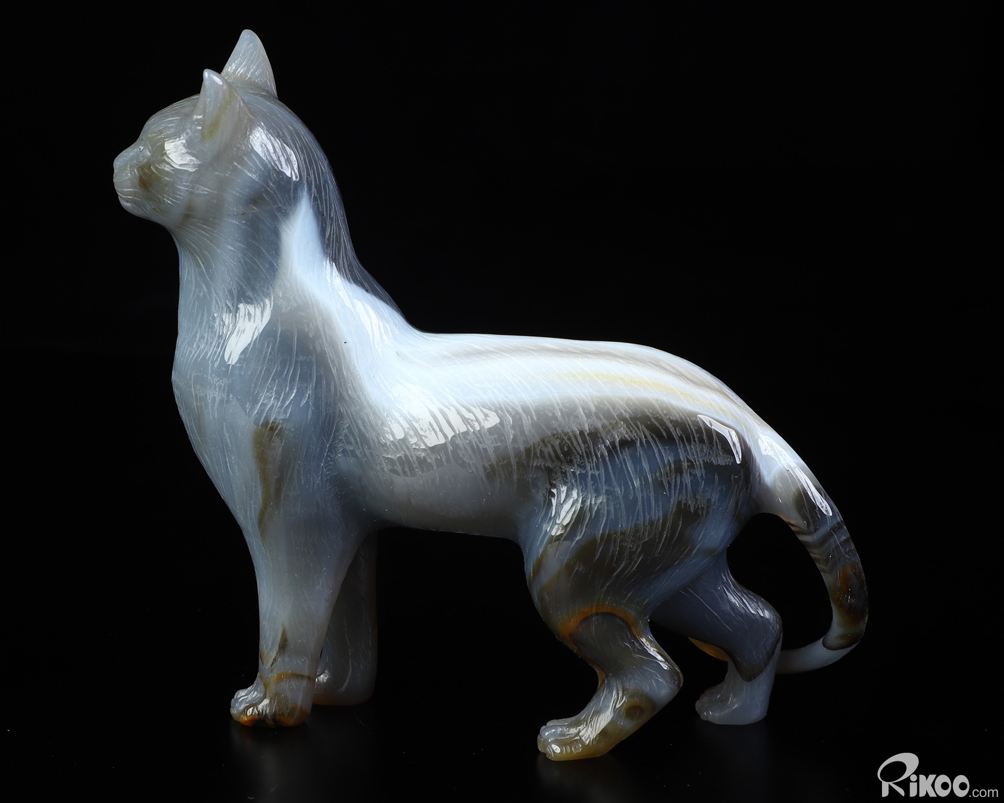 4.0" Premium Brazilian Agate Hand Carved Crystal Cat Sculpture, Crystal Healing