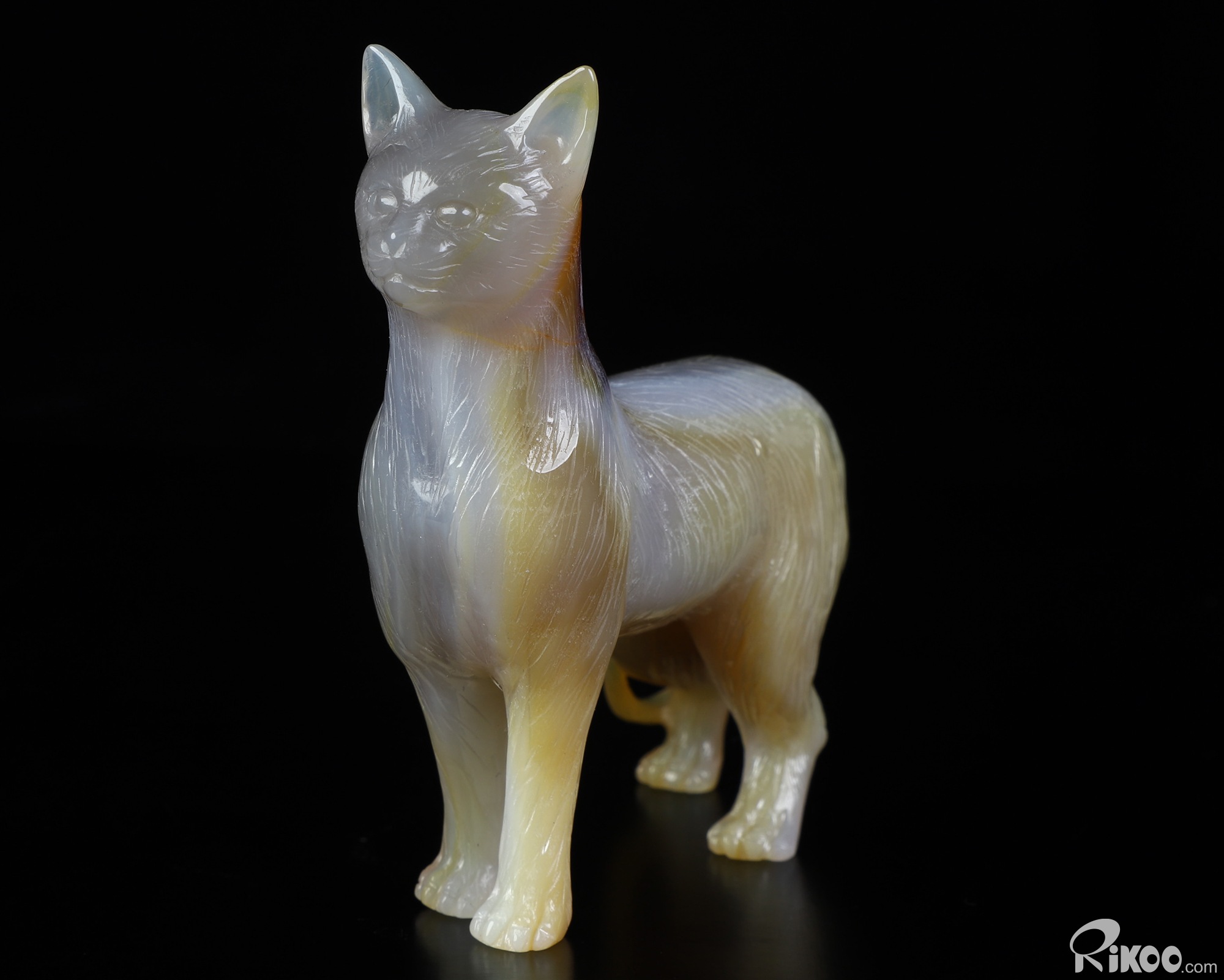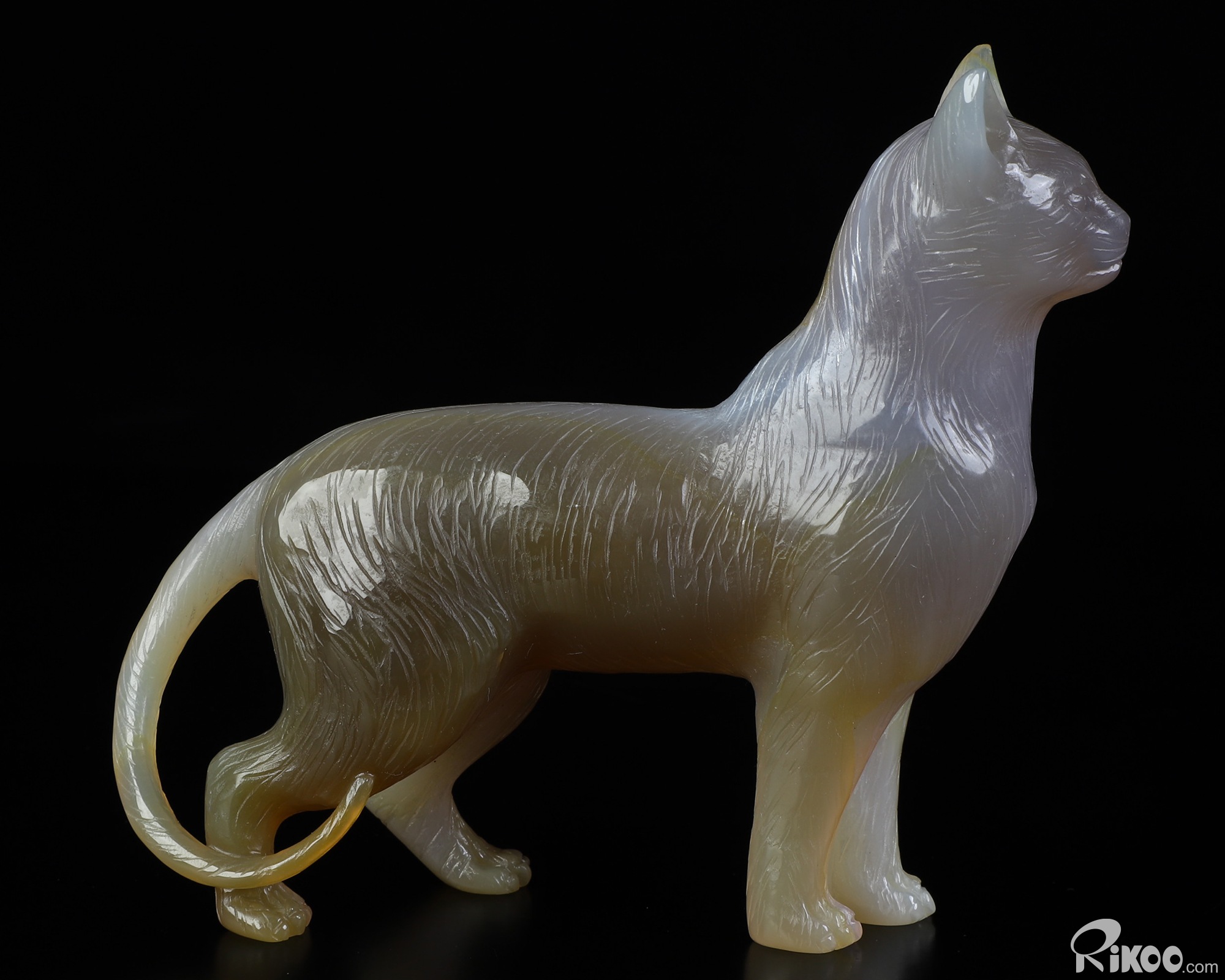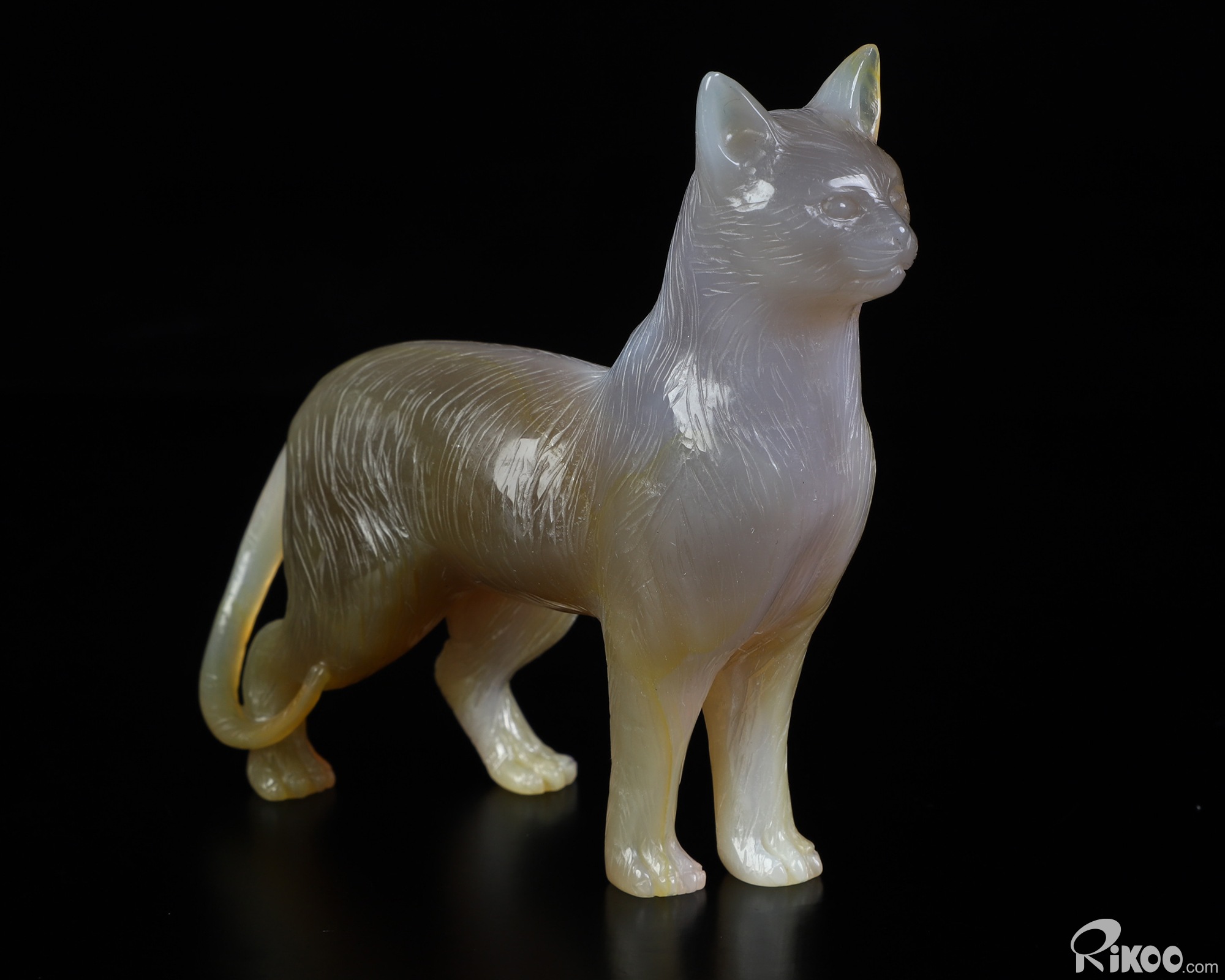 4.0" Premium Brazilian Agate Hand Carved Crystal Cat Sculpture, Crystal Healing