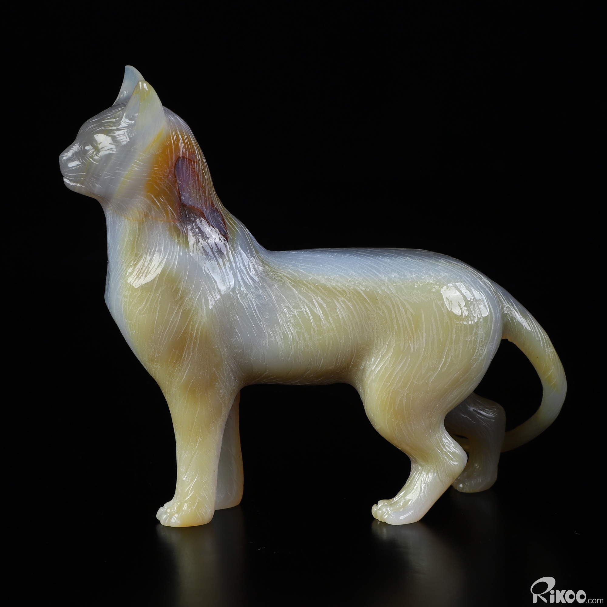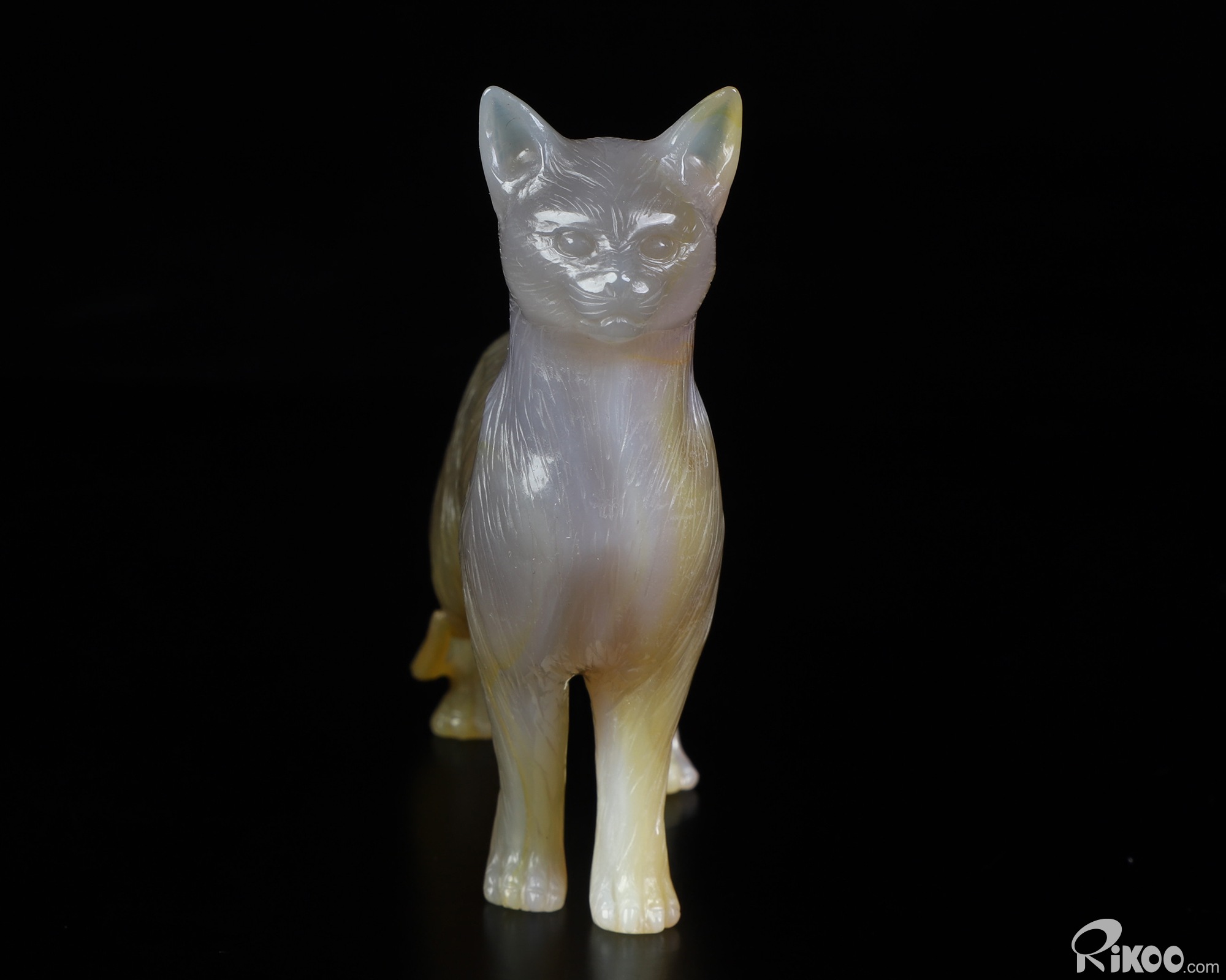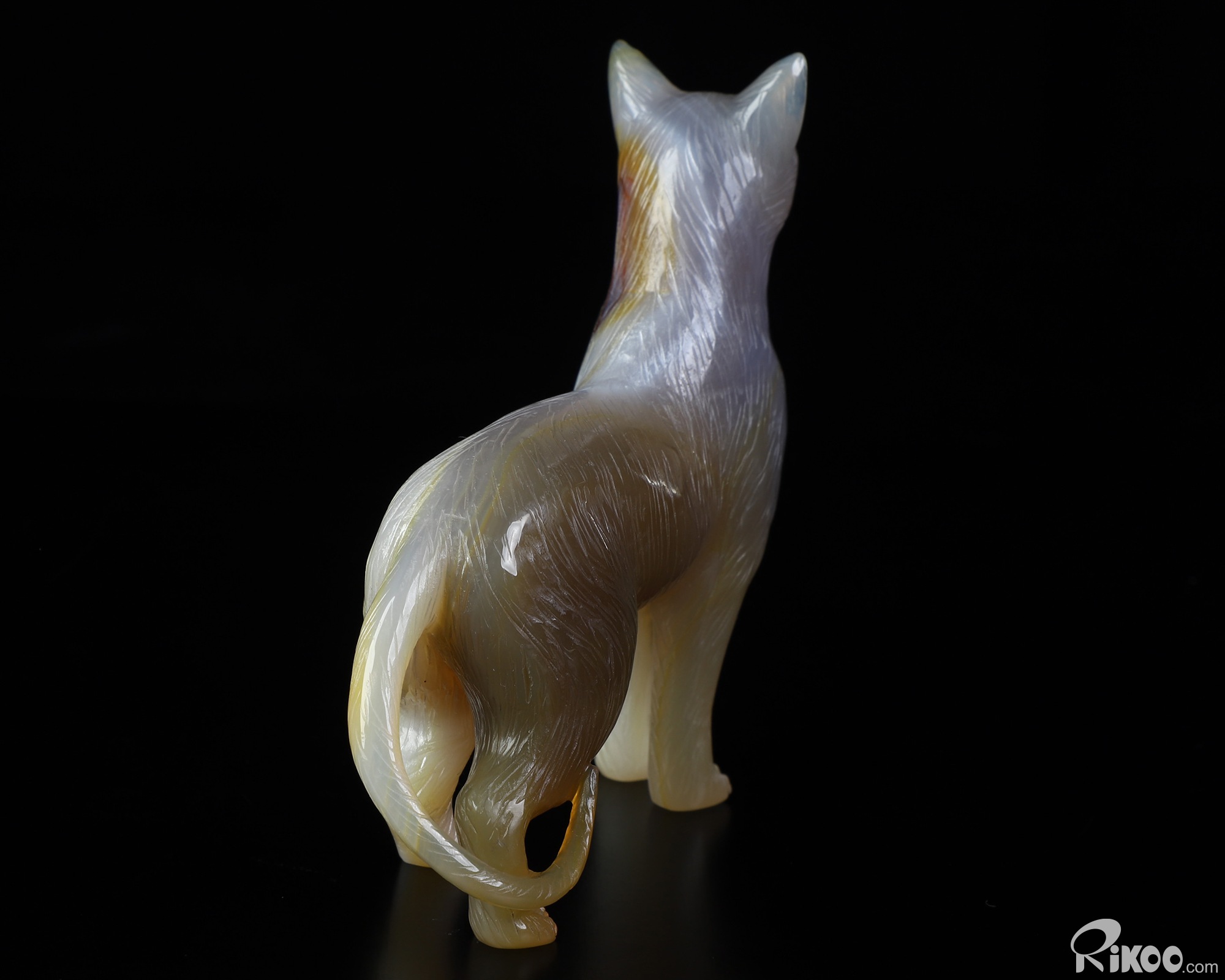 4.0" Premium Brazilian Agate Hand Carved Crystal Cat Sculpture, Crystal Healing