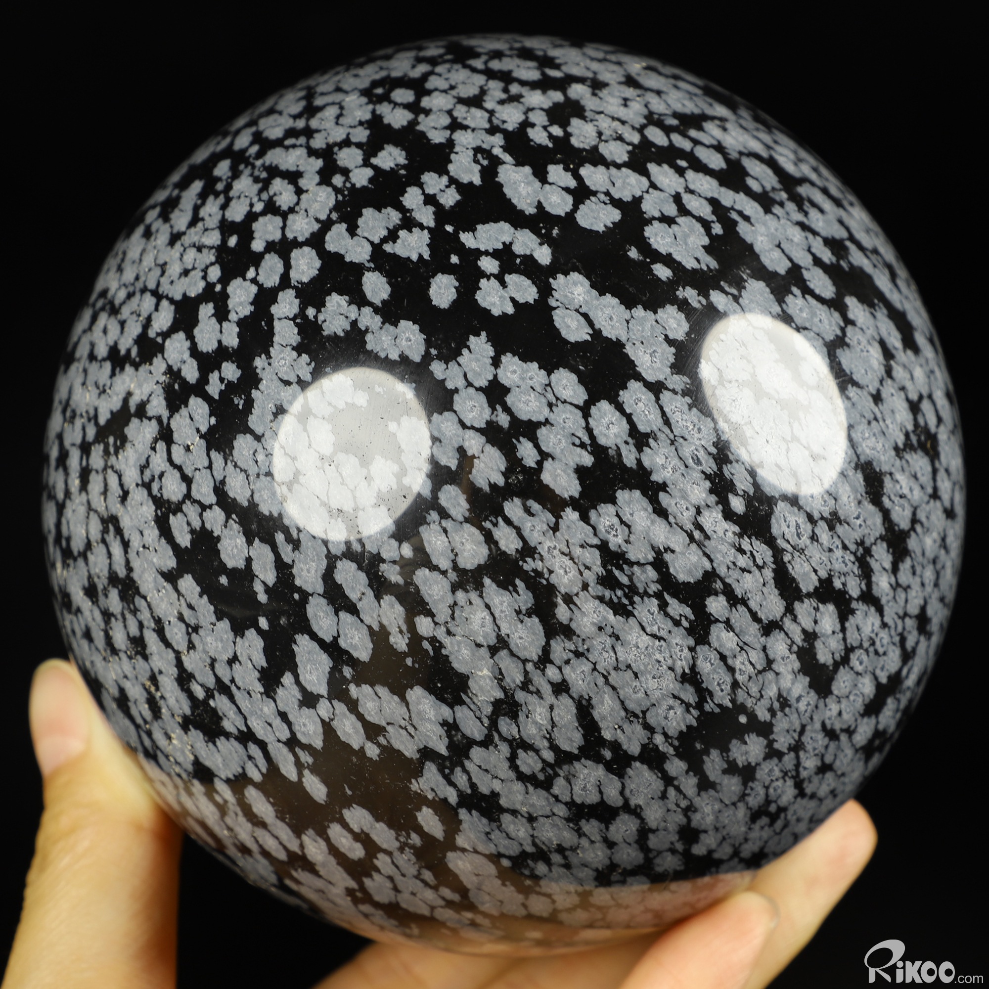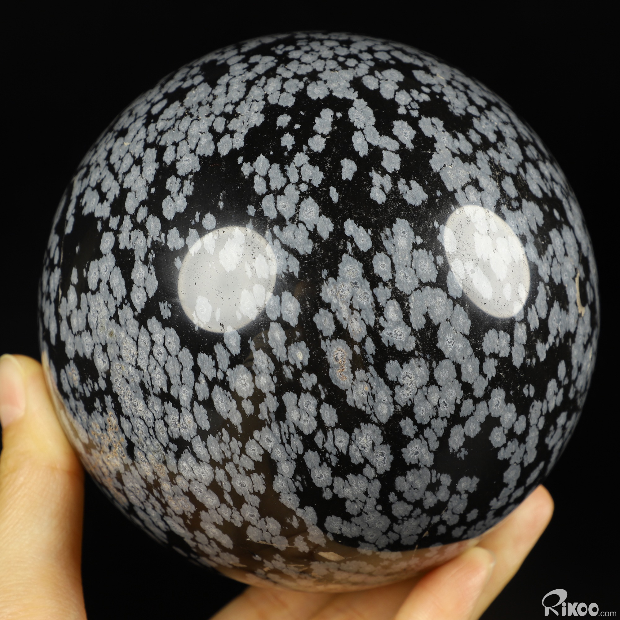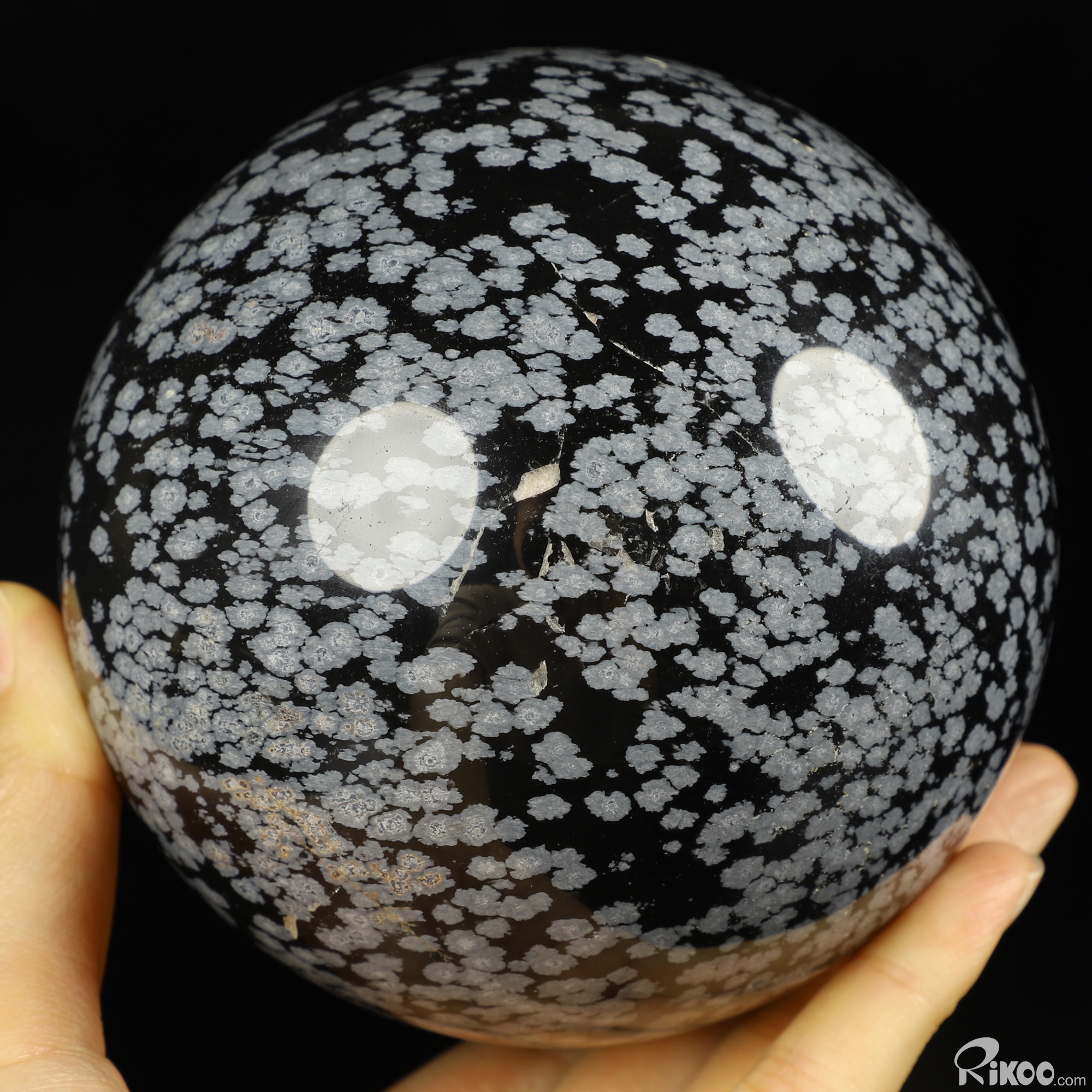 4.0" Snowflake Obsidian Hand Carved Crystal Ball/Sphere, Crystal Healing