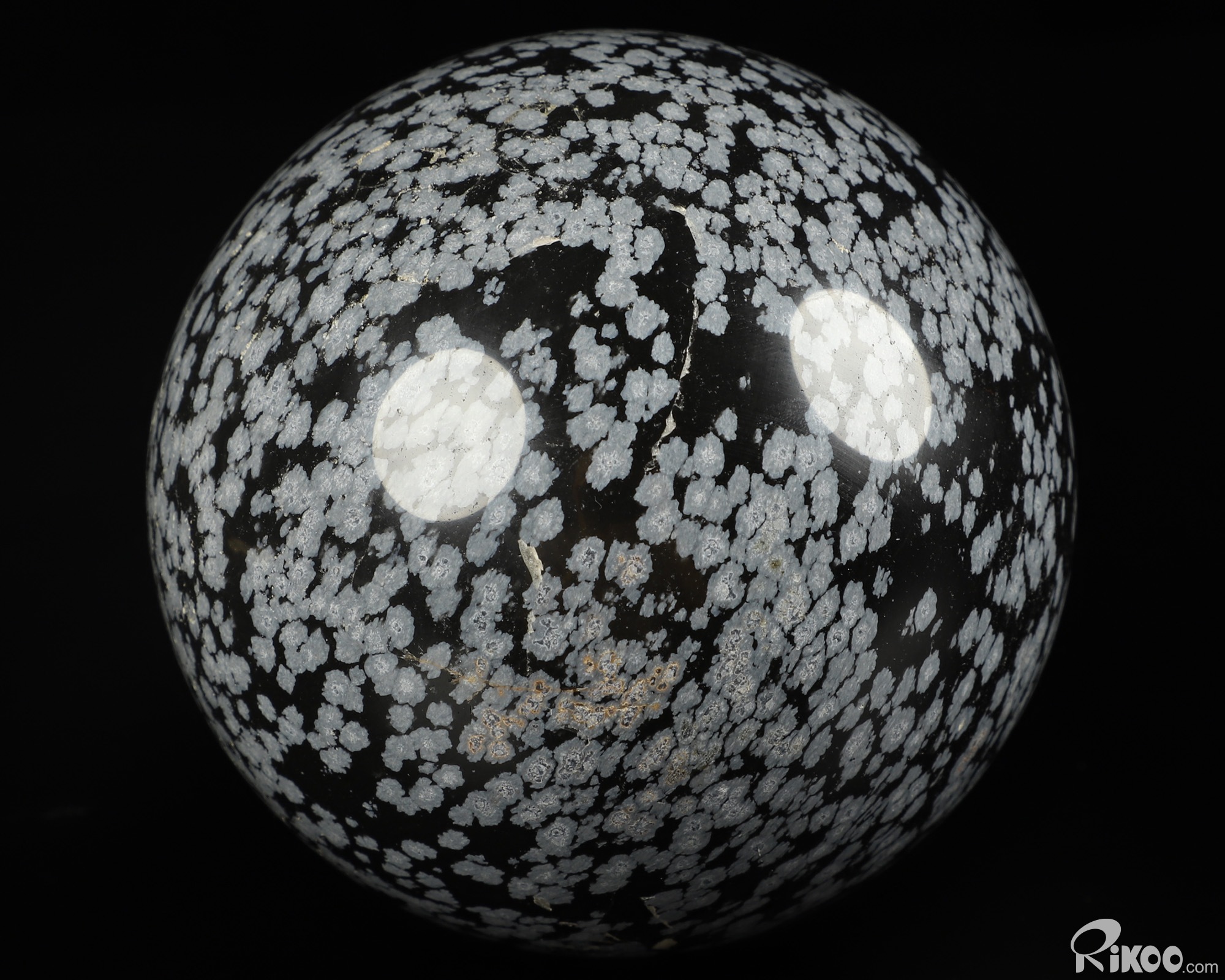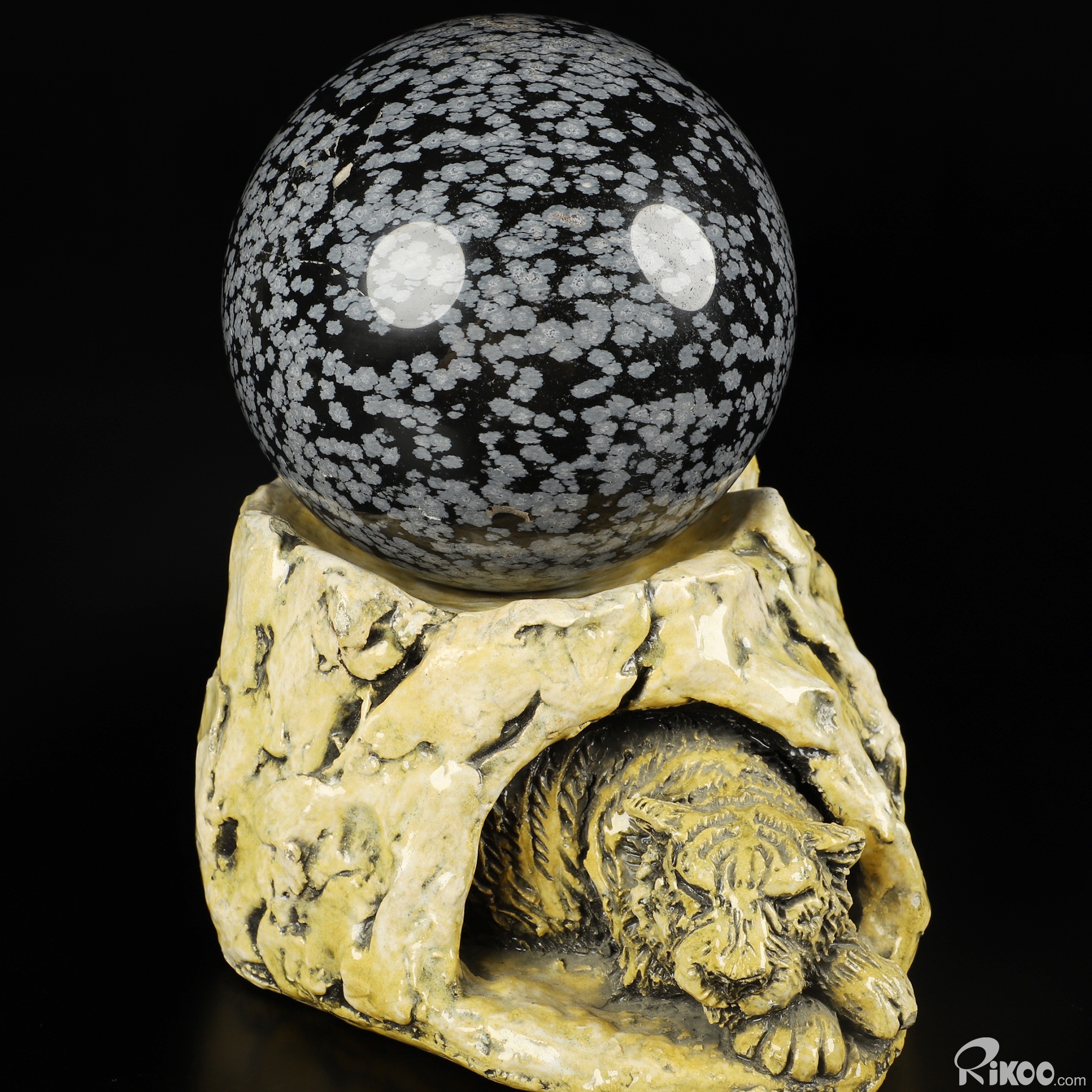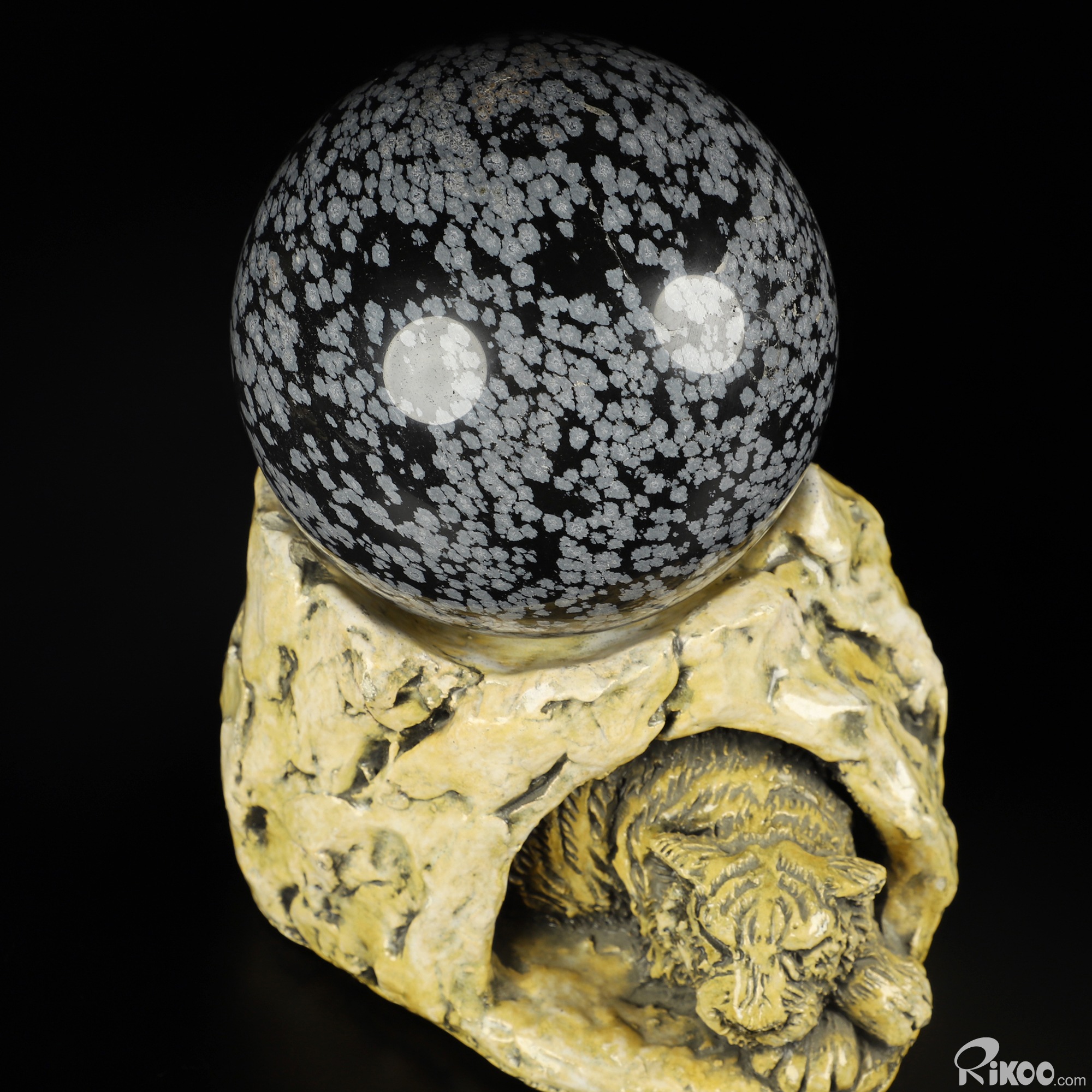4.0" Snowflake Obsidian Hand Carved Crystal Ball/Sphere, Crystal Healing