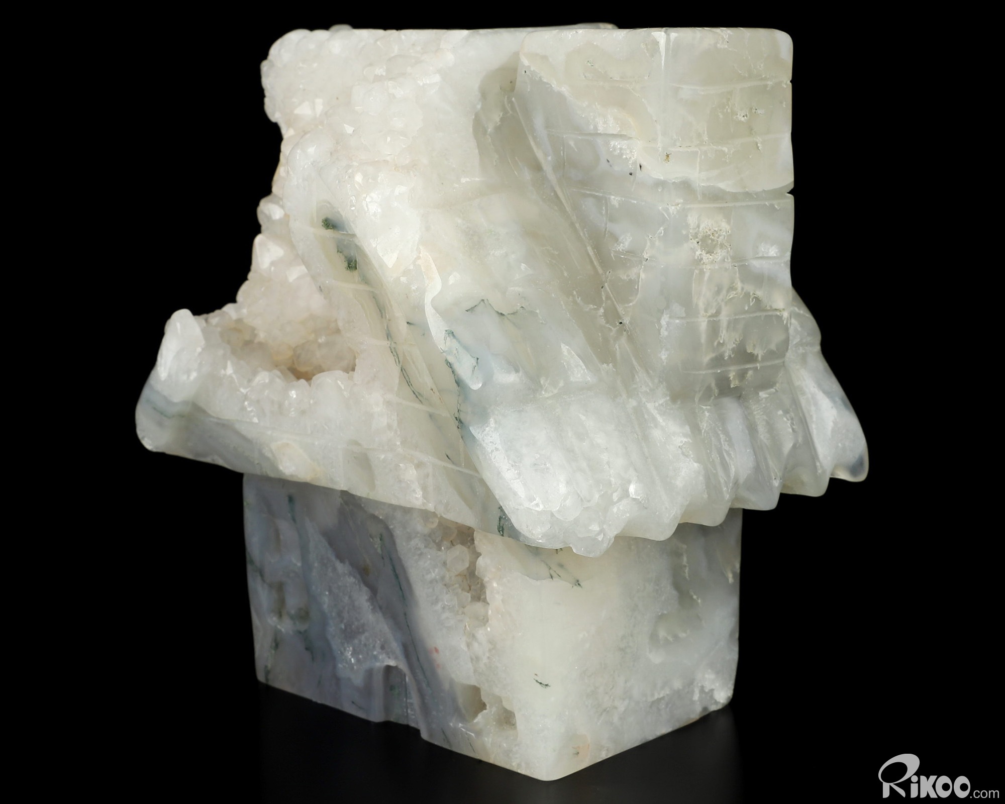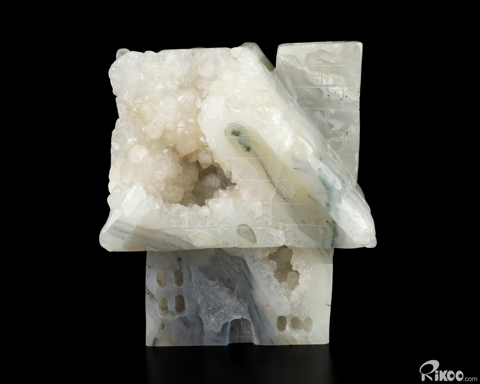 4.1" Agate Geode Hand Carved Crystal House Sculpture, Crystal Healing