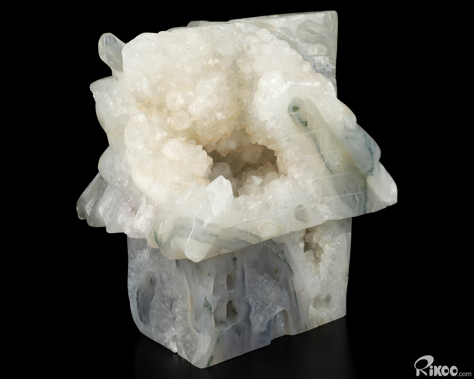 You are looking at a Agate Geode House. The House is 4.1 inches long from front to back.