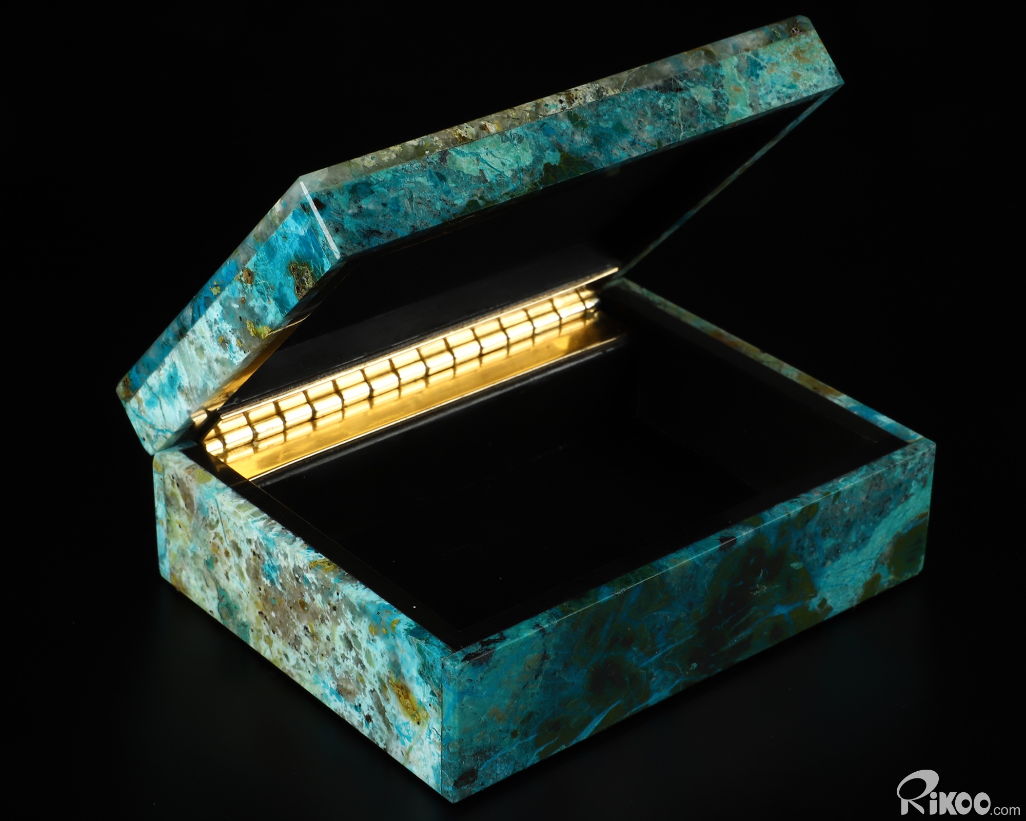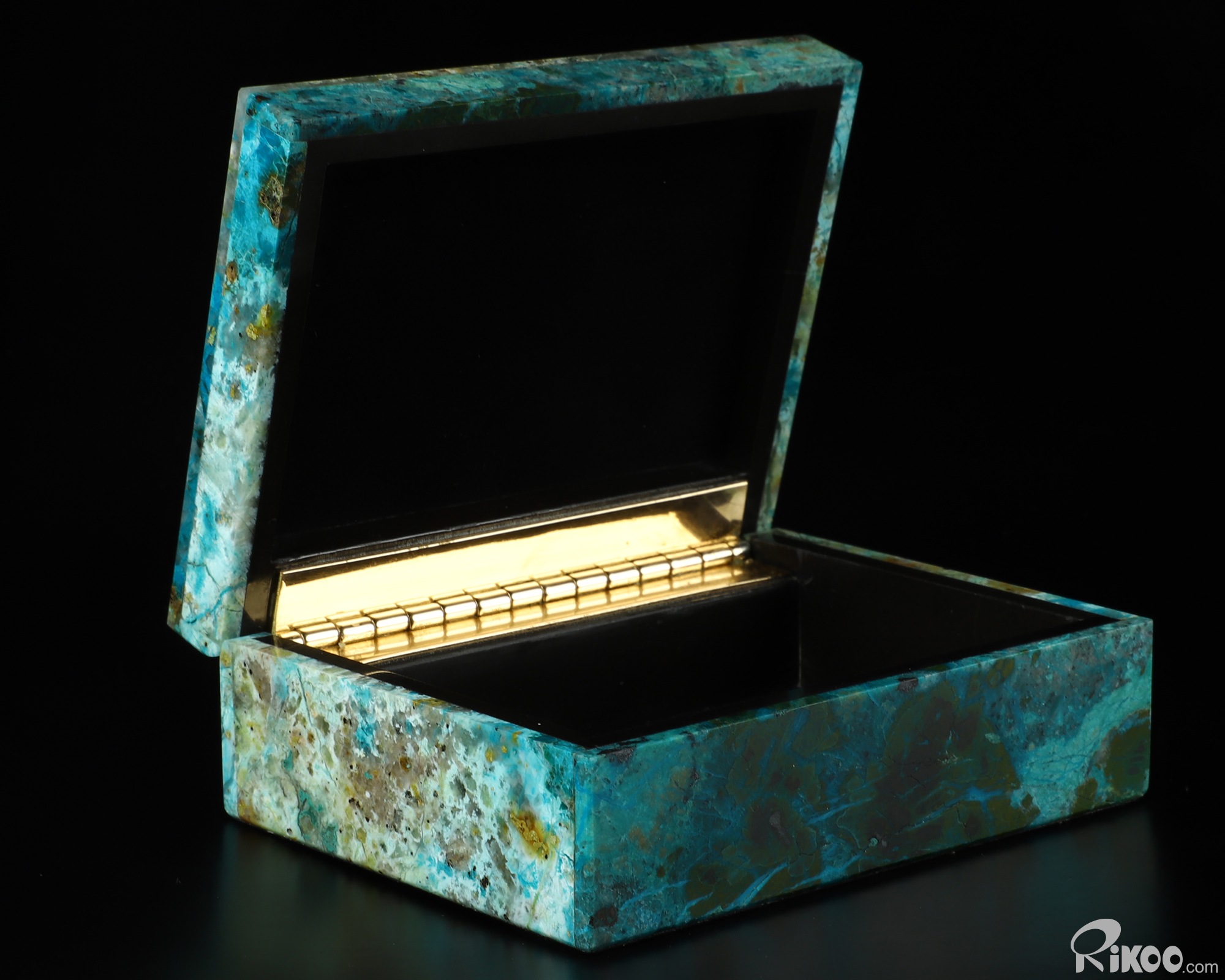4.1" American Chrysocolla Carved Crystal Jewelry Box, Crystal Healing