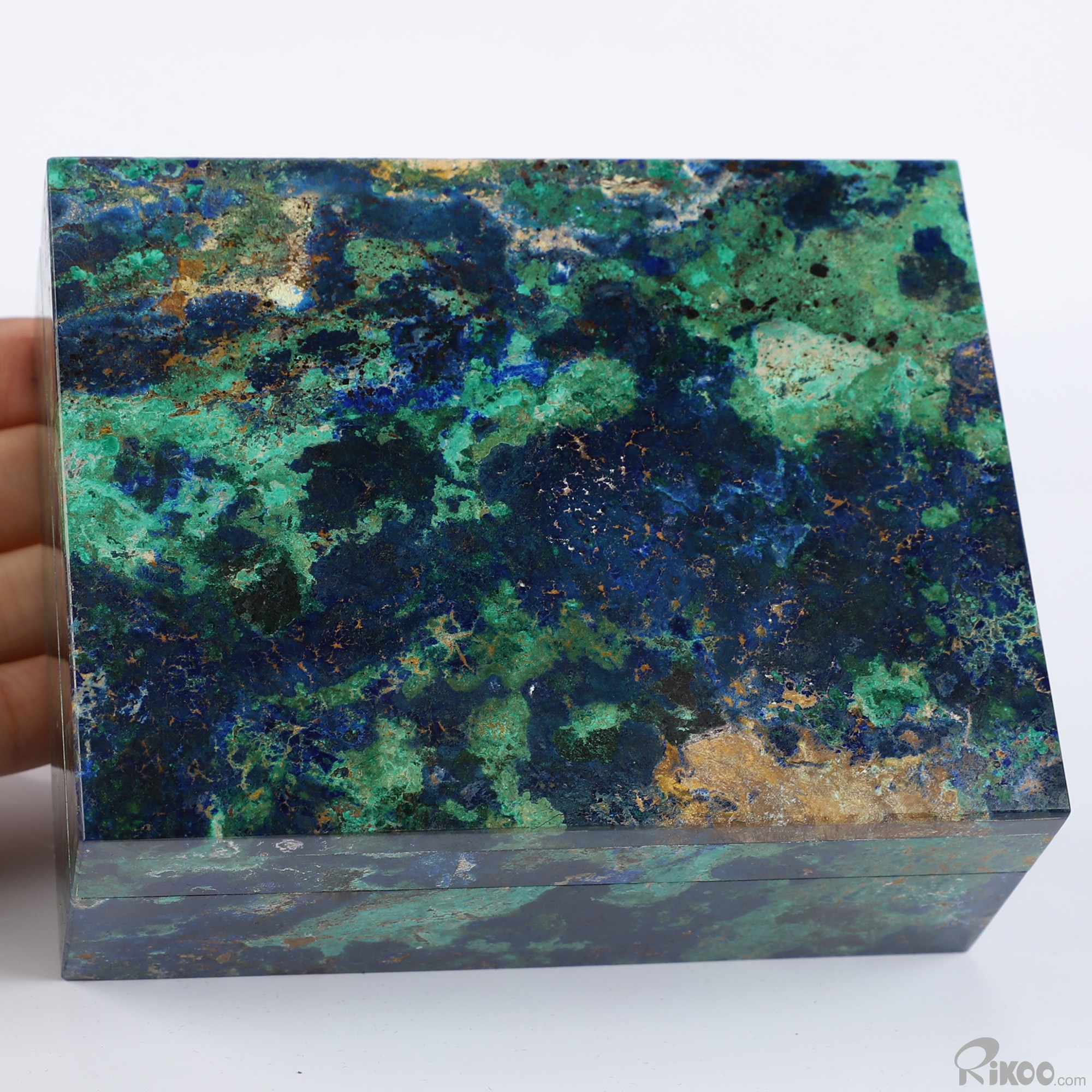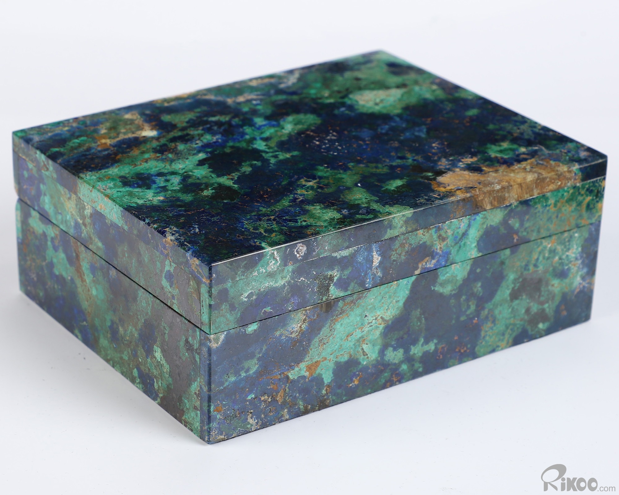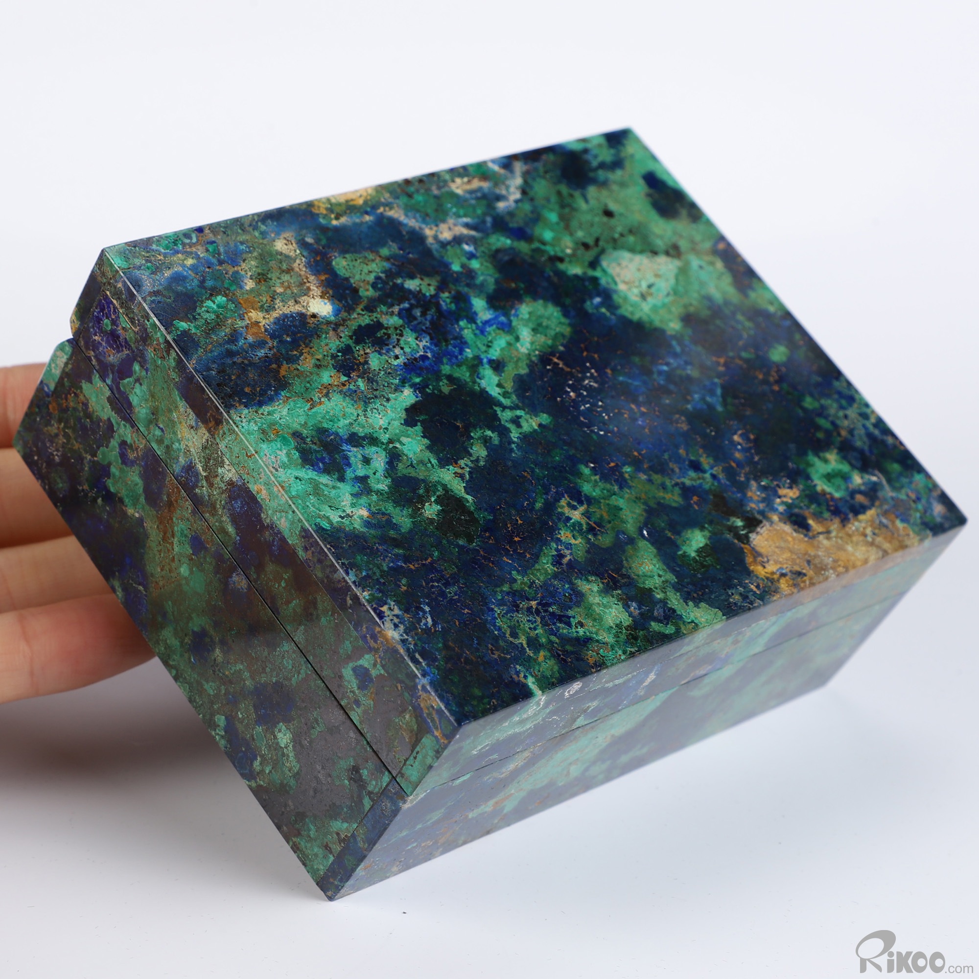4.1" Azurite & Malachite Hand Carved Crystal Jewelry Box, Crystal Healing