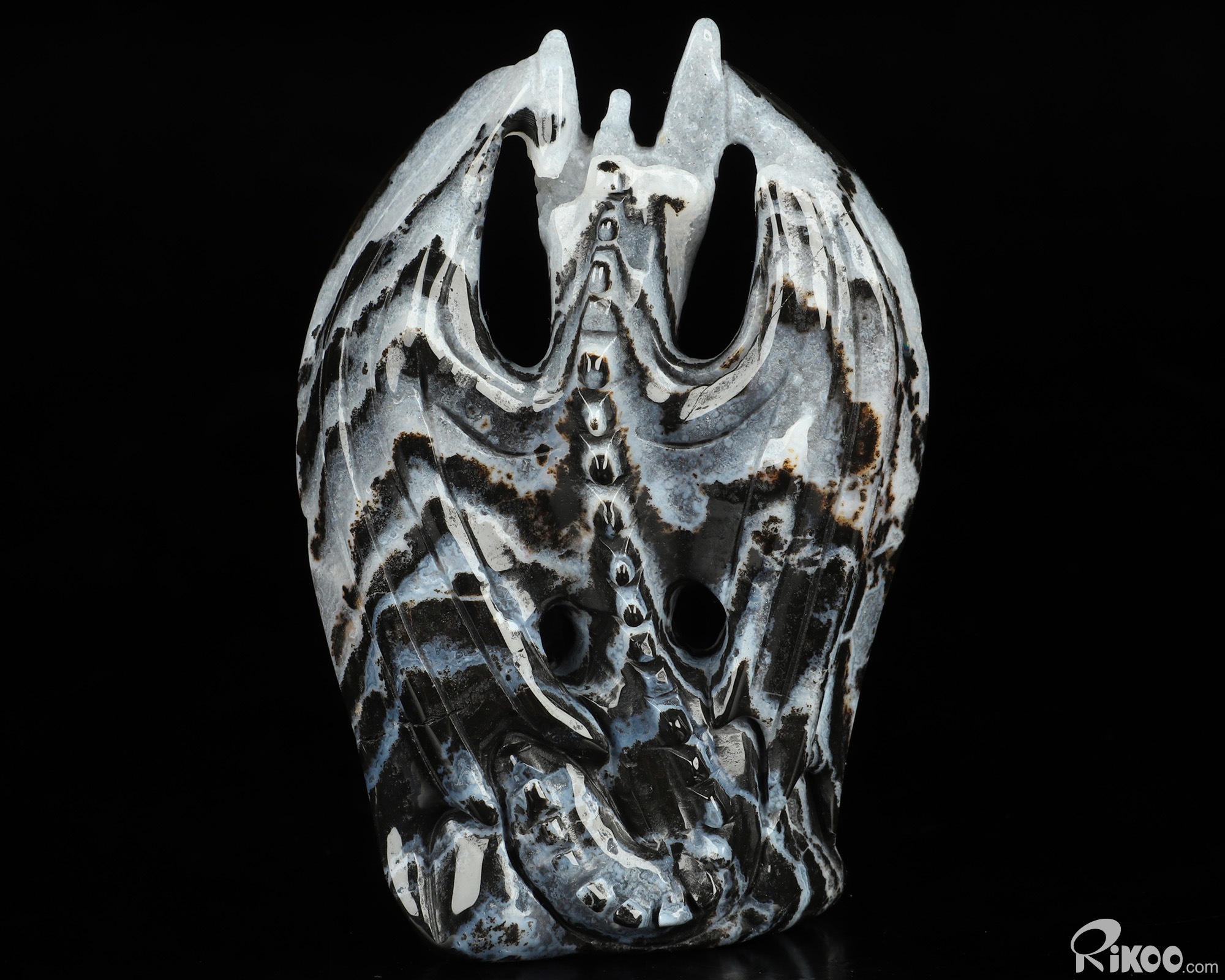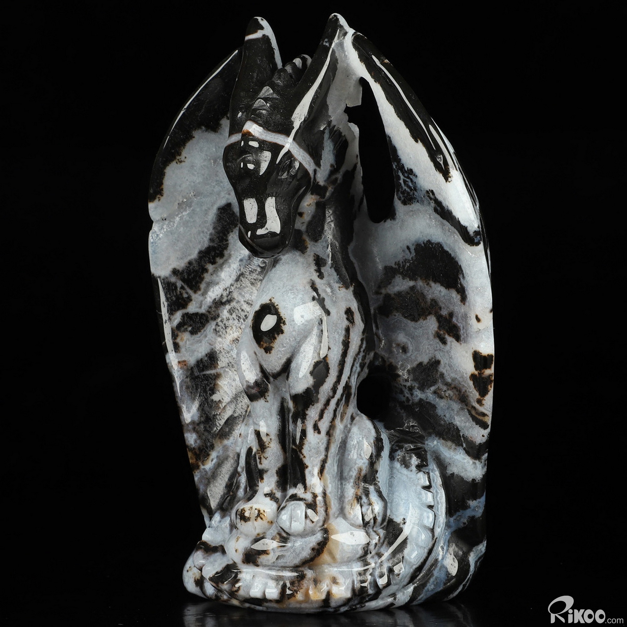 4.1" Black Zebra Agate Hand Carved Crystal Dragon Sculpture, Crystal Healing