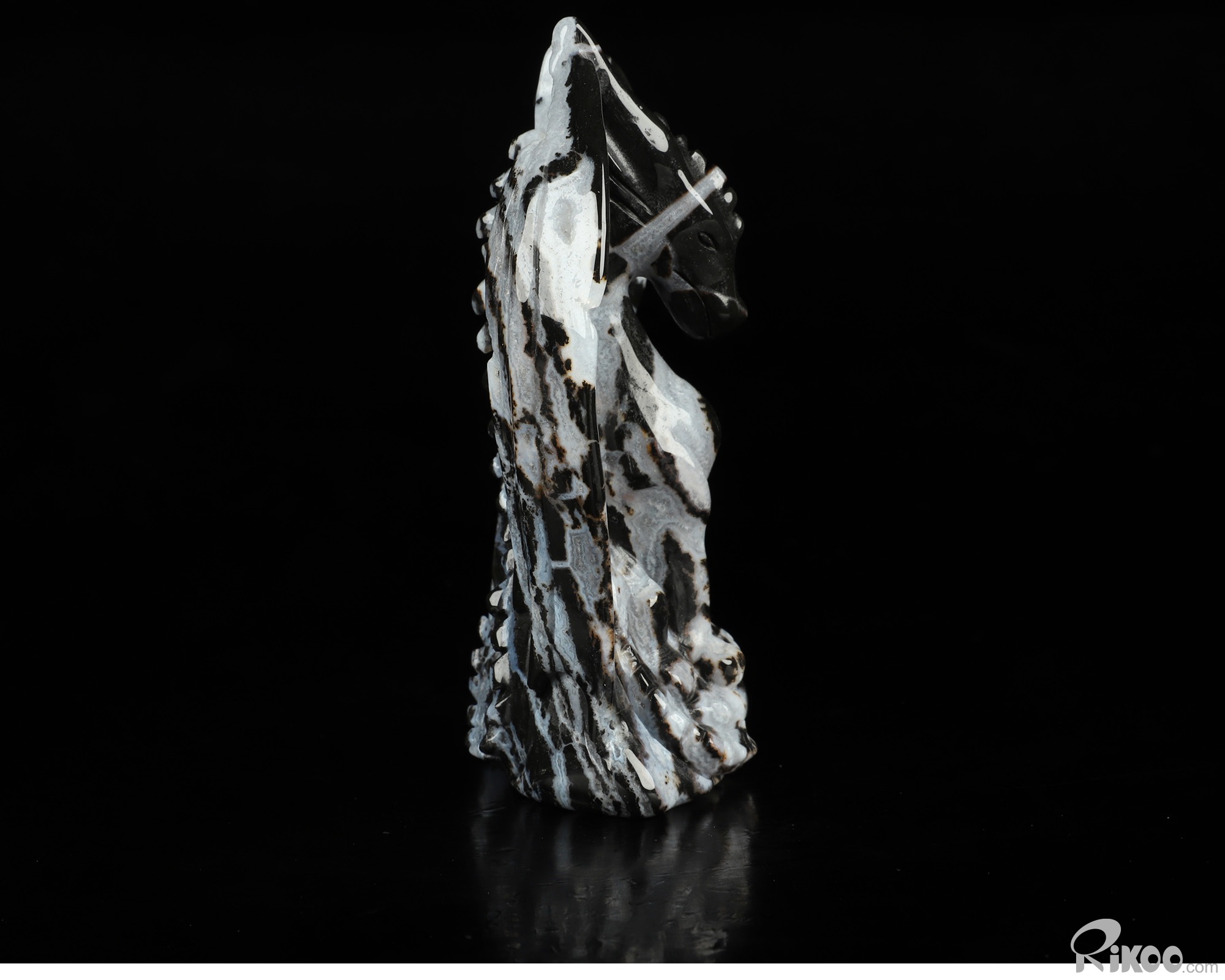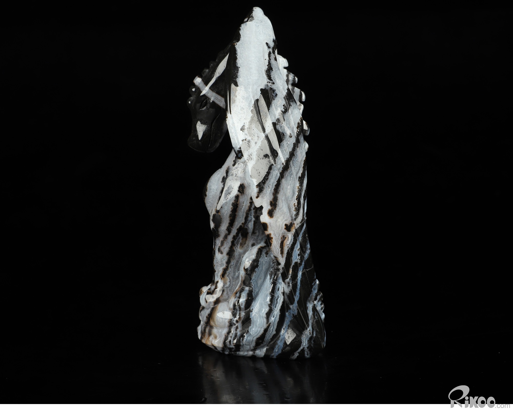 You are looking at a Black Zebra Agate sculpture. The sculpture is 4.1 inches long.