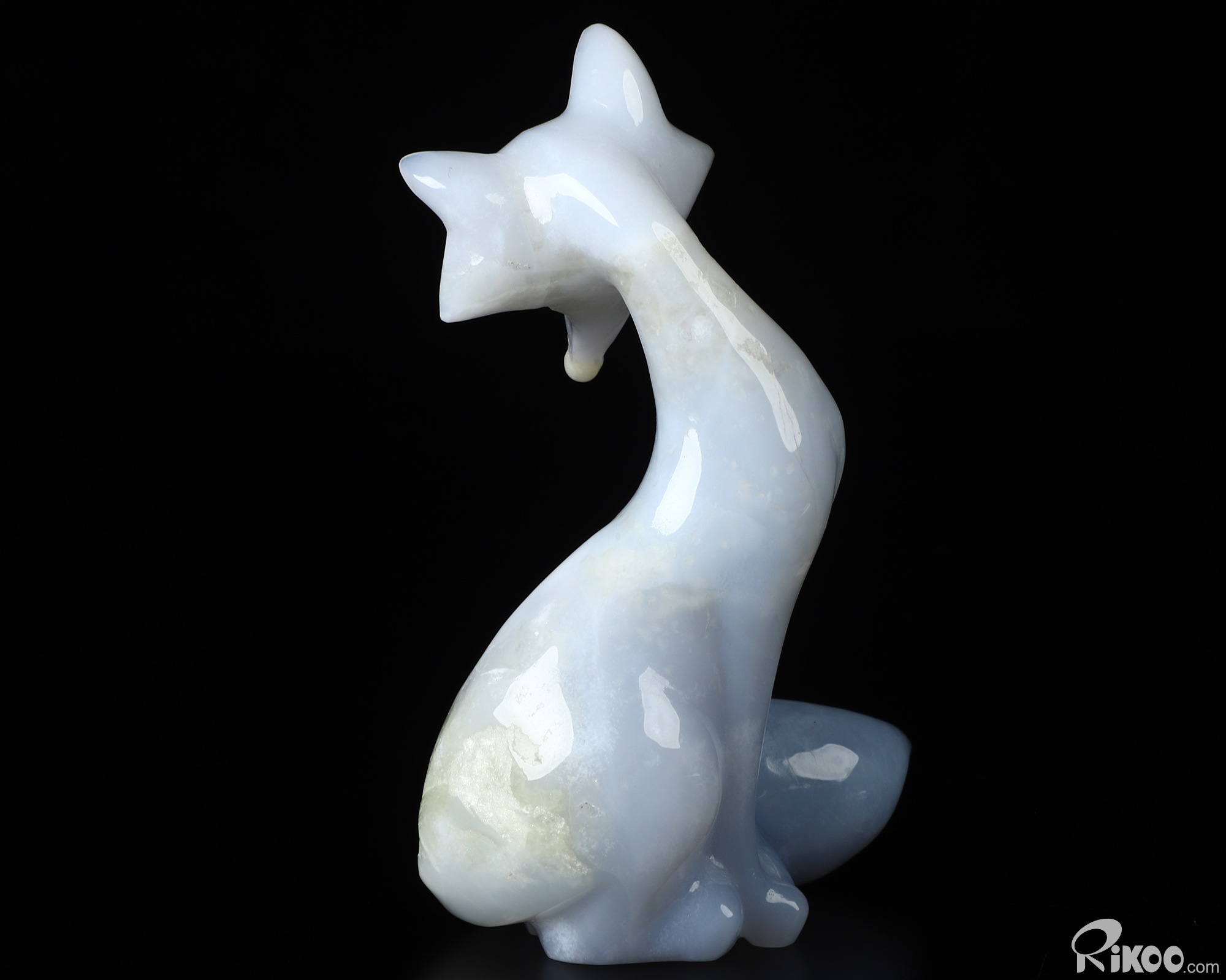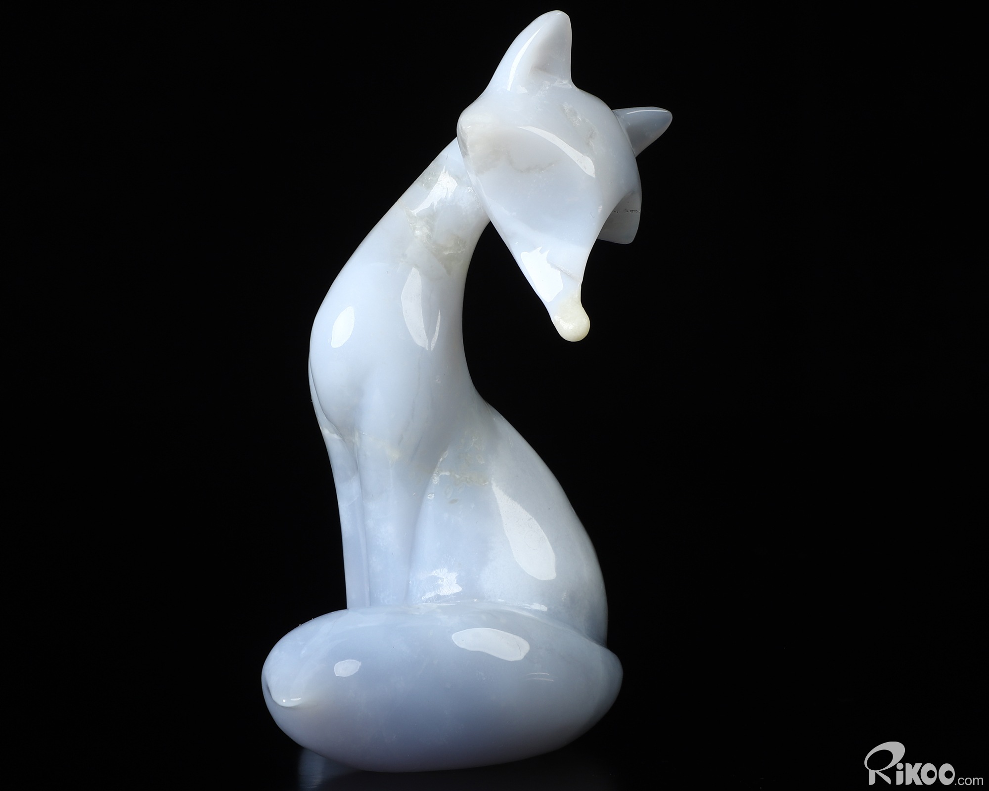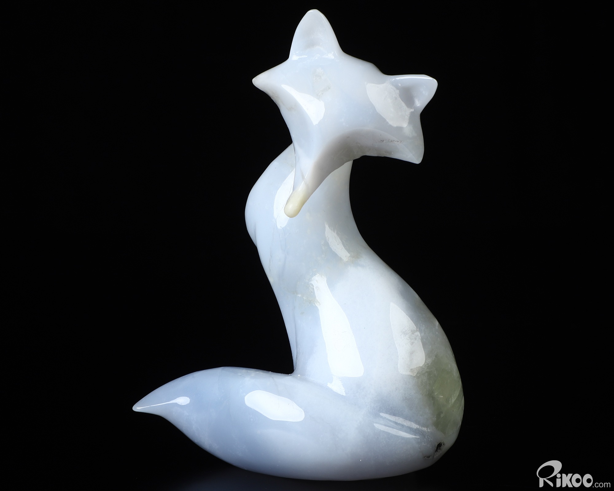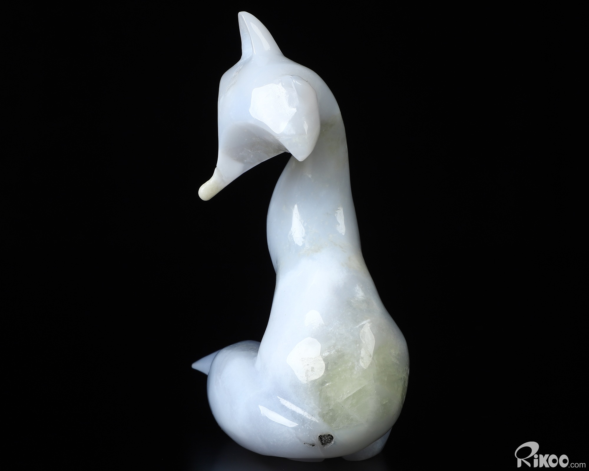 4.1" Blue Chalcedony Hand Carved Crystal Fox Sculpture, Crystal Healing