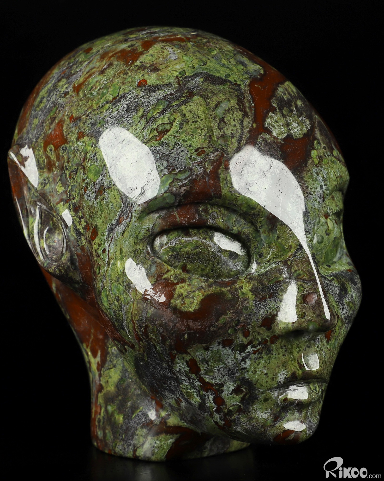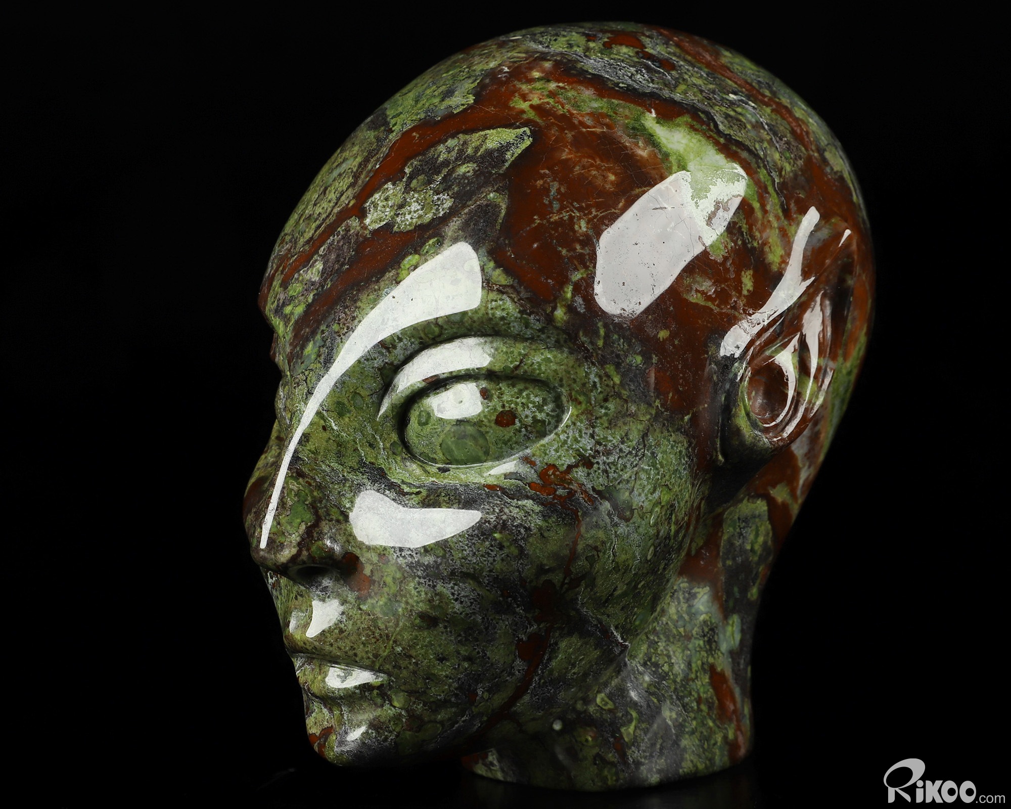 4.1" Dragon Blood Jasper Carved Fairy Elf Alien Crystal Skull Companion Sculpture, Crystal Healing