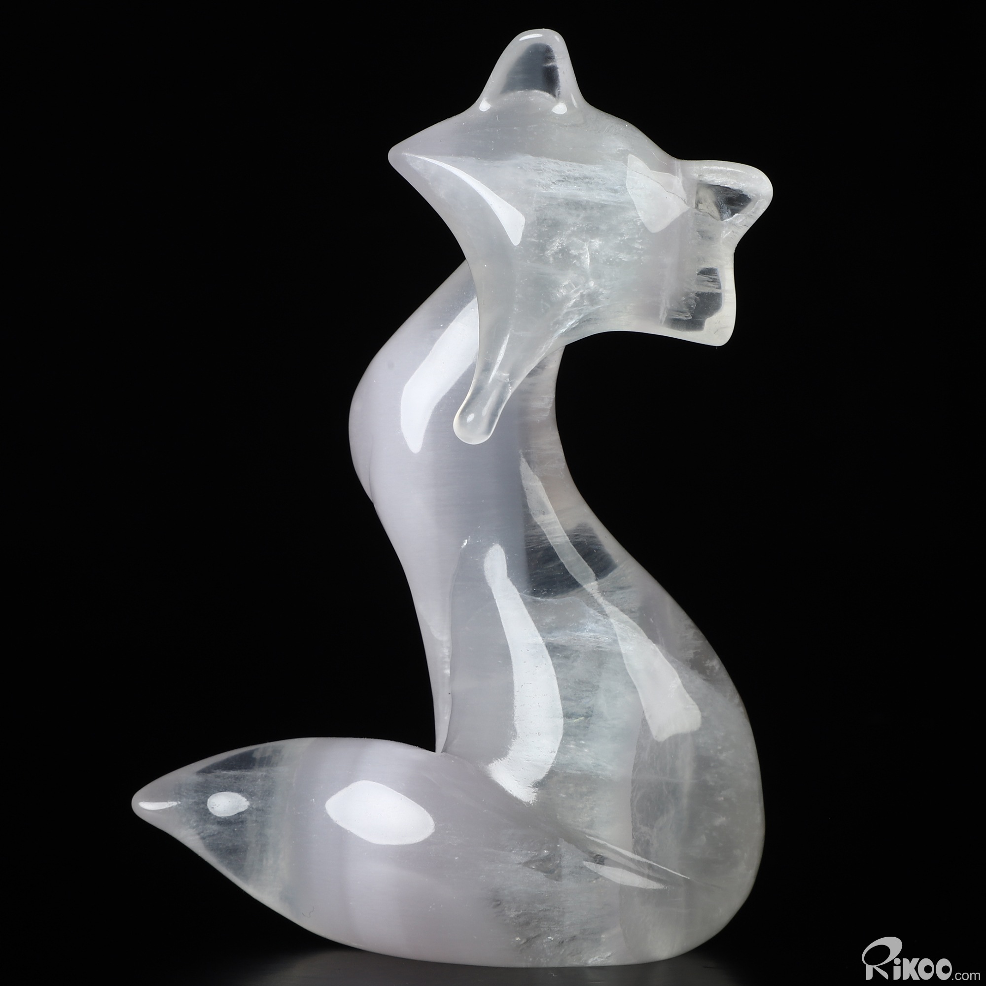 4.1" Fluorite Hand Carved Crystal Fox Sculpture, Crystal Healing