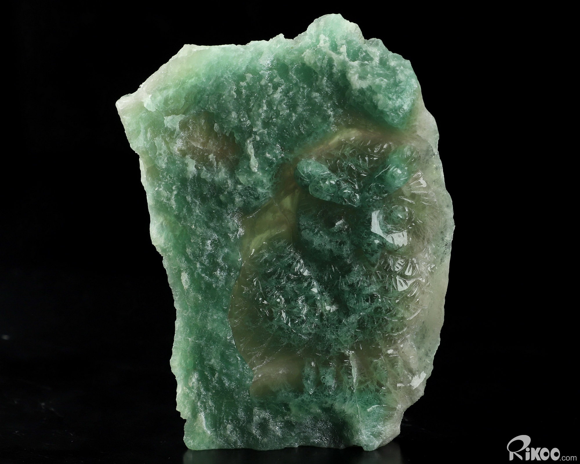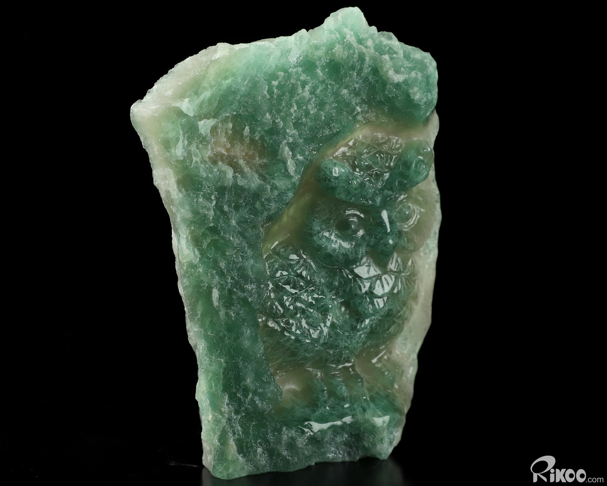 You are looking at a Fluorite sculpture. The sculpture is 4.1 inches long.