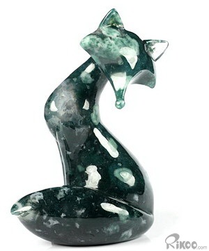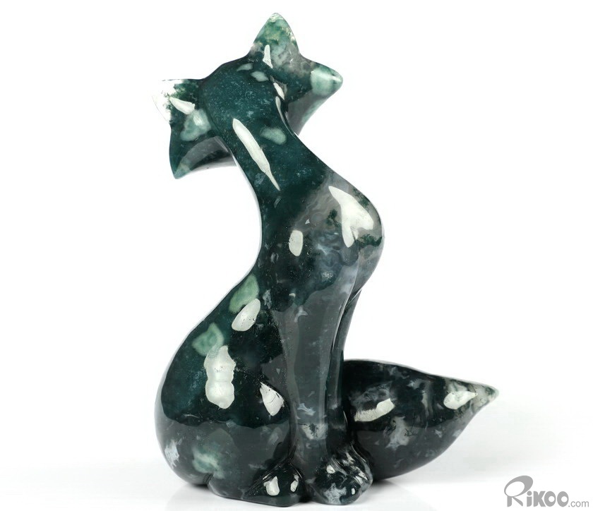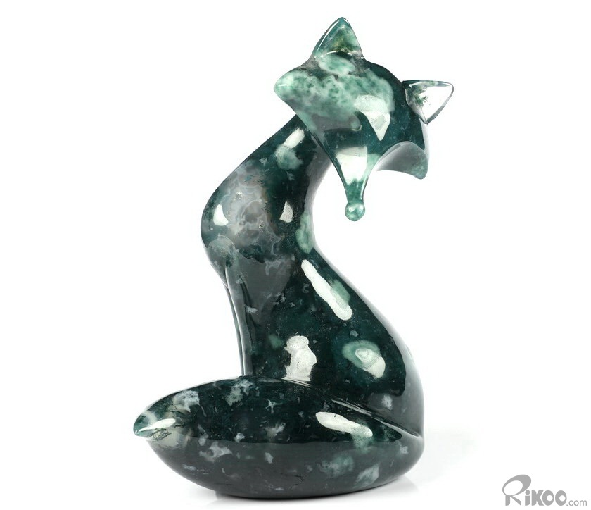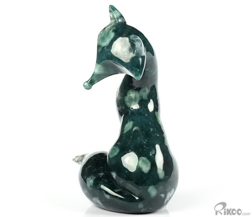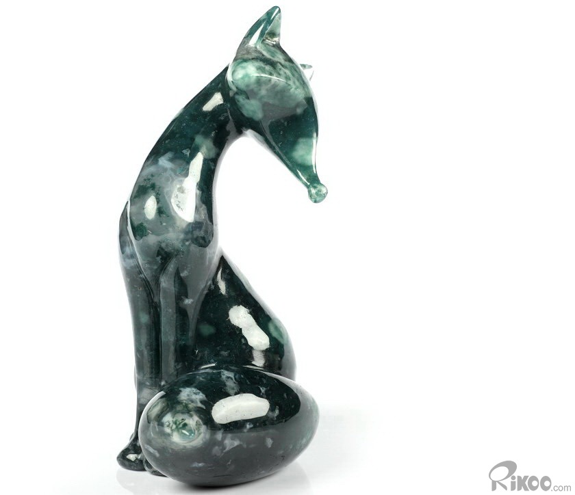 4.1" Green Moss Agate Hand Carved Crystal Fox Sculpture, Crystal Healing