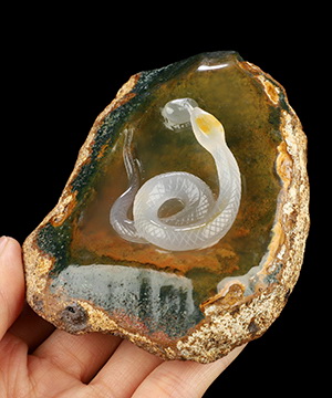 You are looking at a Green Moss Agate sculpture. The sculpture is 4.1 inches long.