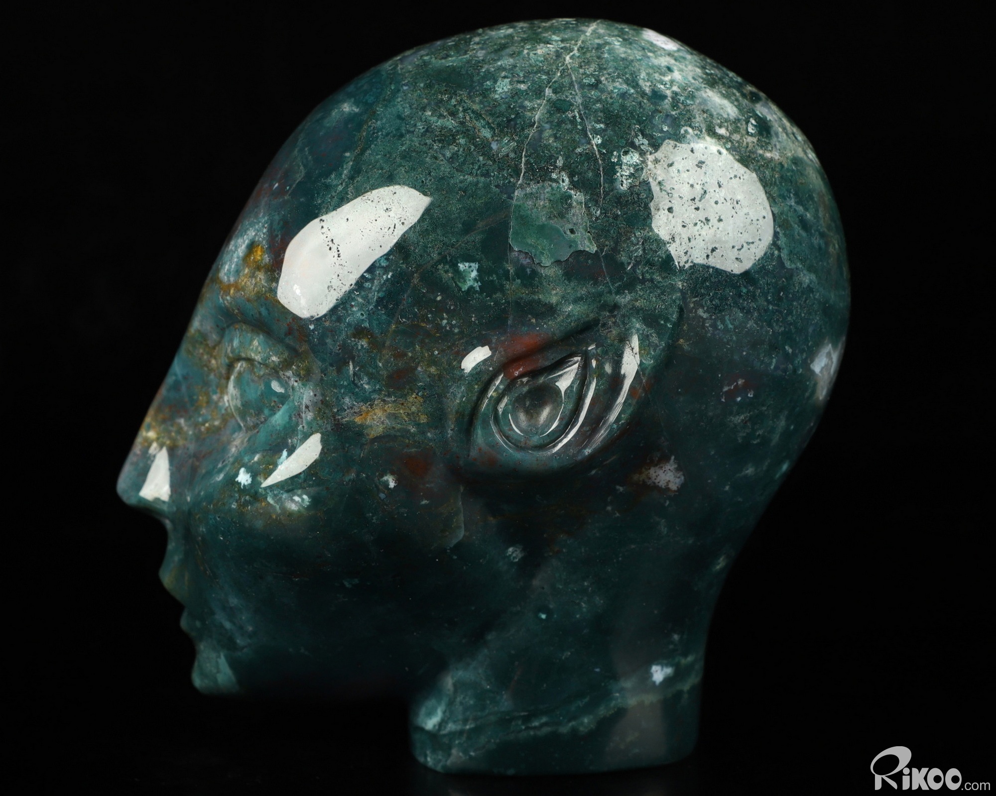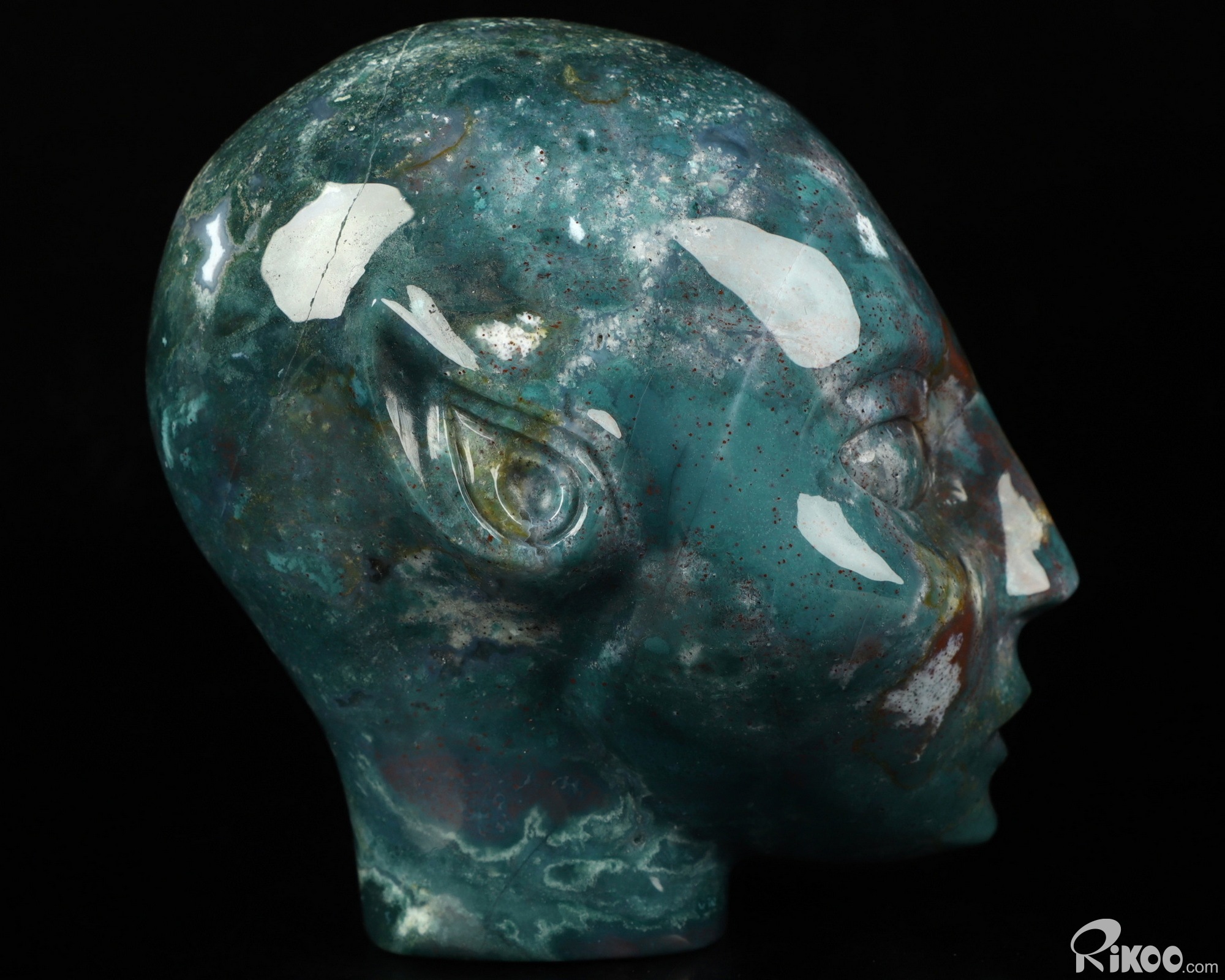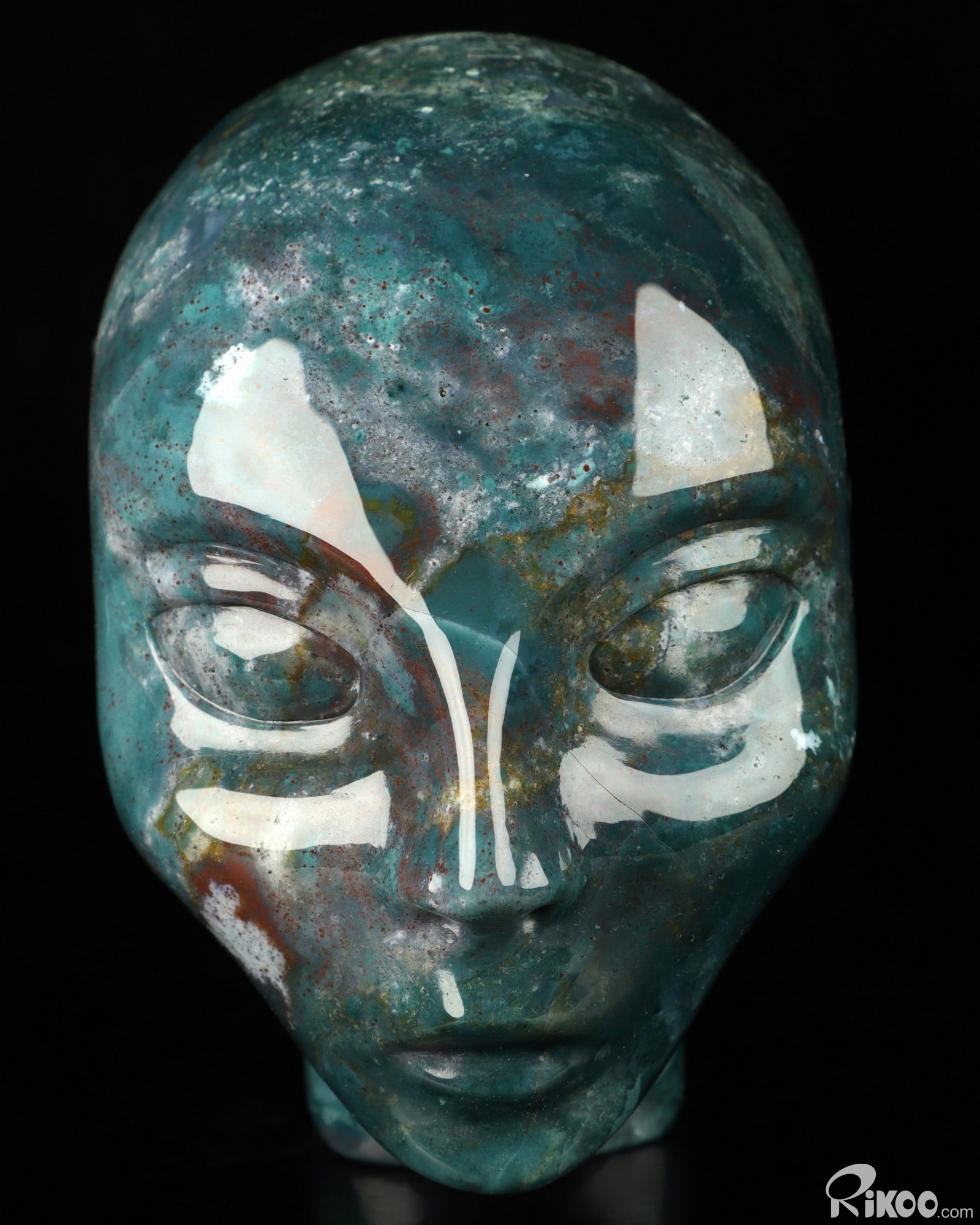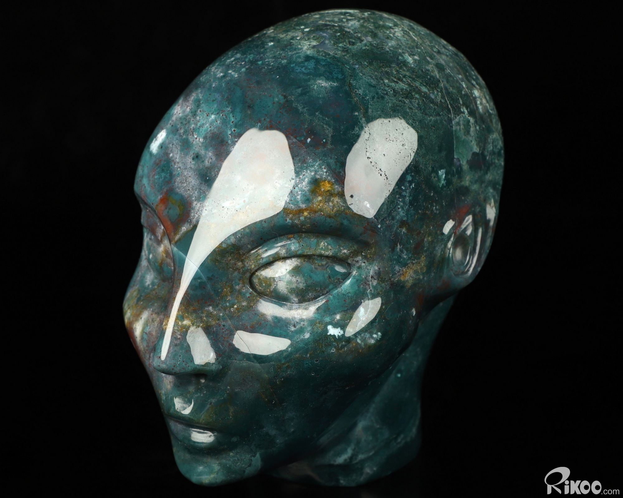 4.1" Indian Agate Carved Fairy Elf Alien Crystal Skull Companion Sculpture, Crystal Healing