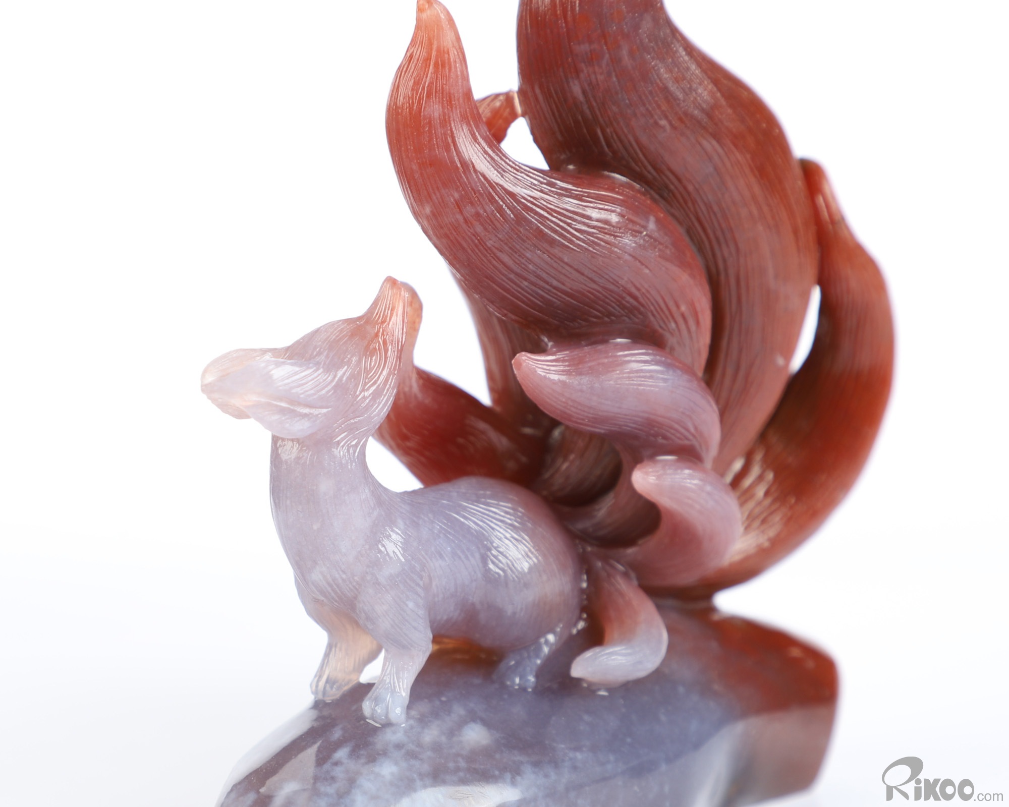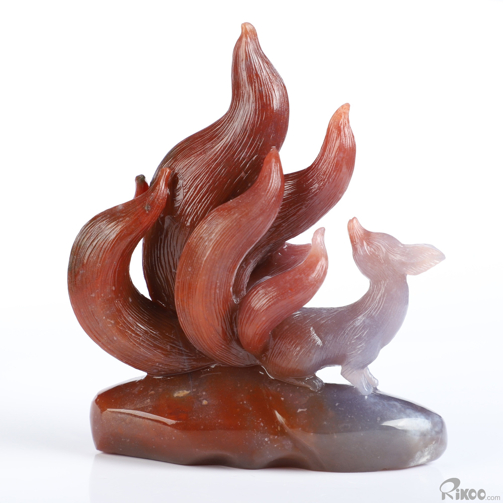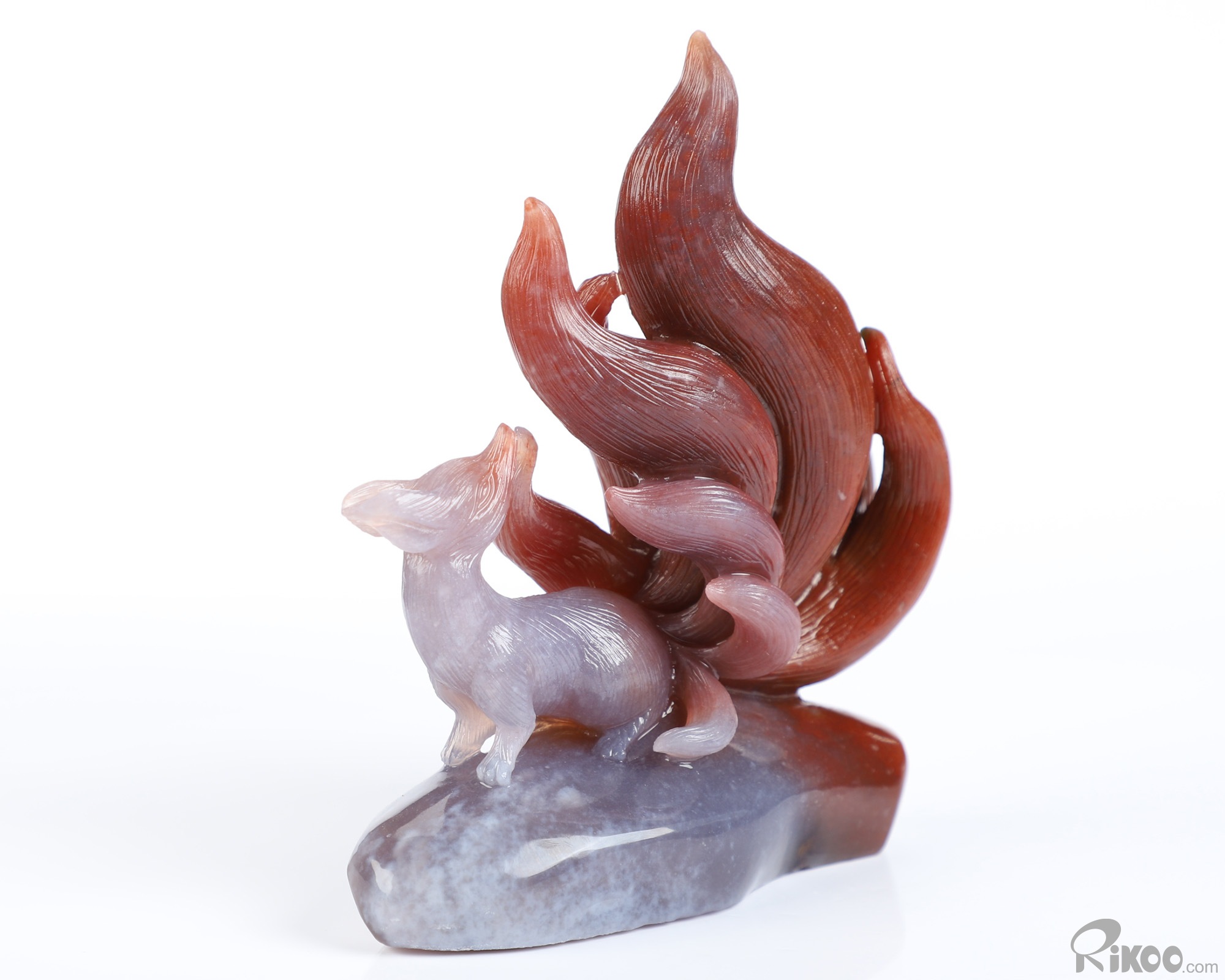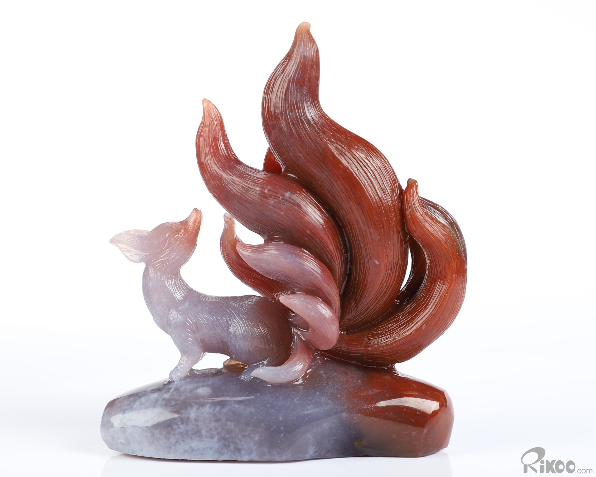 4.1" Indian Agate Hand Carved Crystal Nine-Tailed Fox Sculpture, Crystal Healing