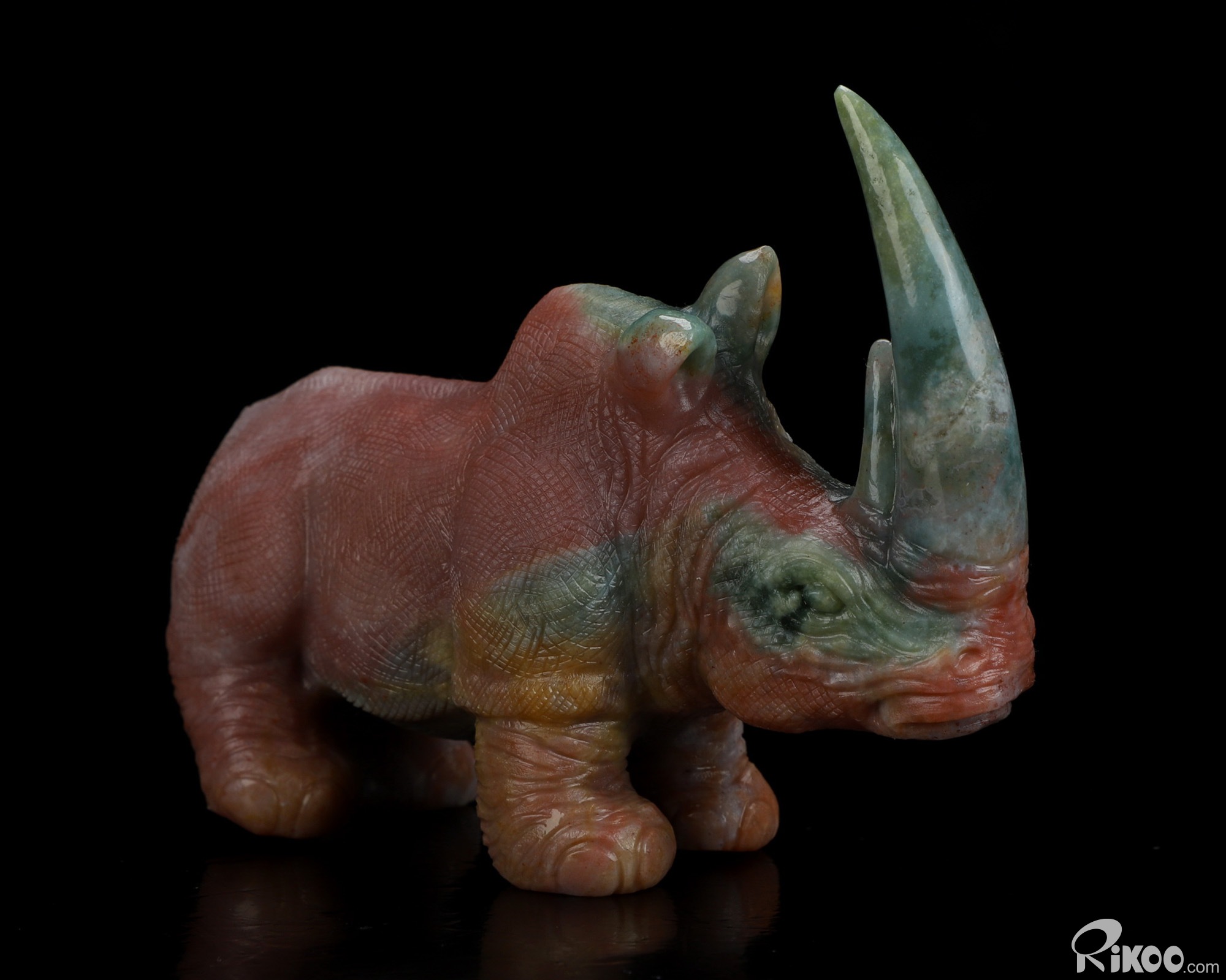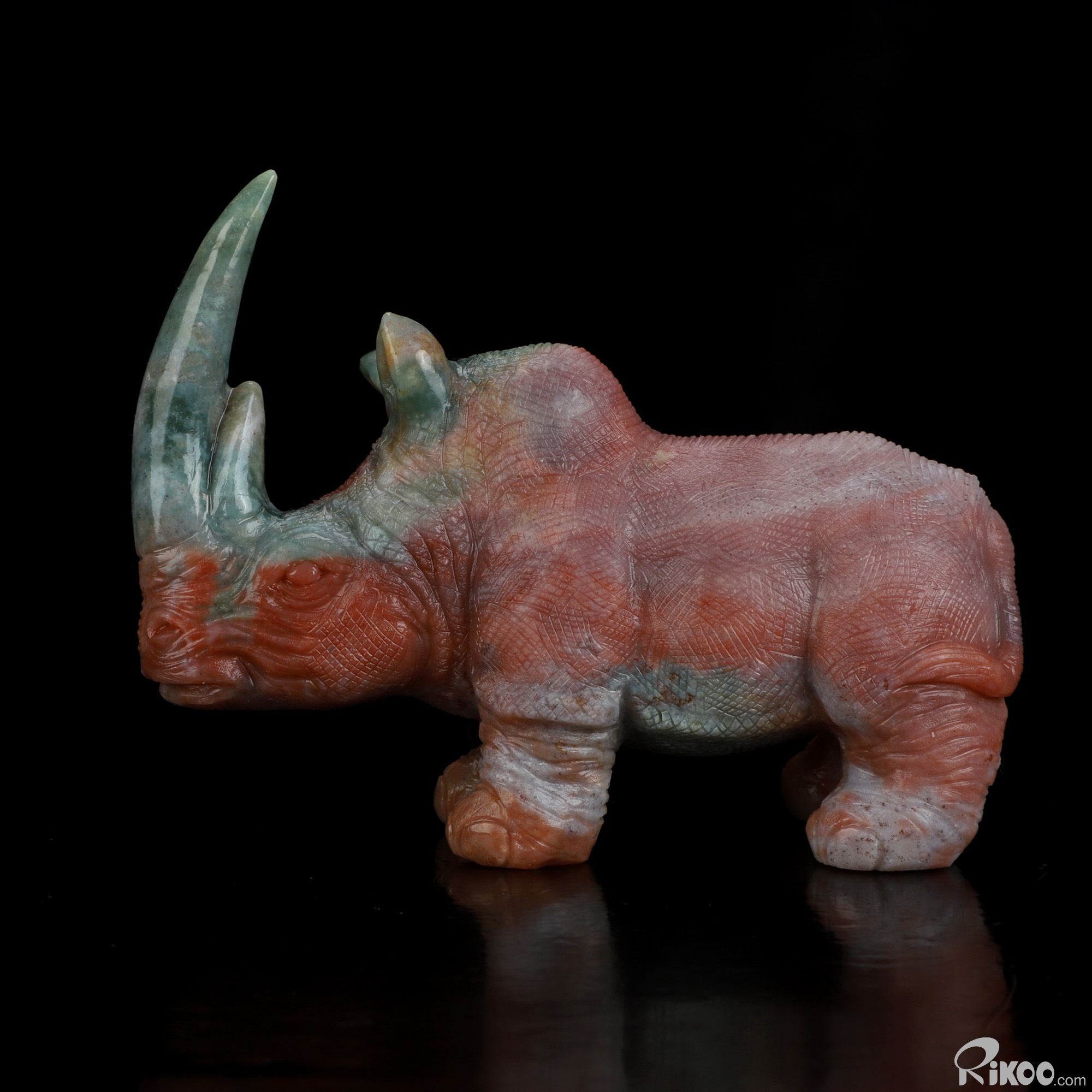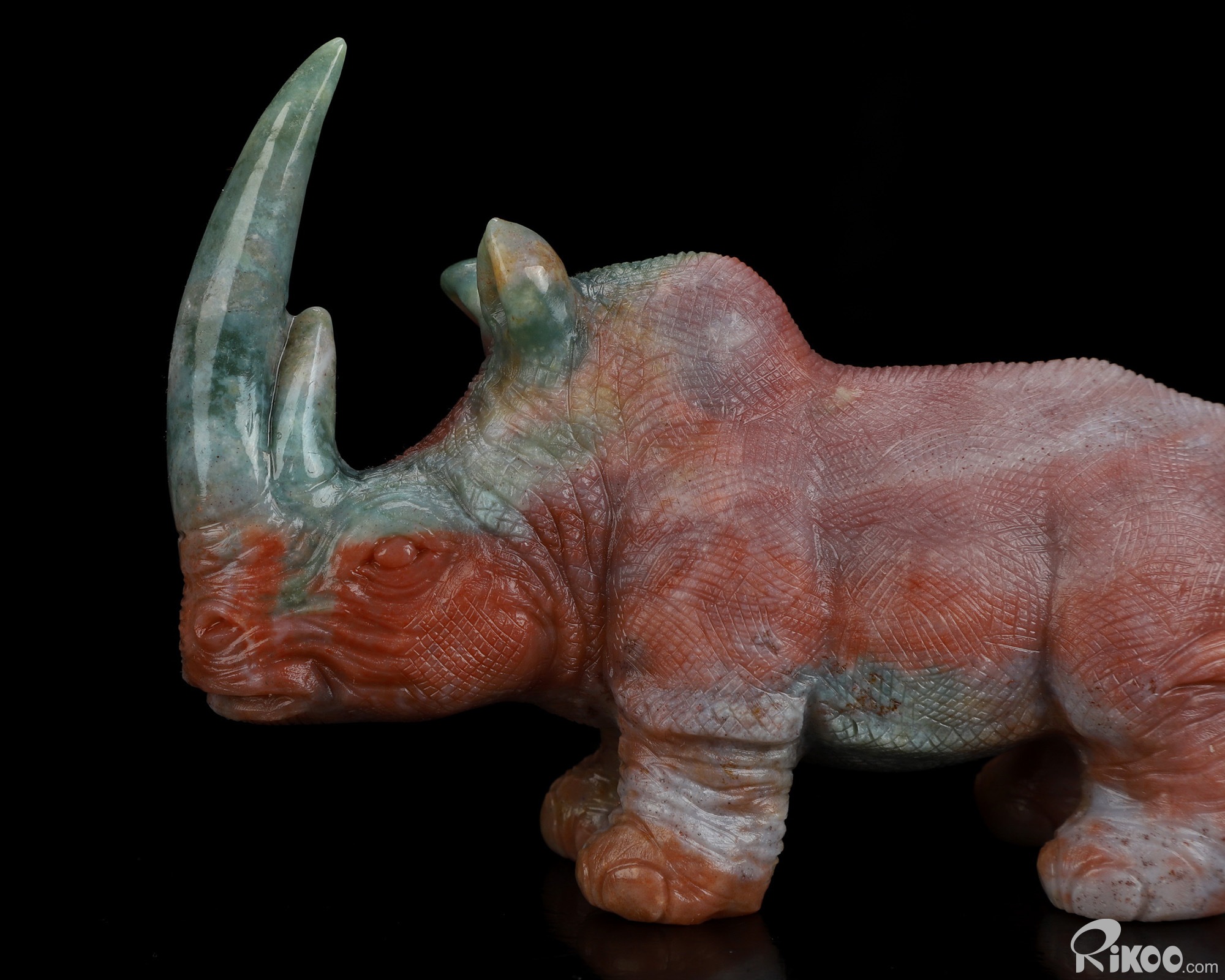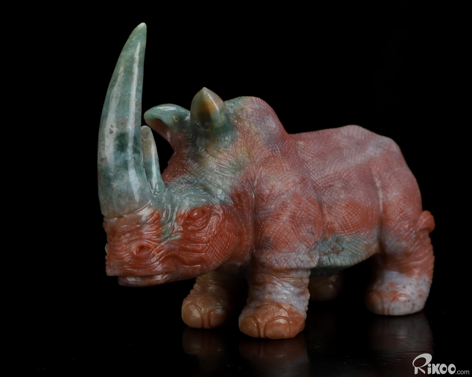 4.1" Indian Agate Hand Carved Crystal Rhinoceros Sculpture, Crystal Healing