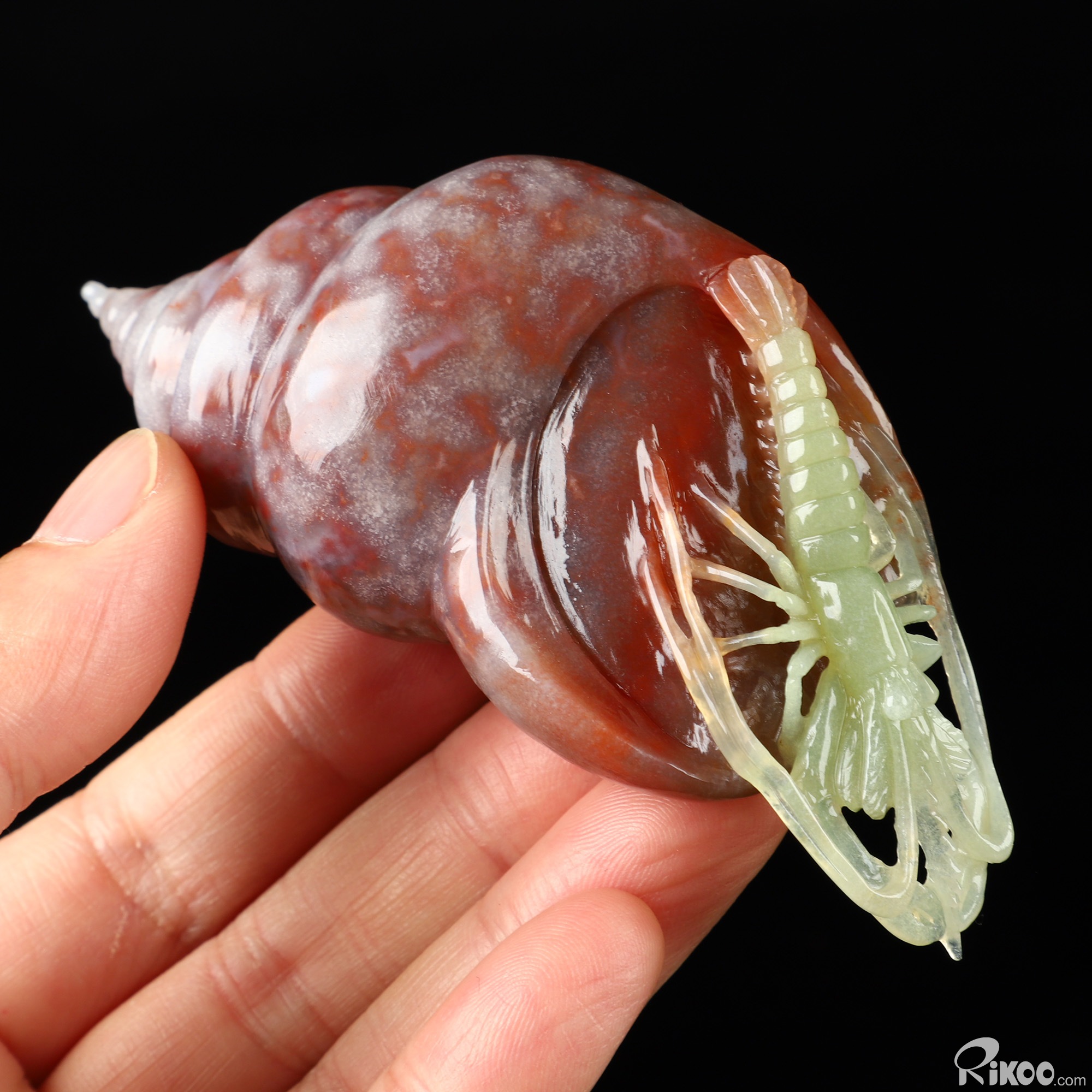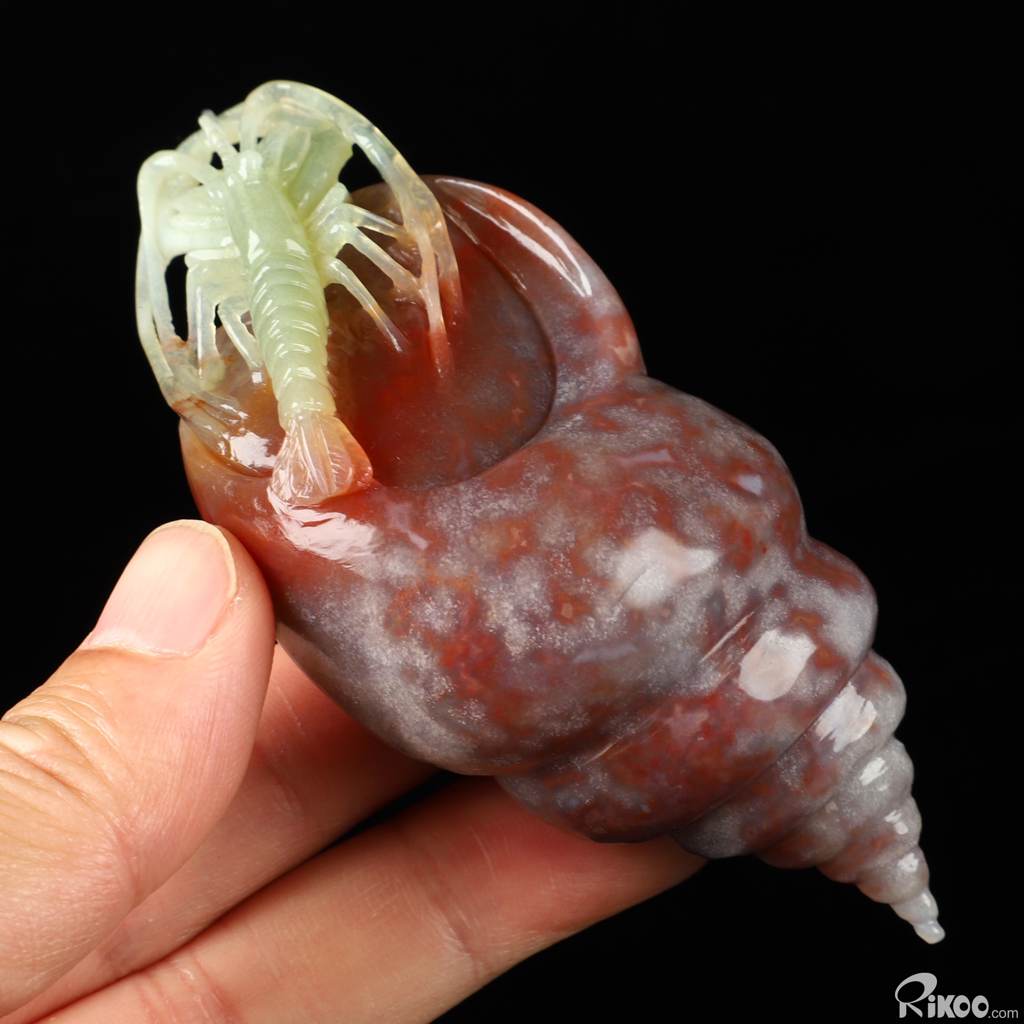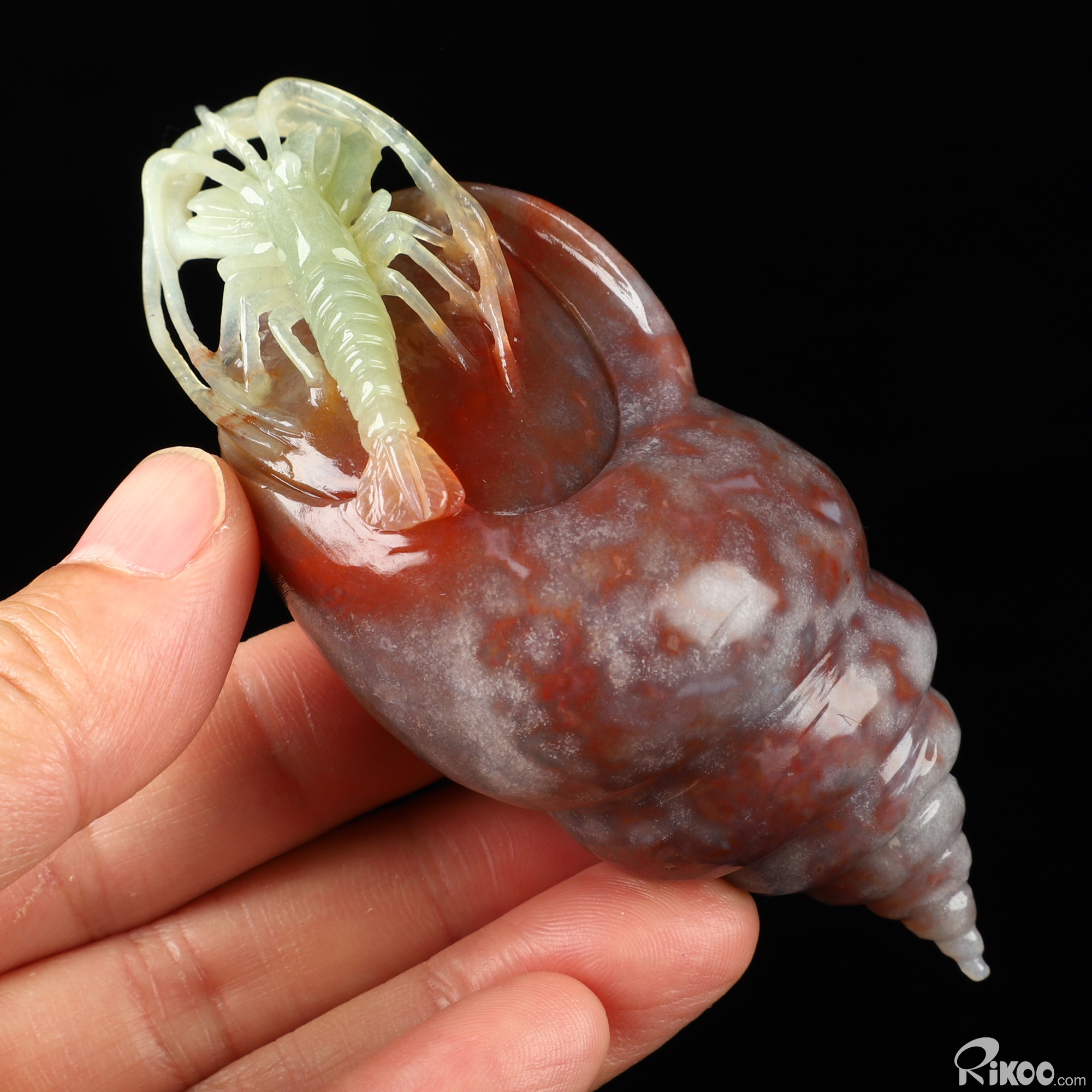 4.1" Indian Agate Hand Carved Crystal Shrimp Sculpture, Crystal Healing