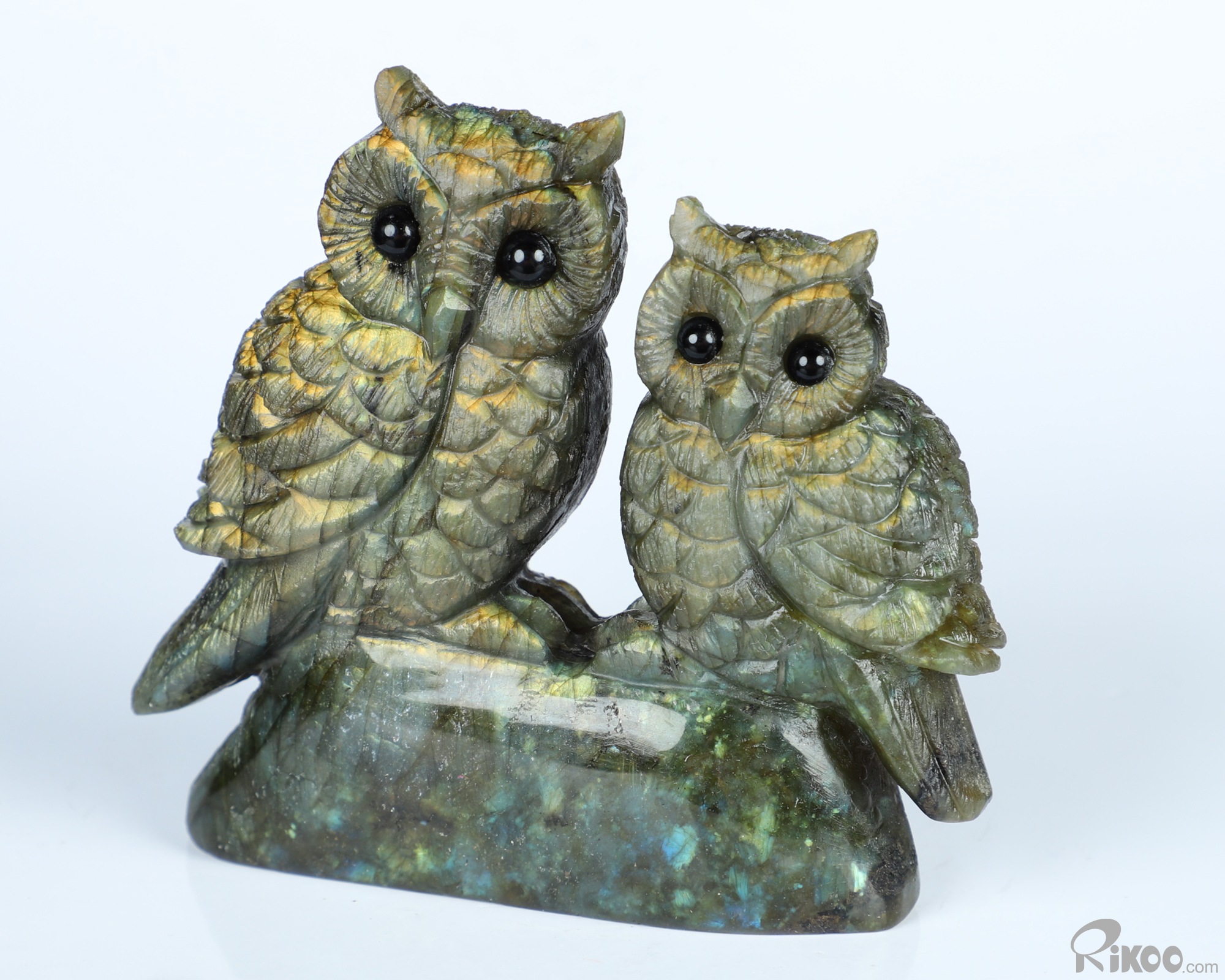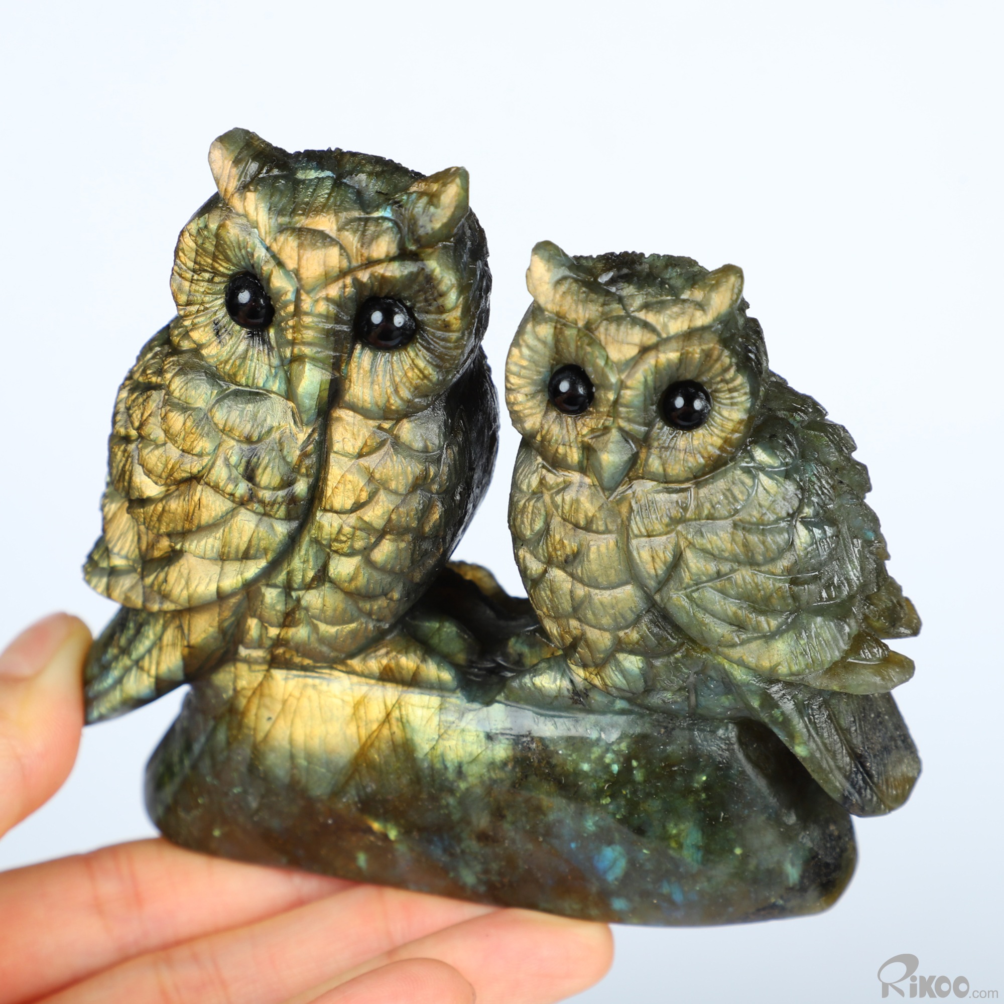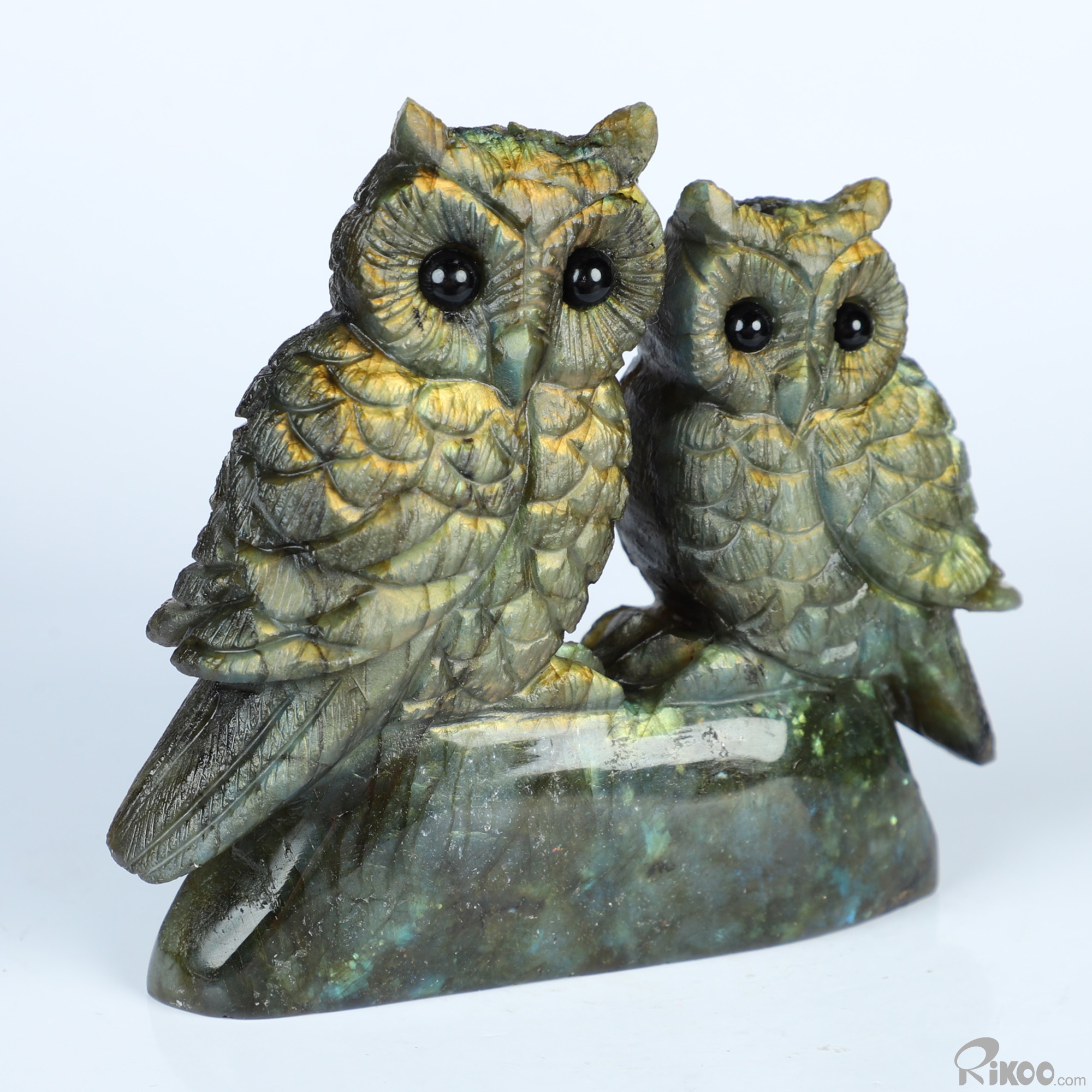 4.1" Labradorite Hand Carved Crystal Owls Sculpture, Crystal Healing