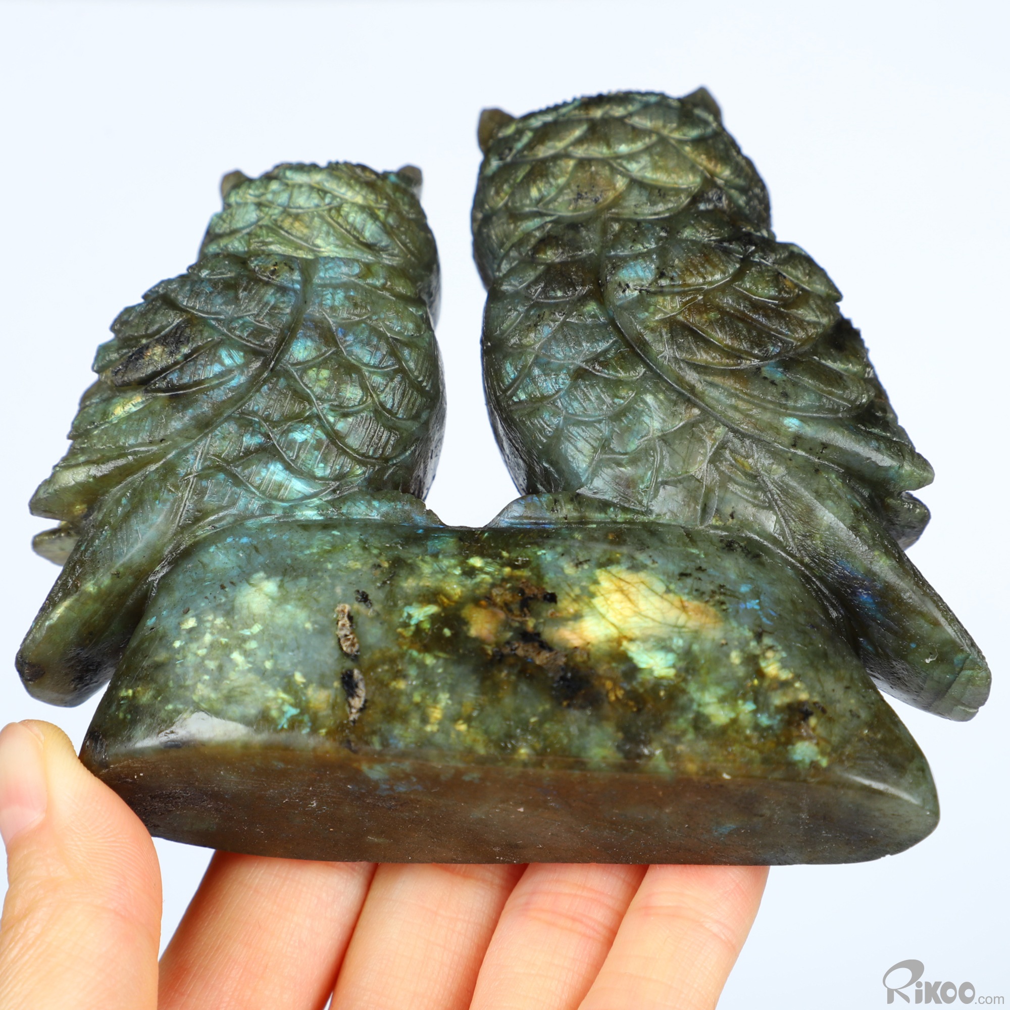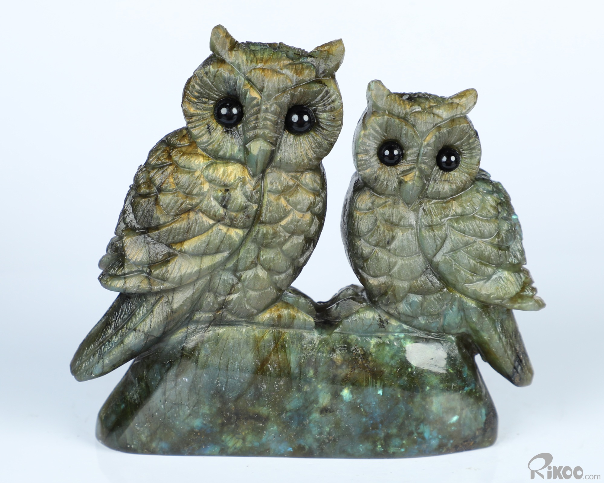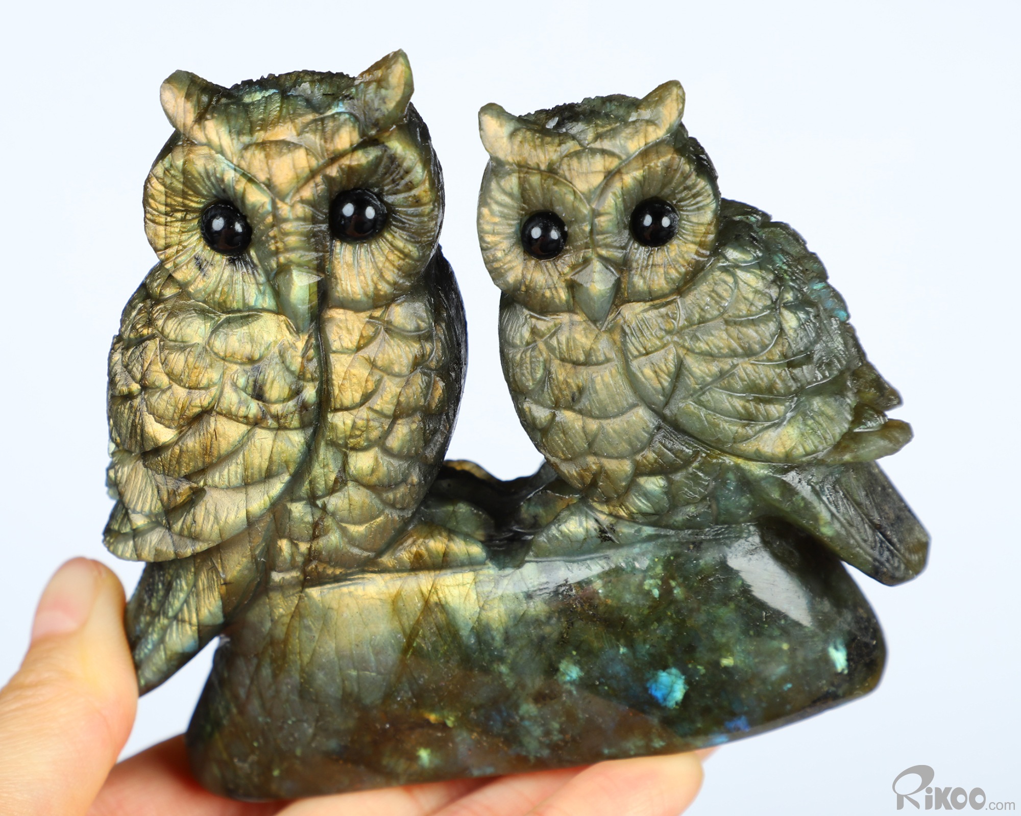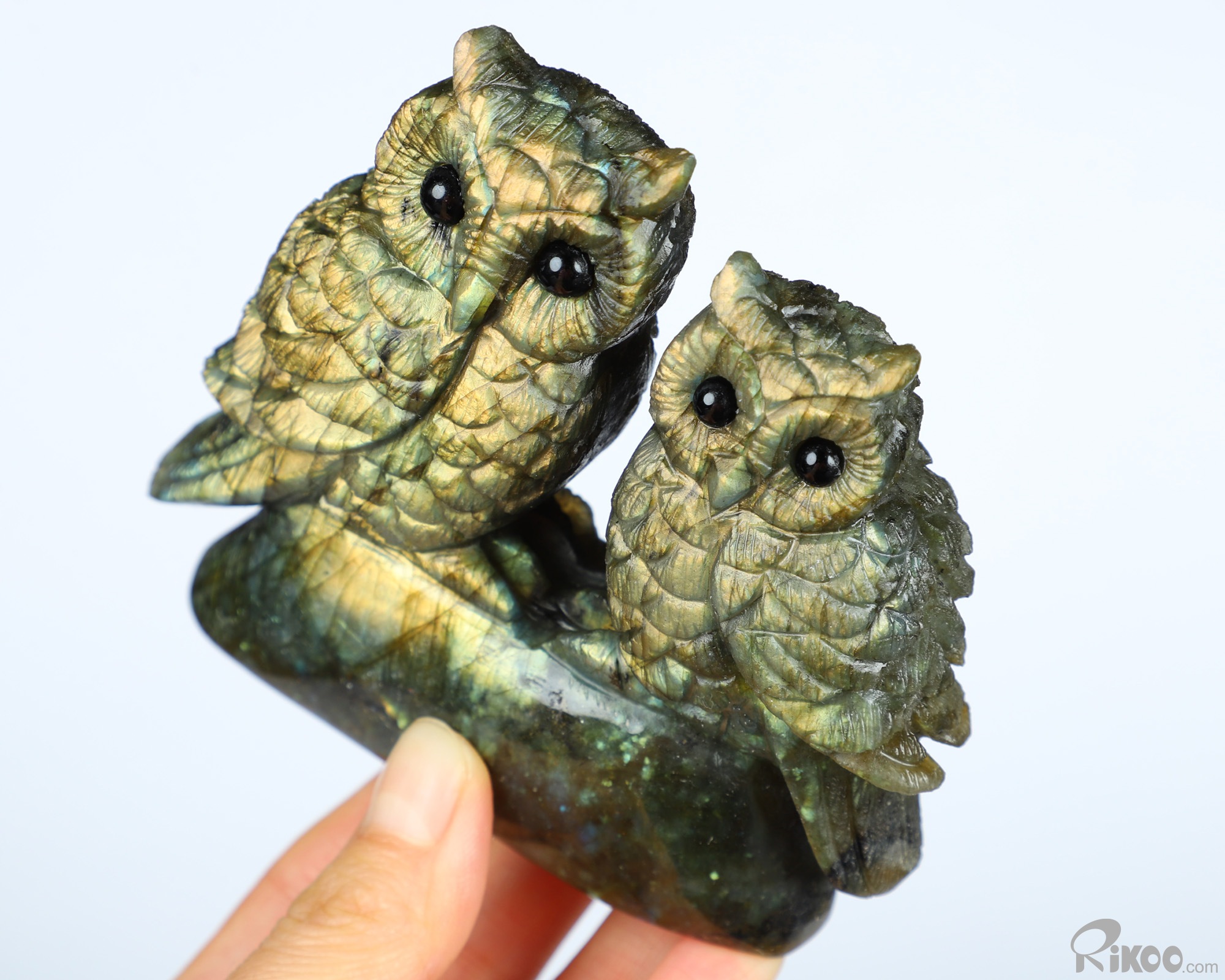 4.1" Labradorite Hand Carved Crystal Owls Sculpture, Crystal Healing