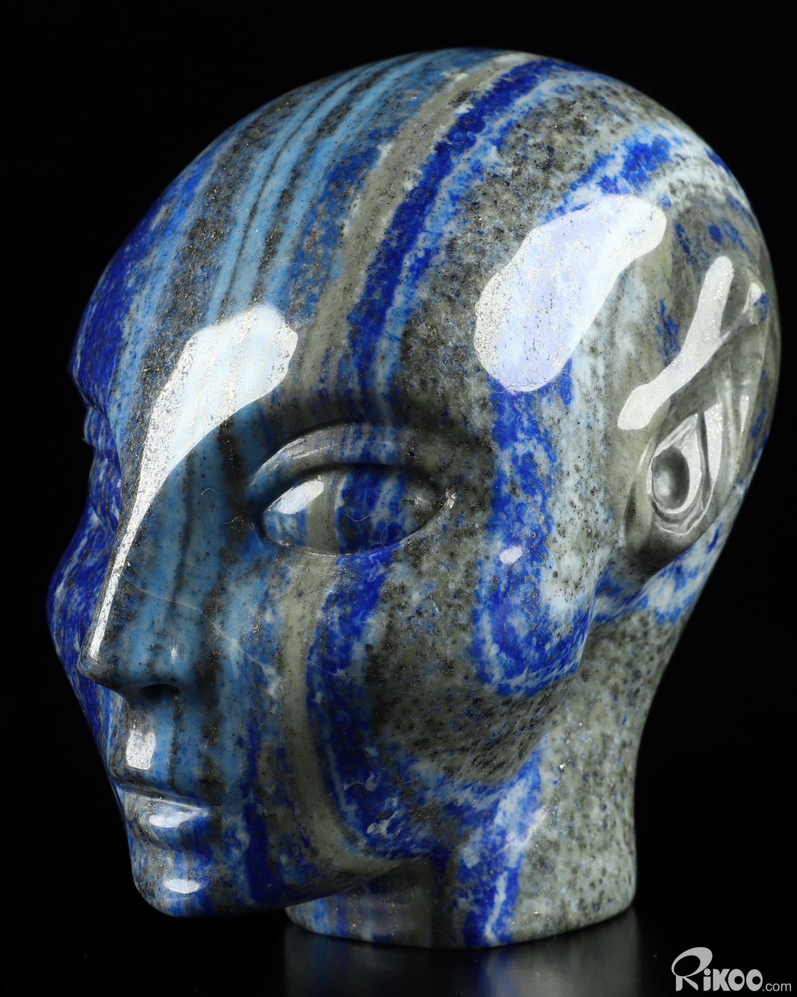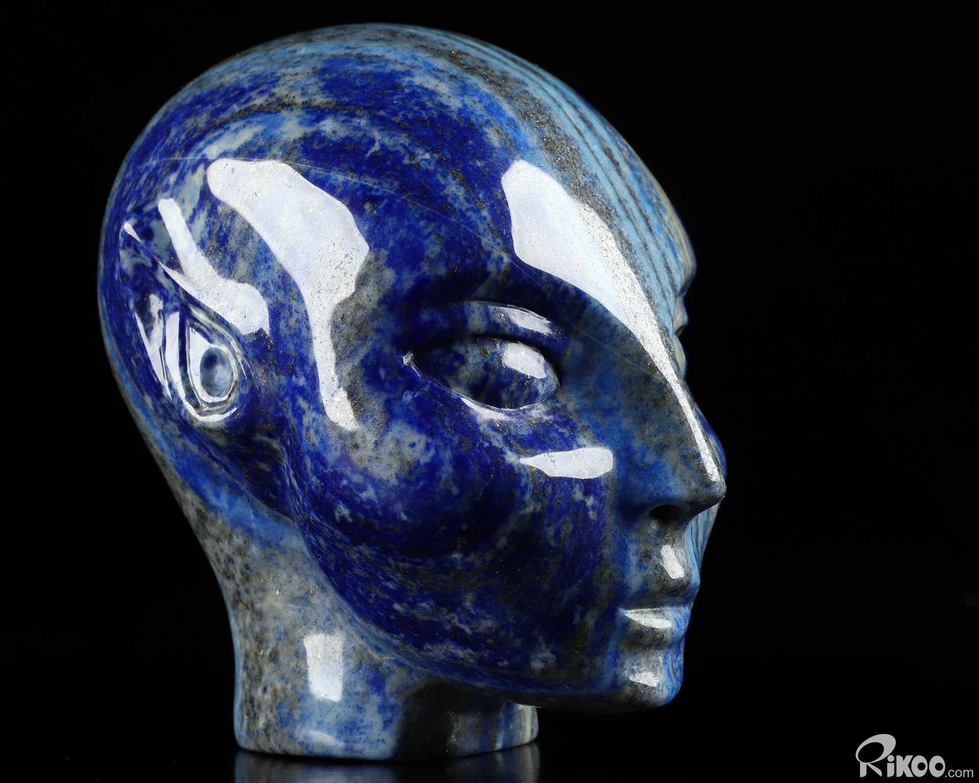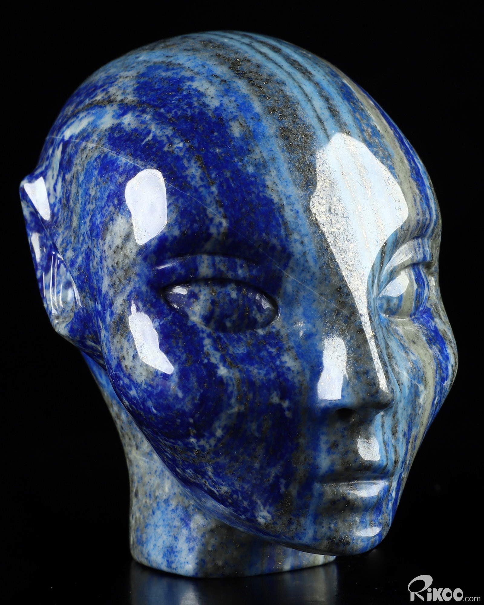 4.1" Lapis Lazuli Carved Fairy Elf Alien Crystal Skull Companion Sculpture, Crystal Healing