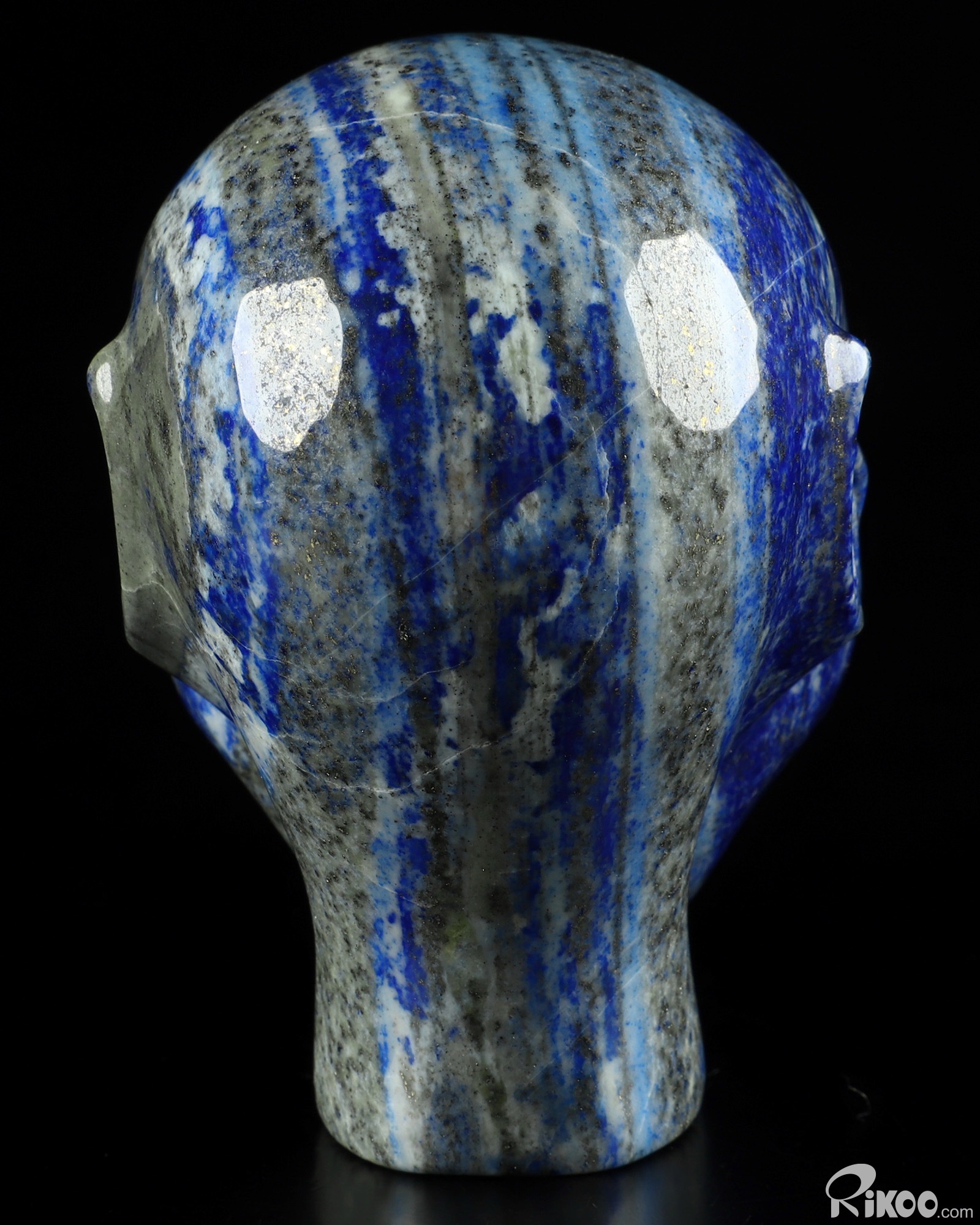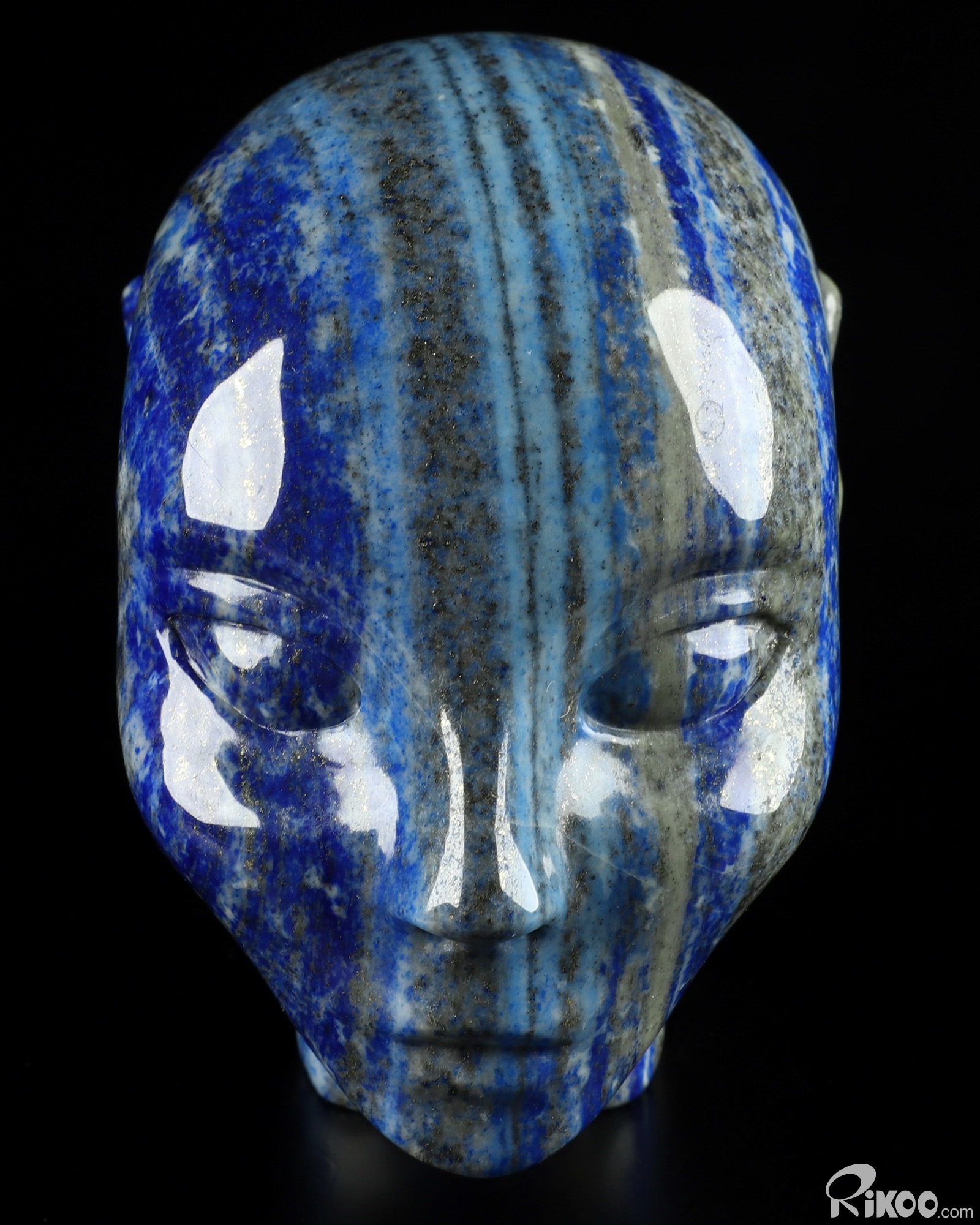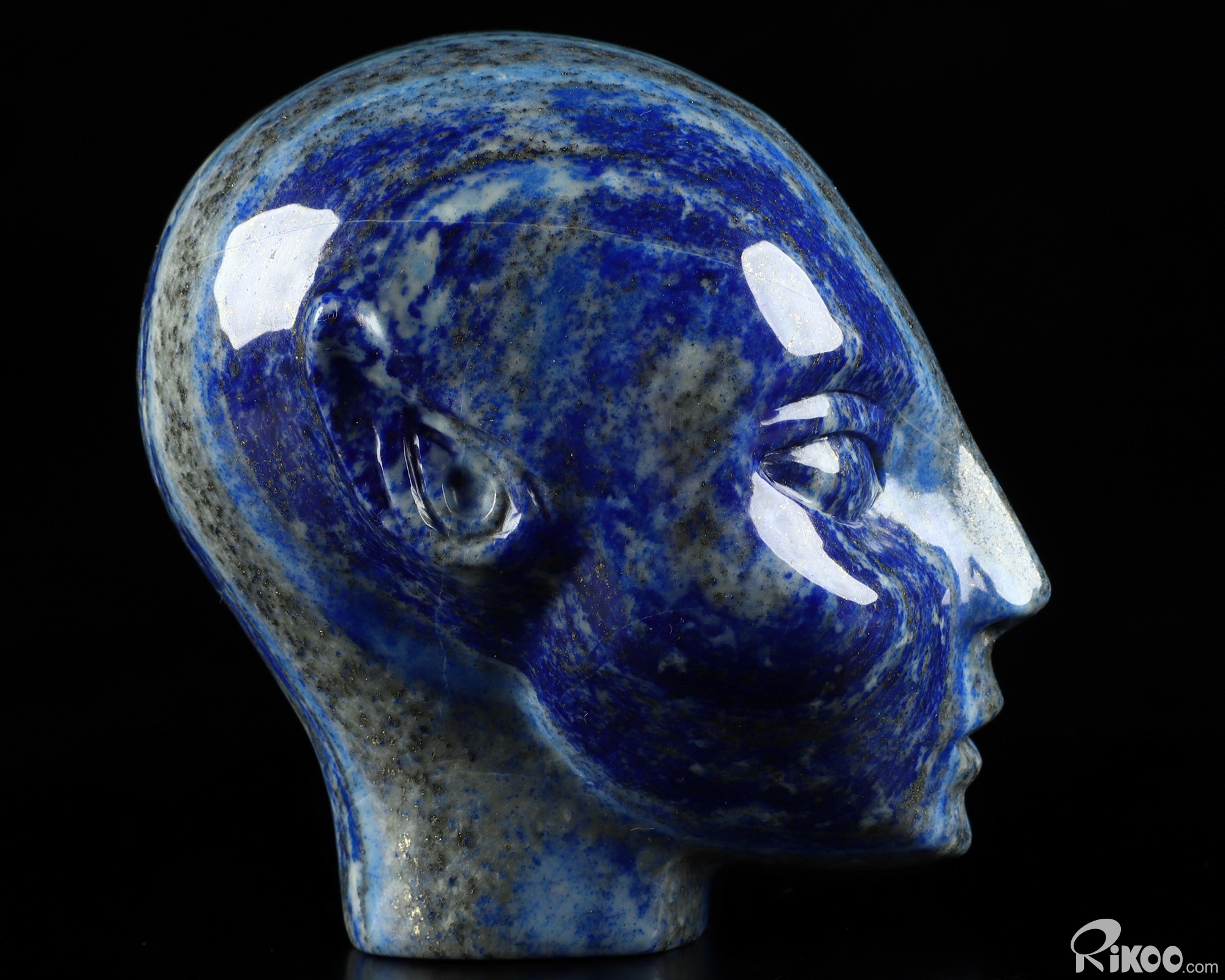 4.1" Lapis Lazuli Carved Fairy Elf Alien Crystal Skull Companion Sculpture, Crystal Healing