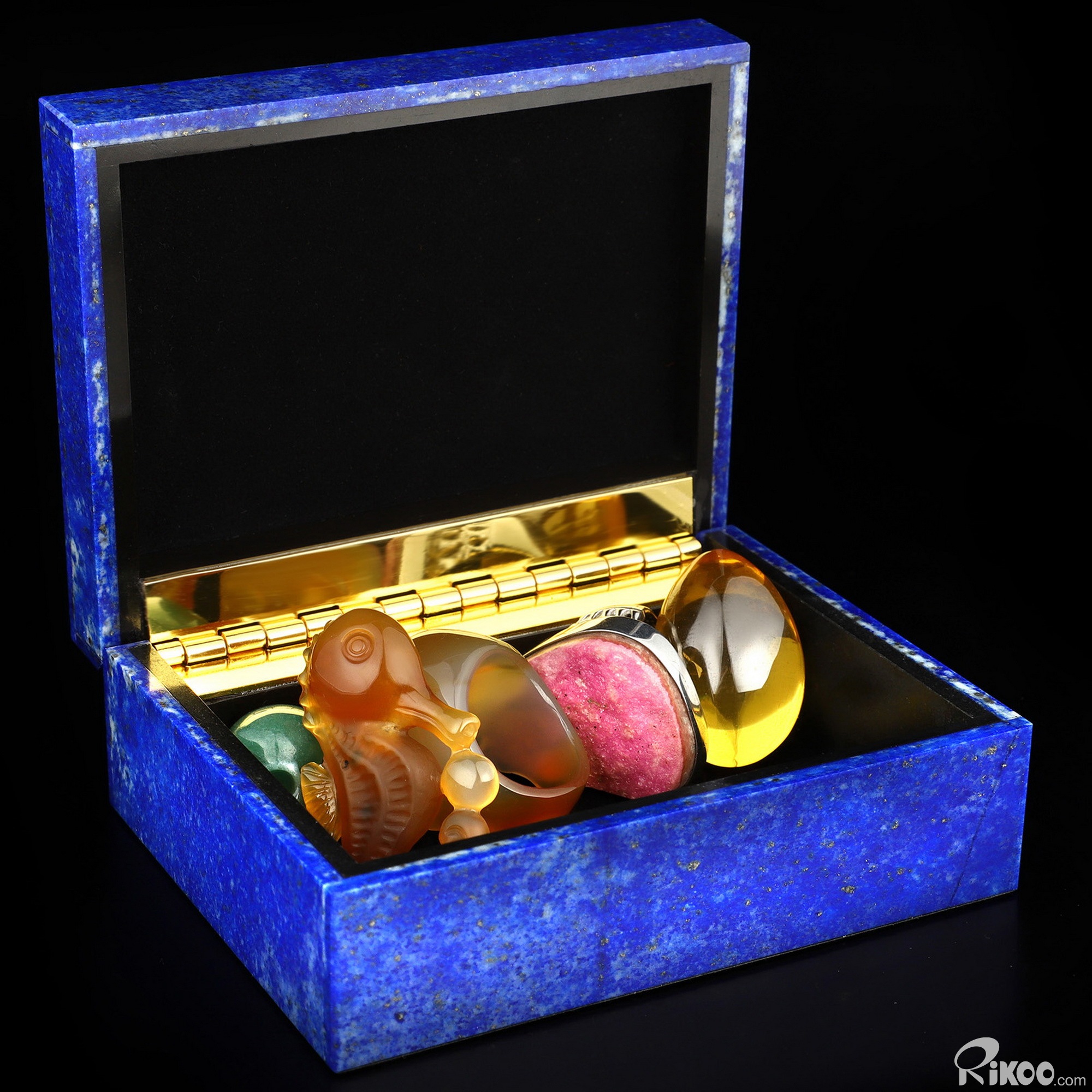 4.1" Lapis Lazuli Hand Carved Crystal Jewelry Gemstone Box, Crystal Healing