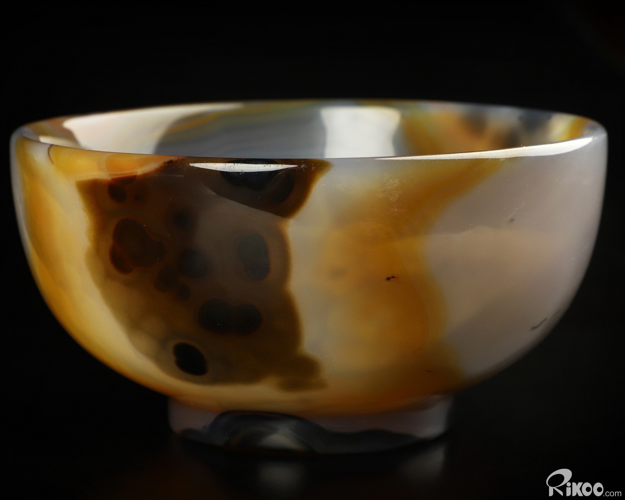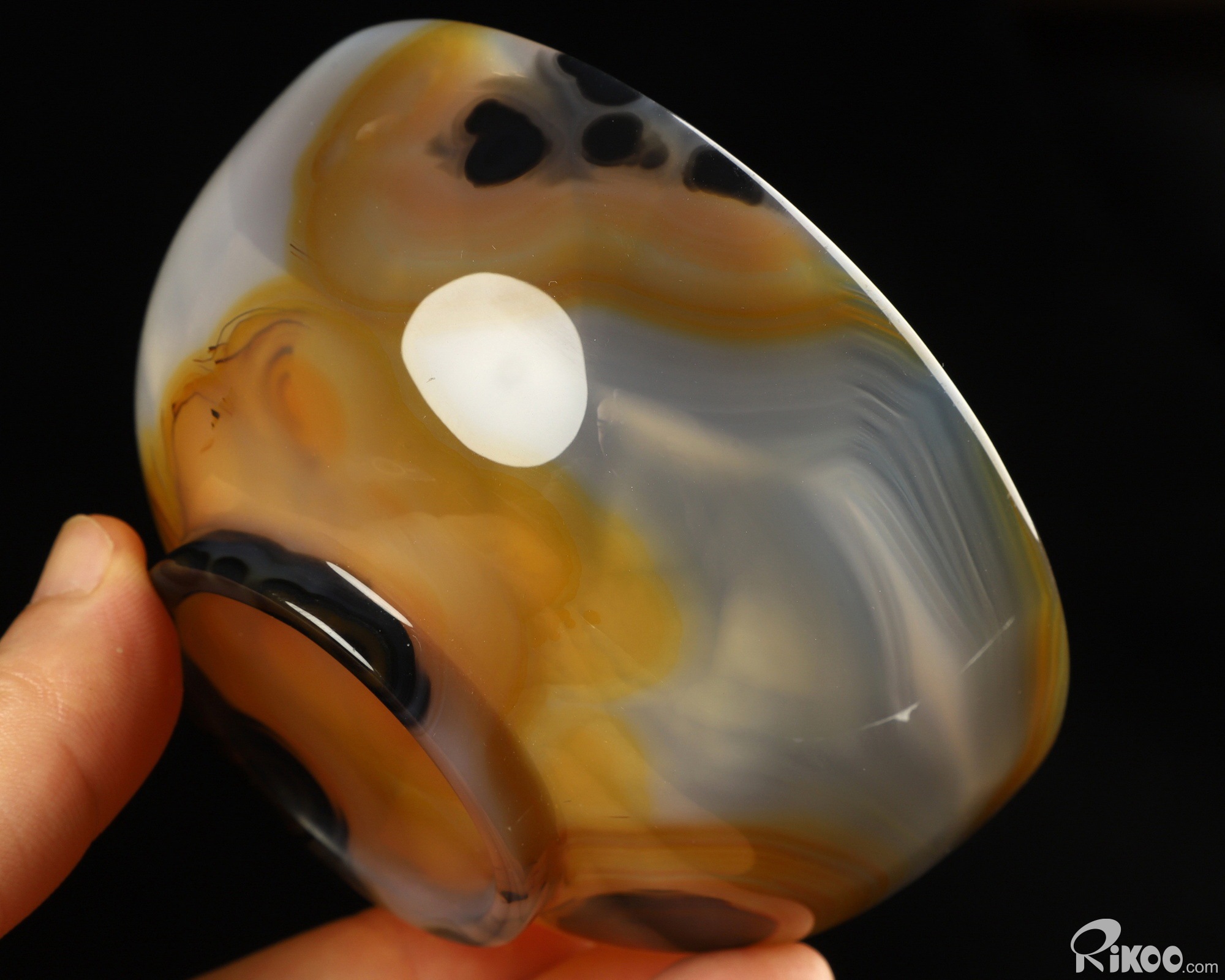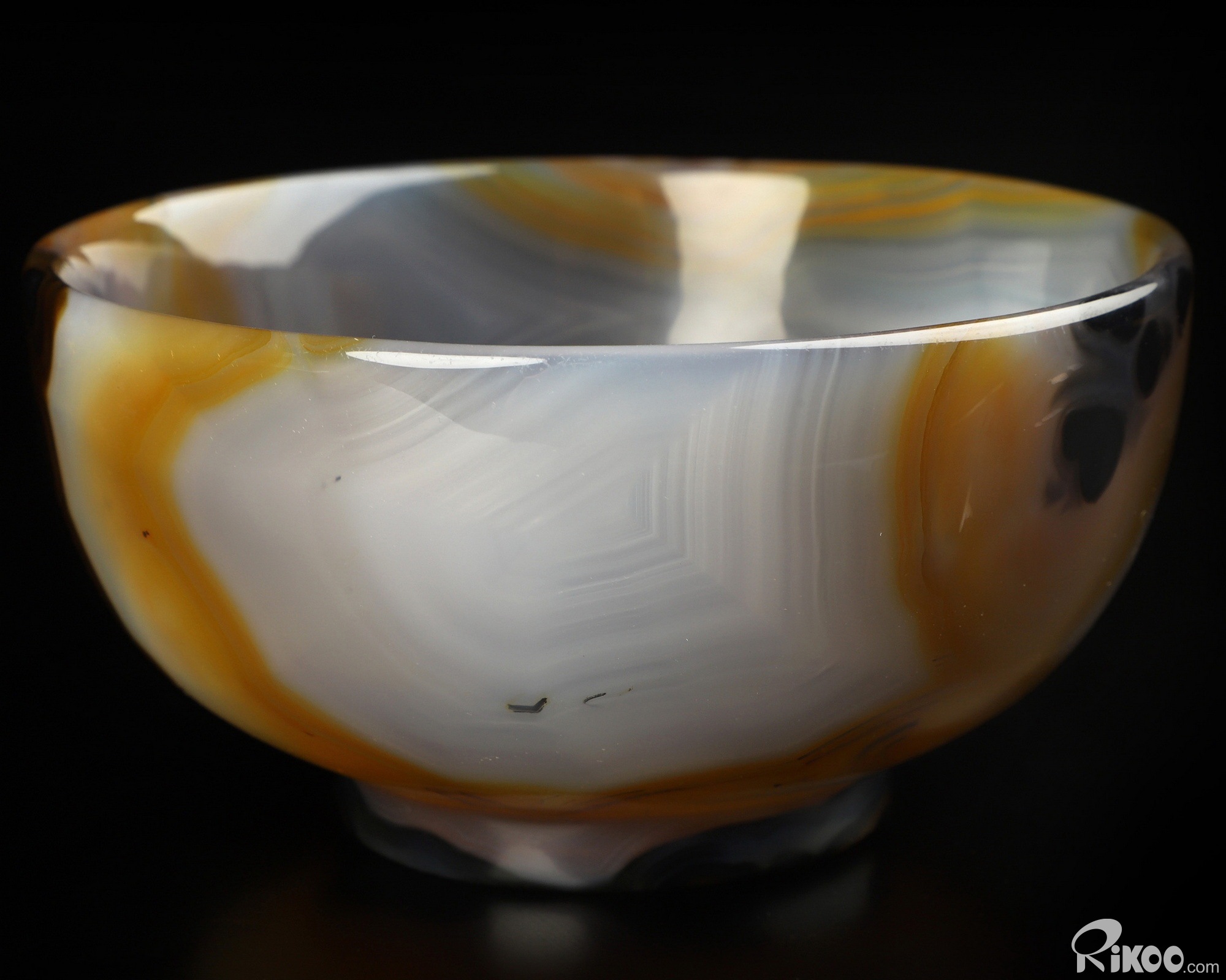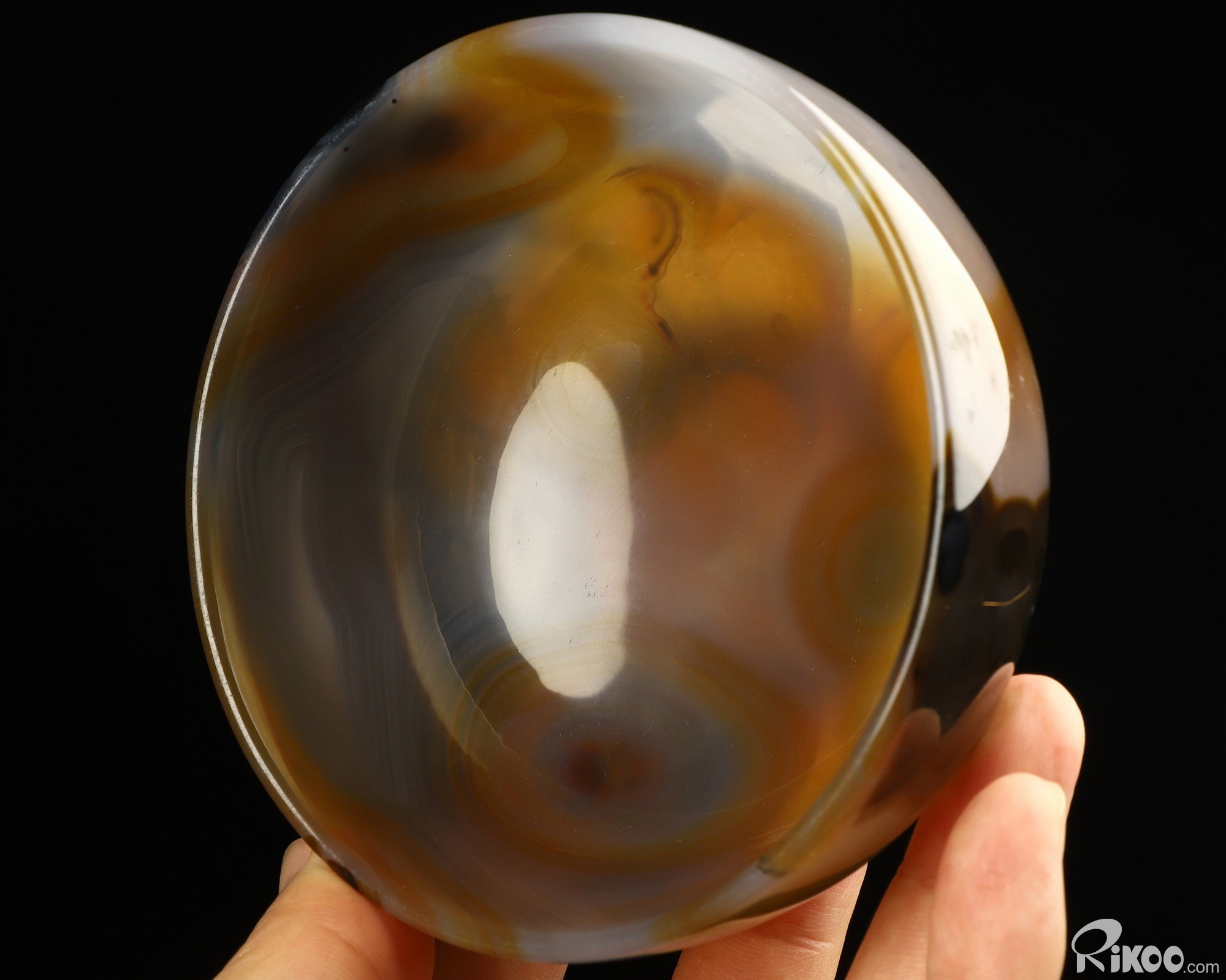You are looking at a Premium Brazilian Agate Bowl. The Bowl is 4.1 inches long from front to back.