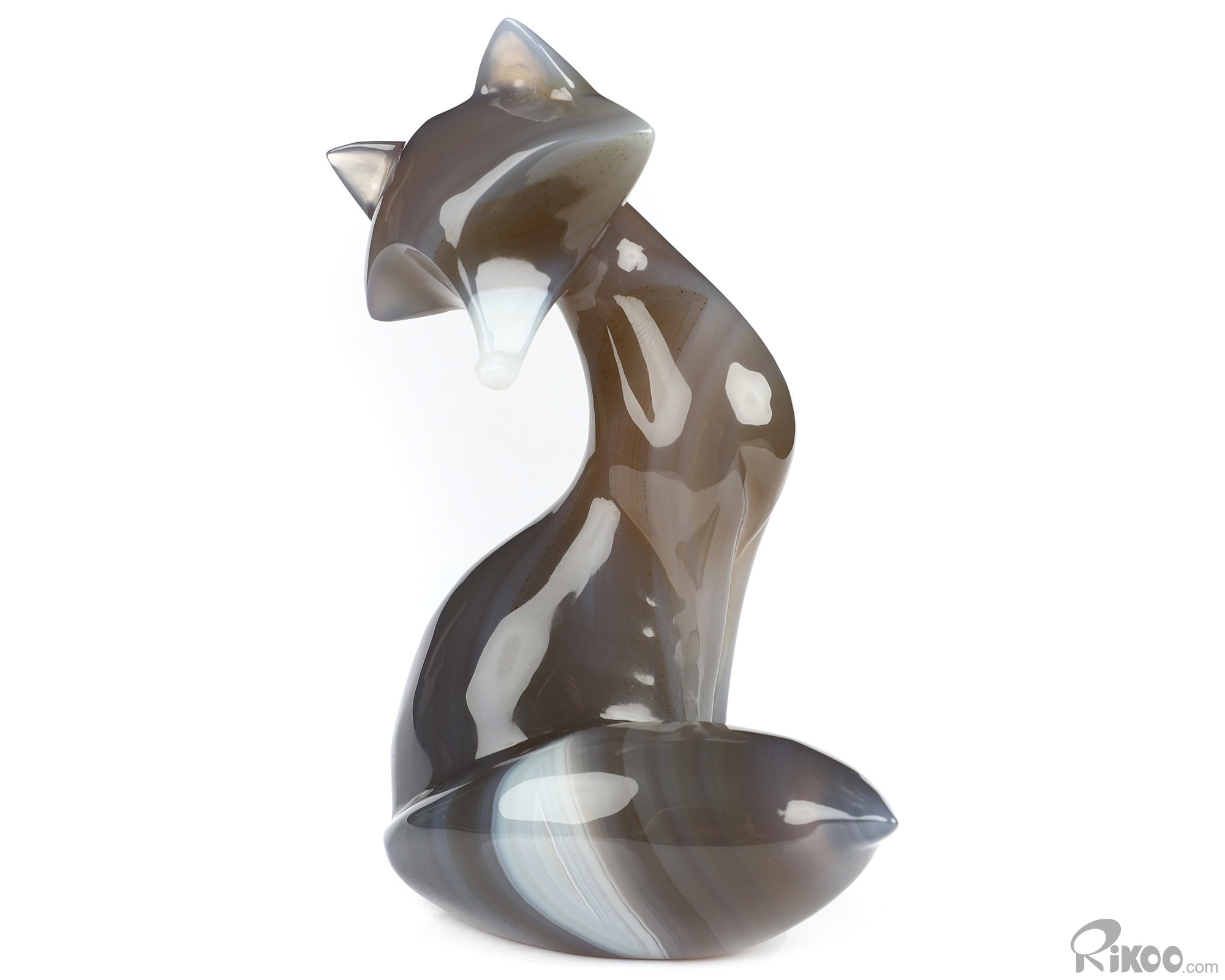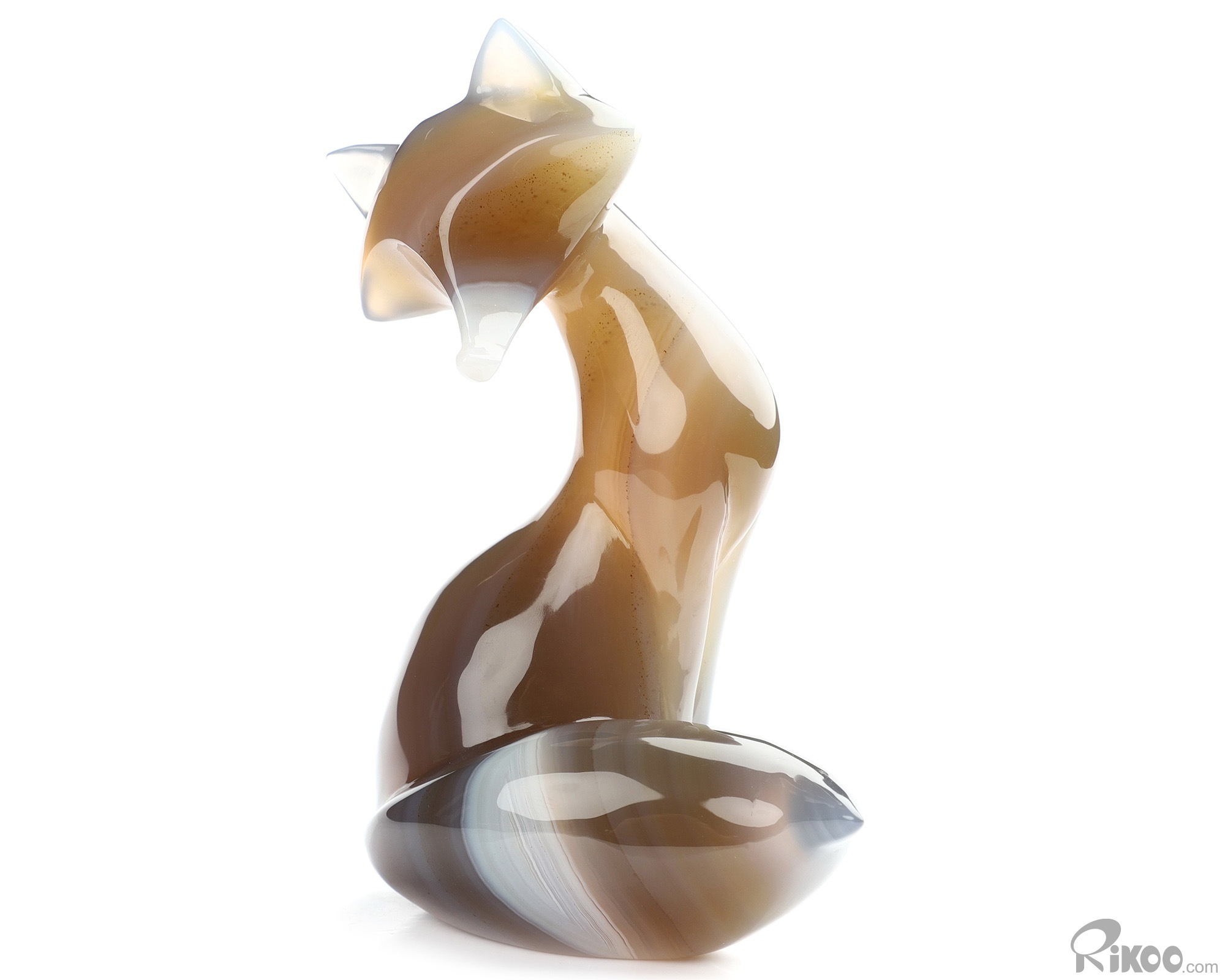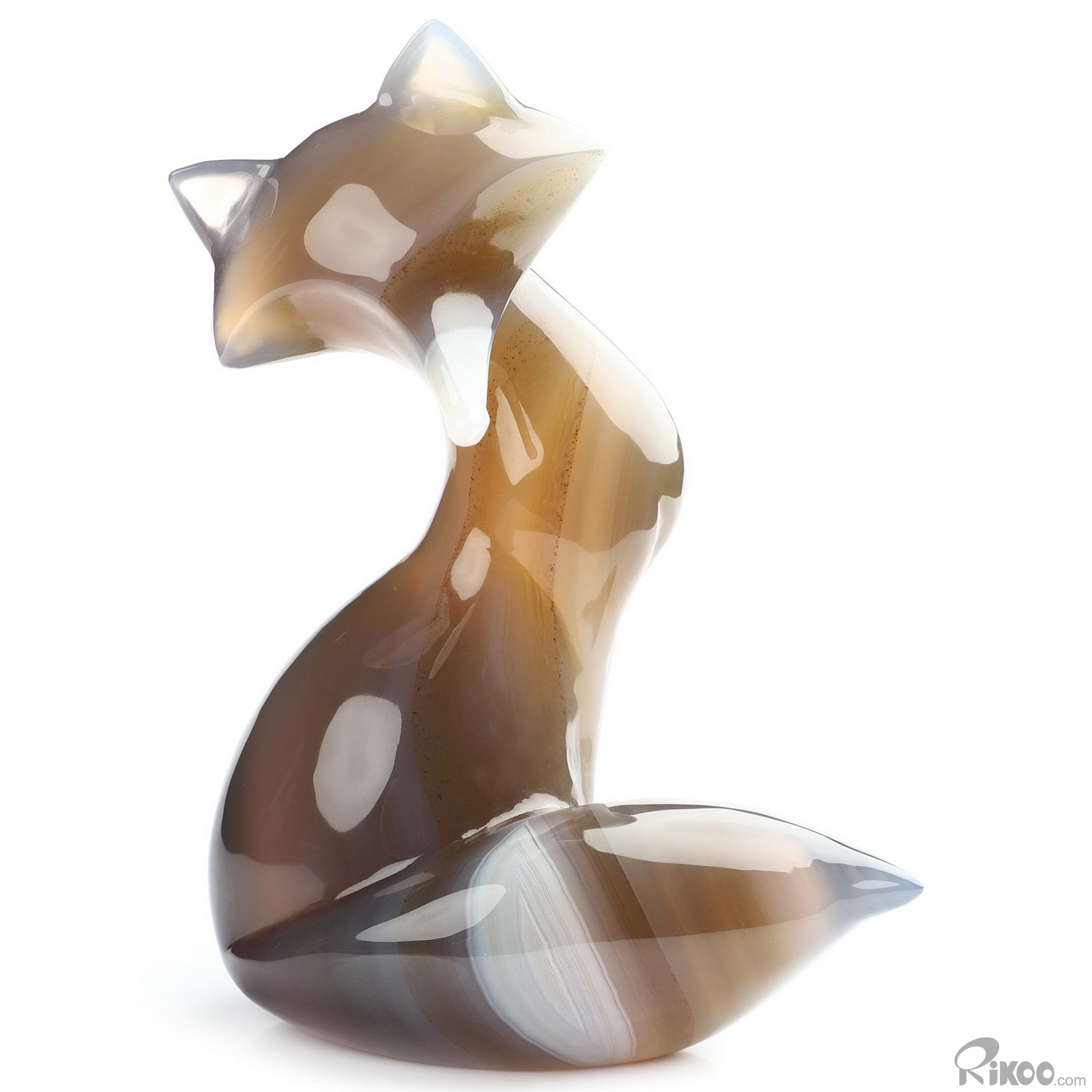 4.1" Premium Brazilian Agate Hand Carved Crystal Fox Sculpture, Crystal Healing