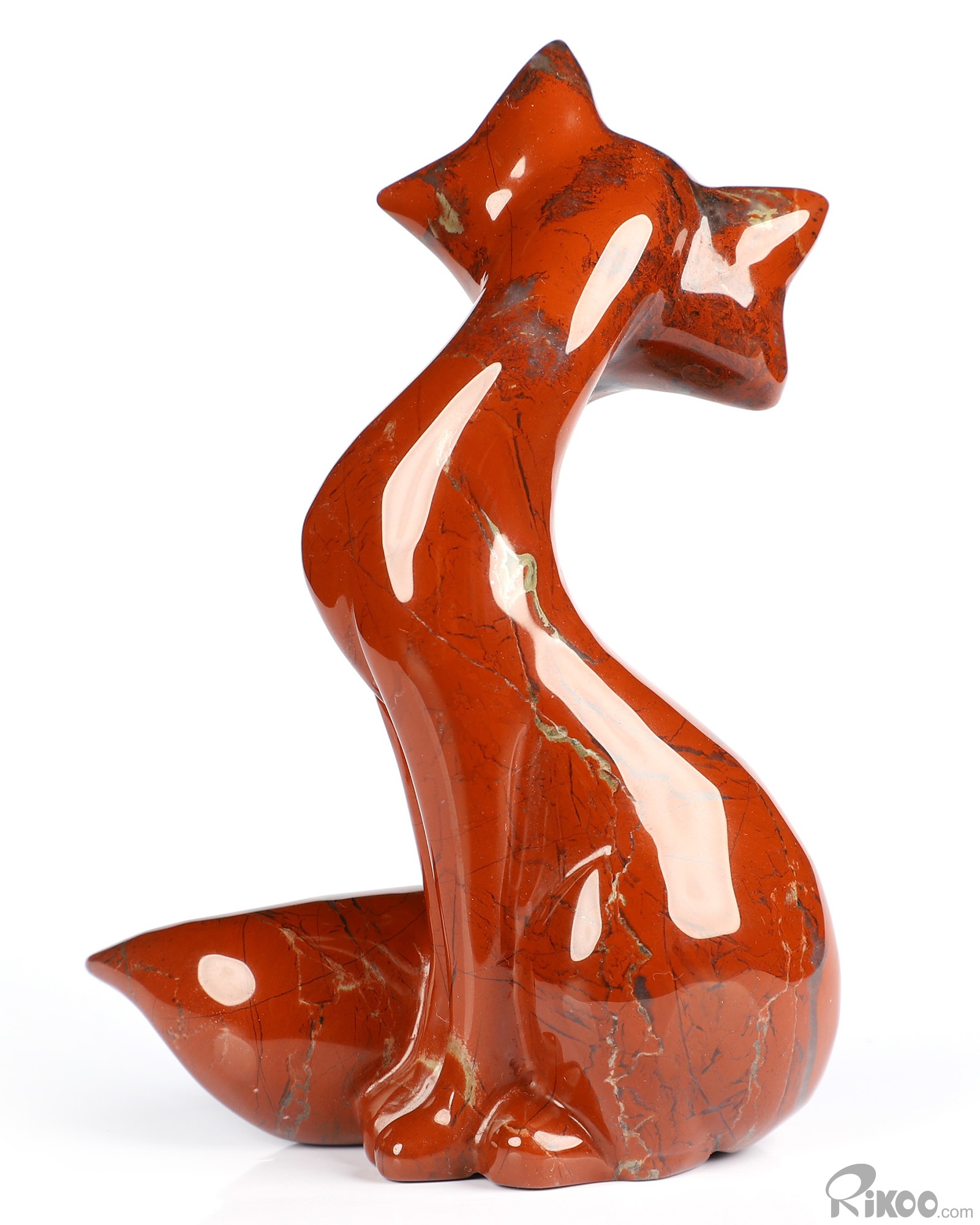 4.1" Red Jasper Carved Crystal Fox Sculpture, Crystal Healing
