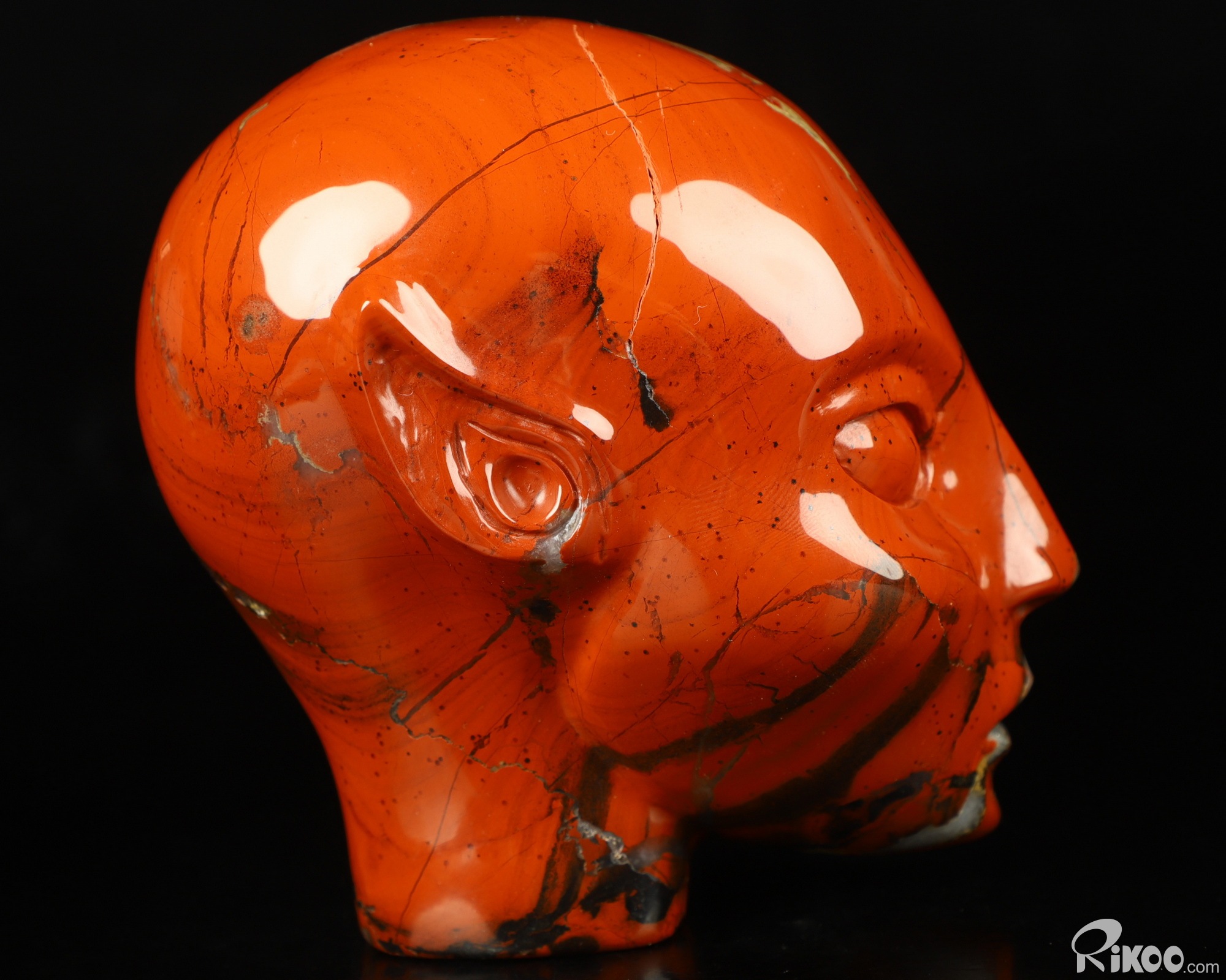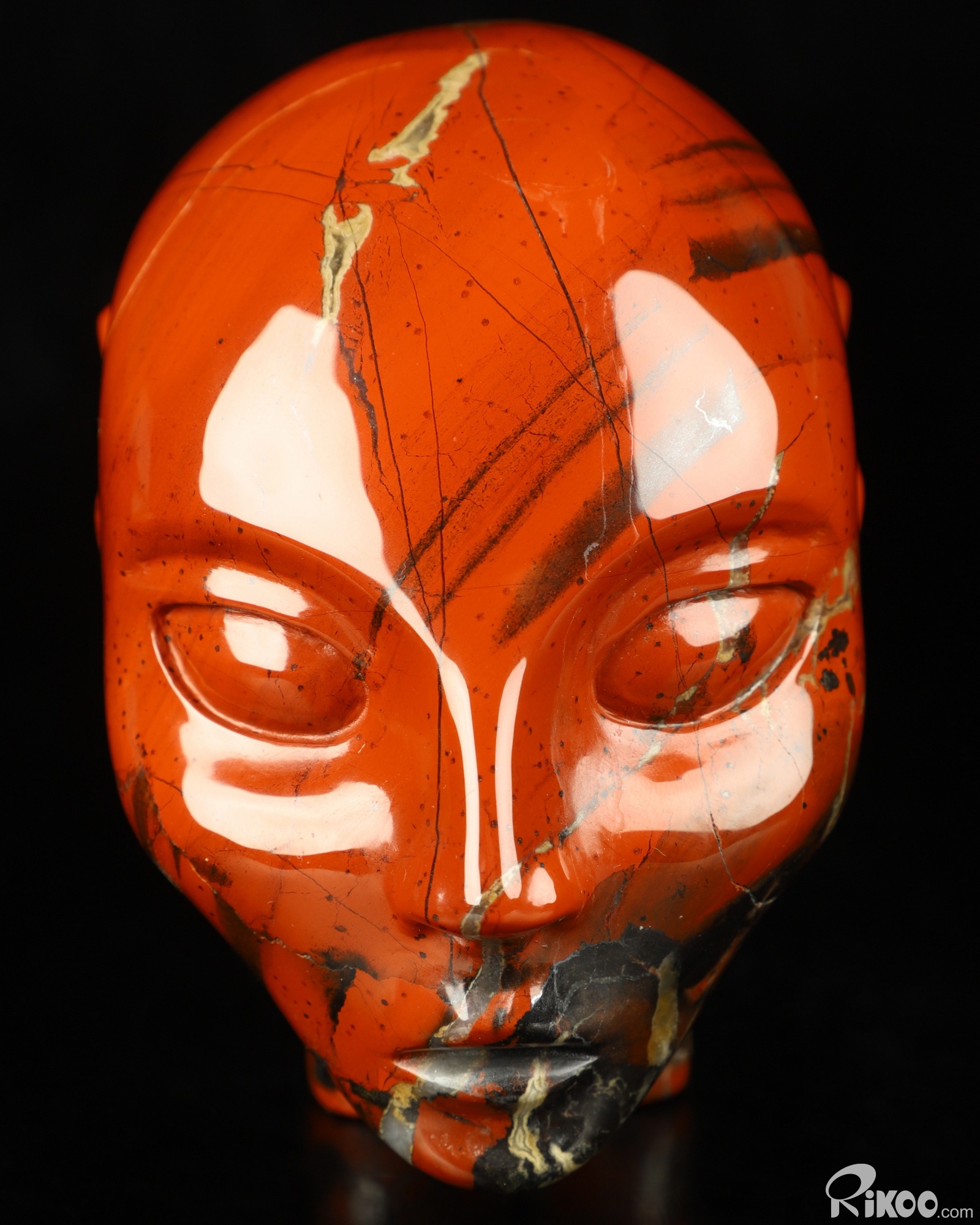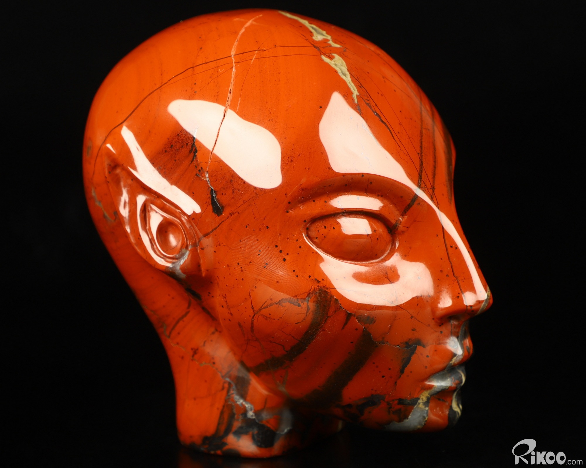 4.1" Red Jasper Carved Fairy Elf Alien Crystal Skull Companion Sculpture , Crystal Healing