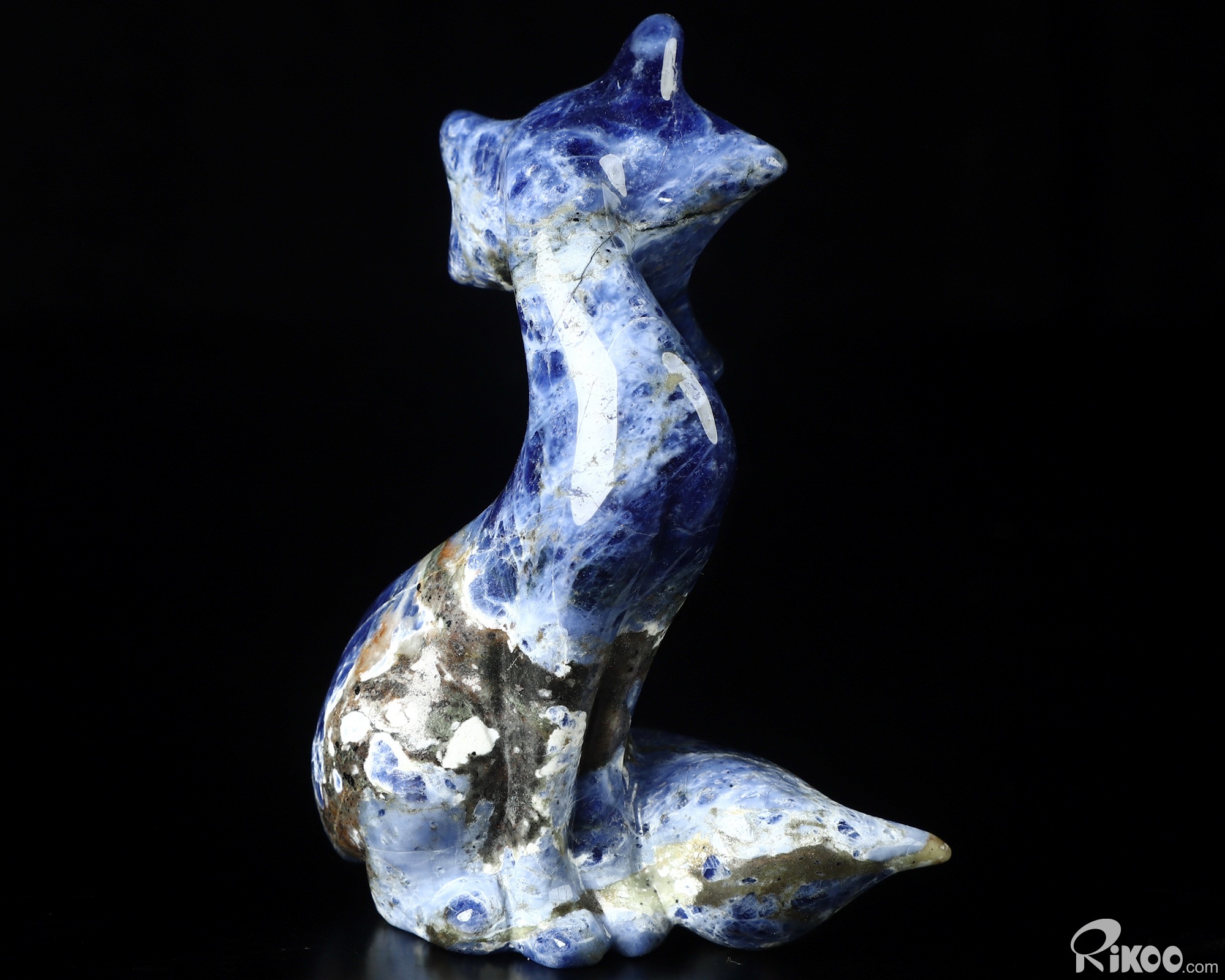 4.1" Sodalite Hand Carved Crystal Fox Sculpture, Crystal Healing