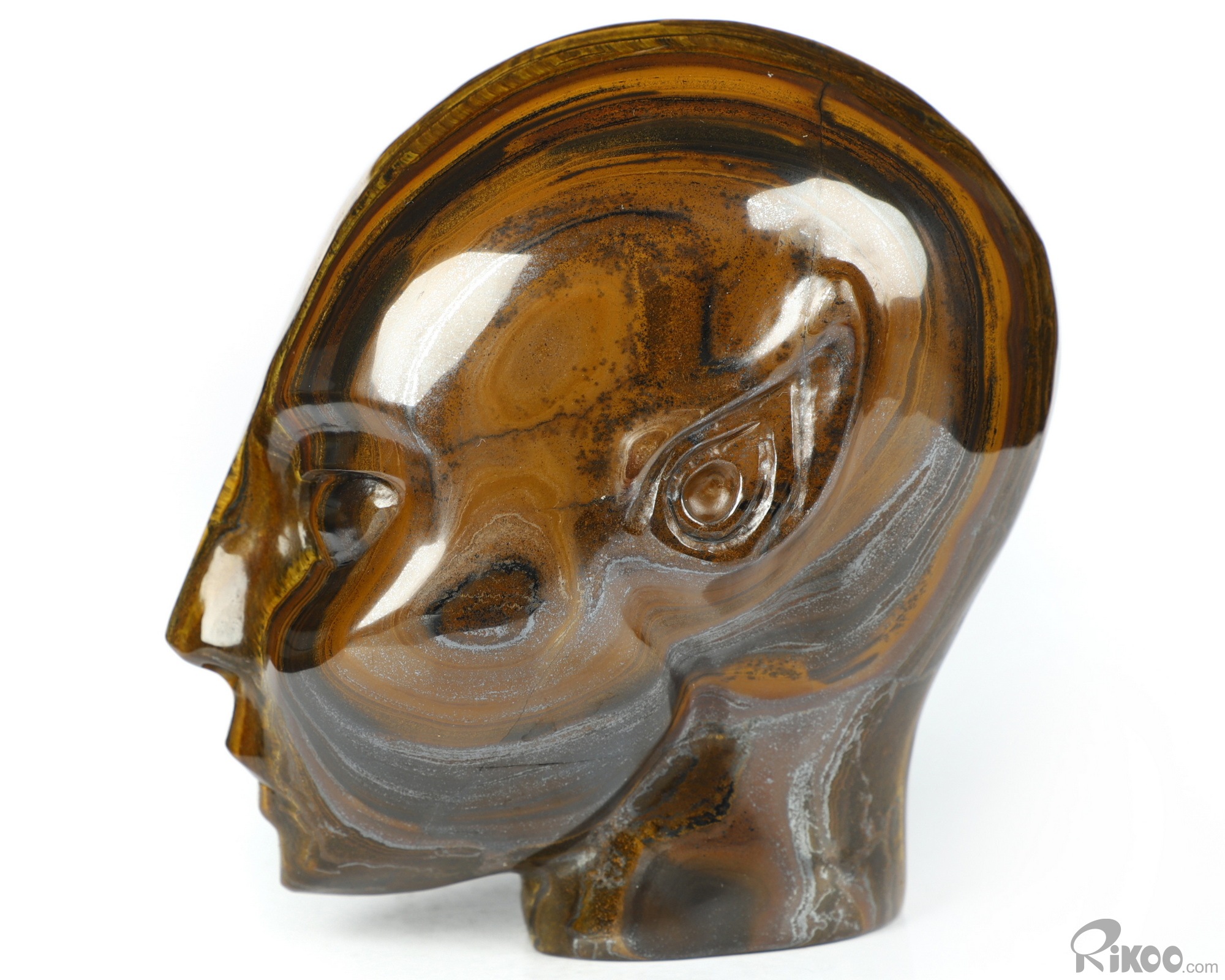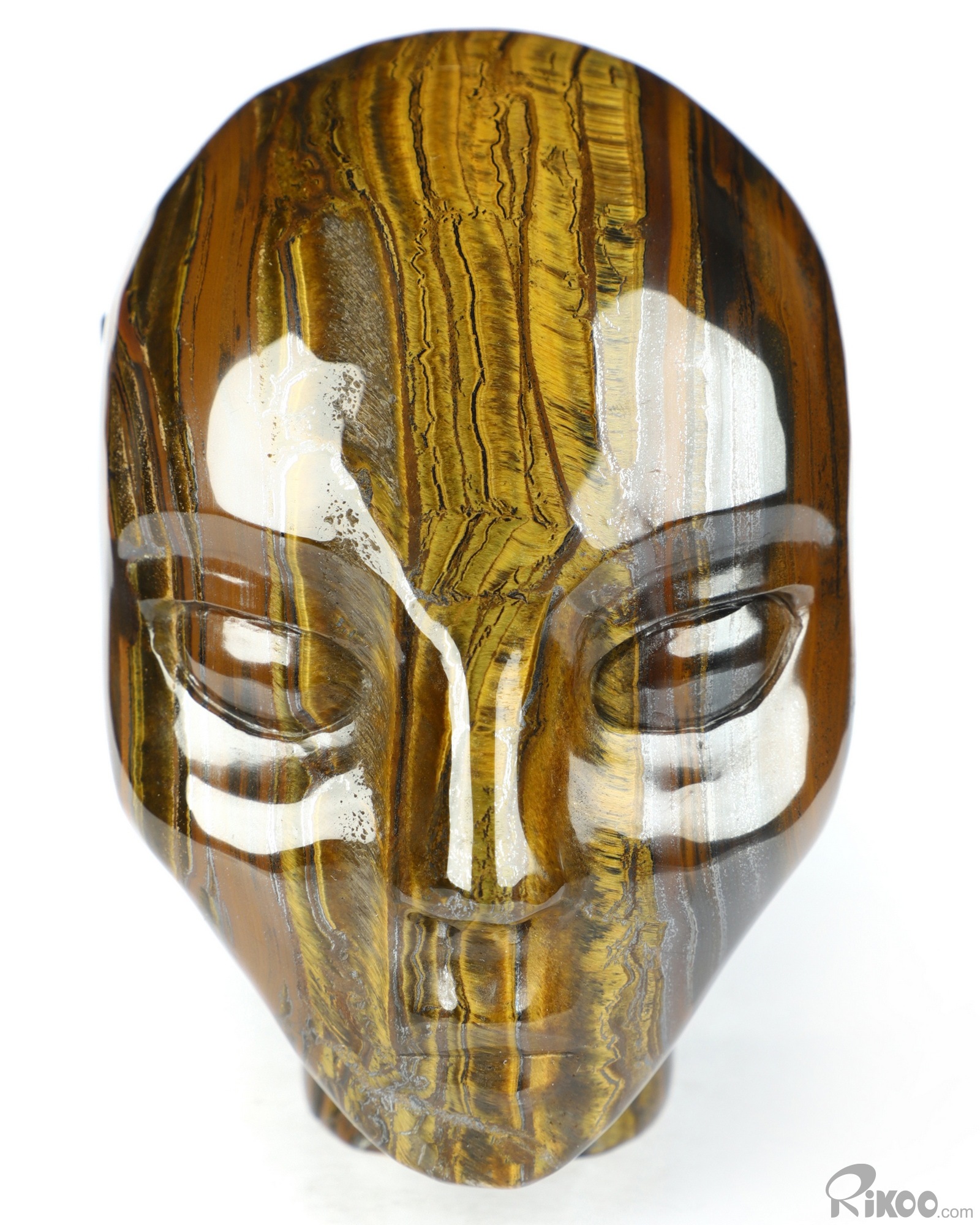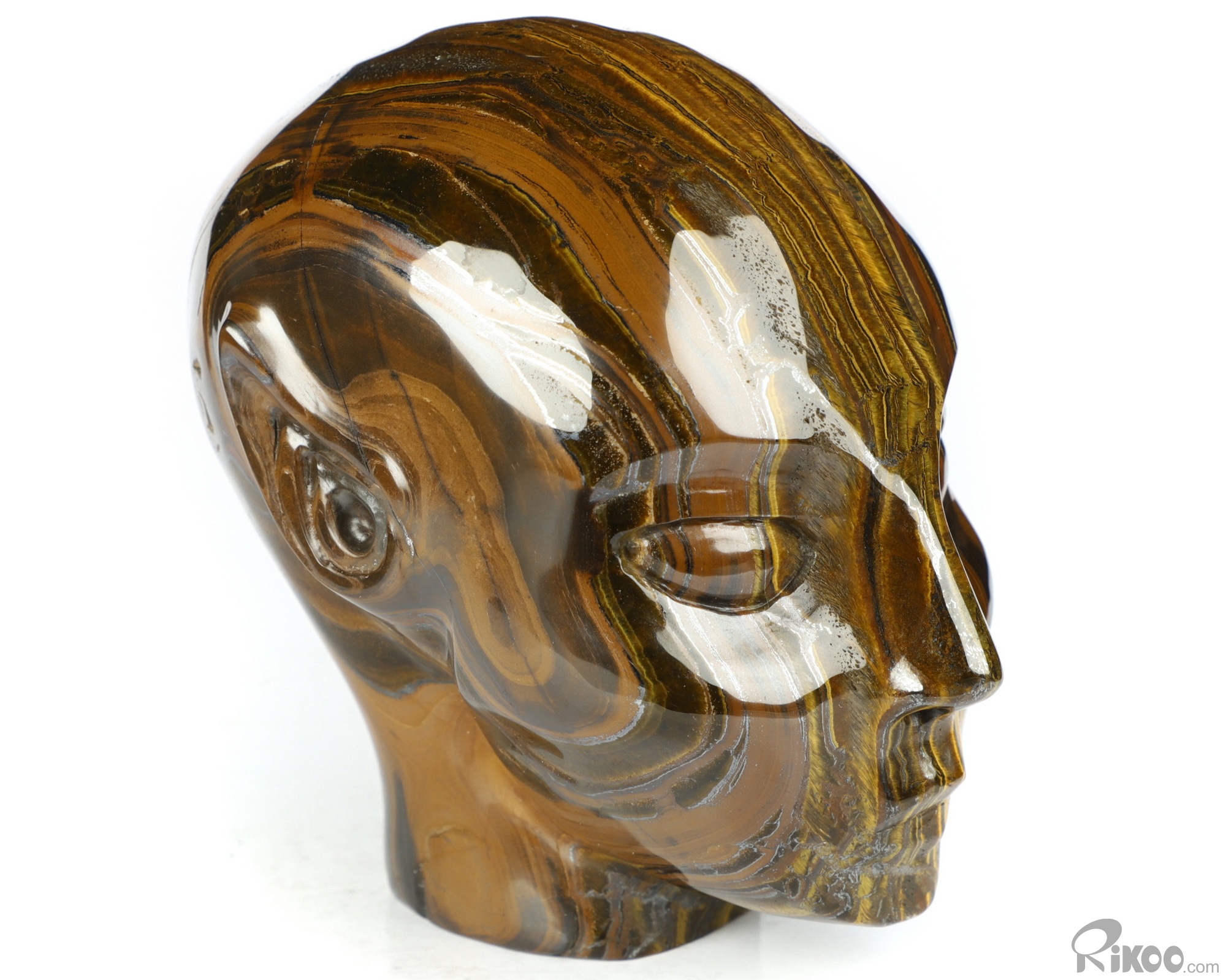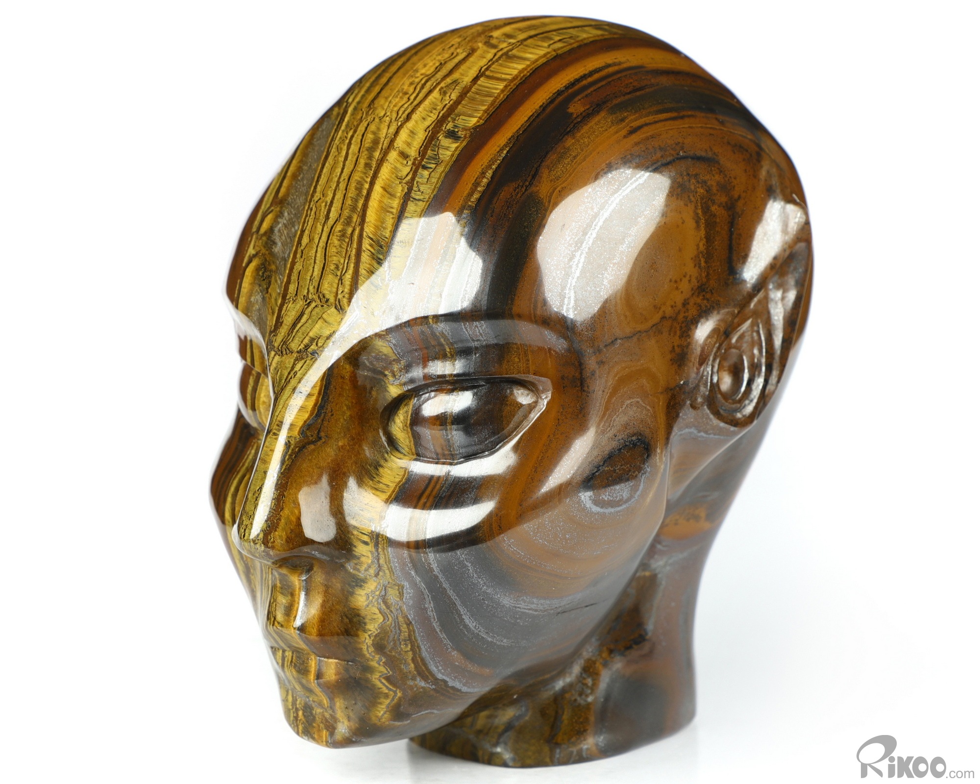 4.1" Tiger Iron Eye Carved Fairy Elf Alien Crystal Skull Companion Sculpture , Crystal Healing