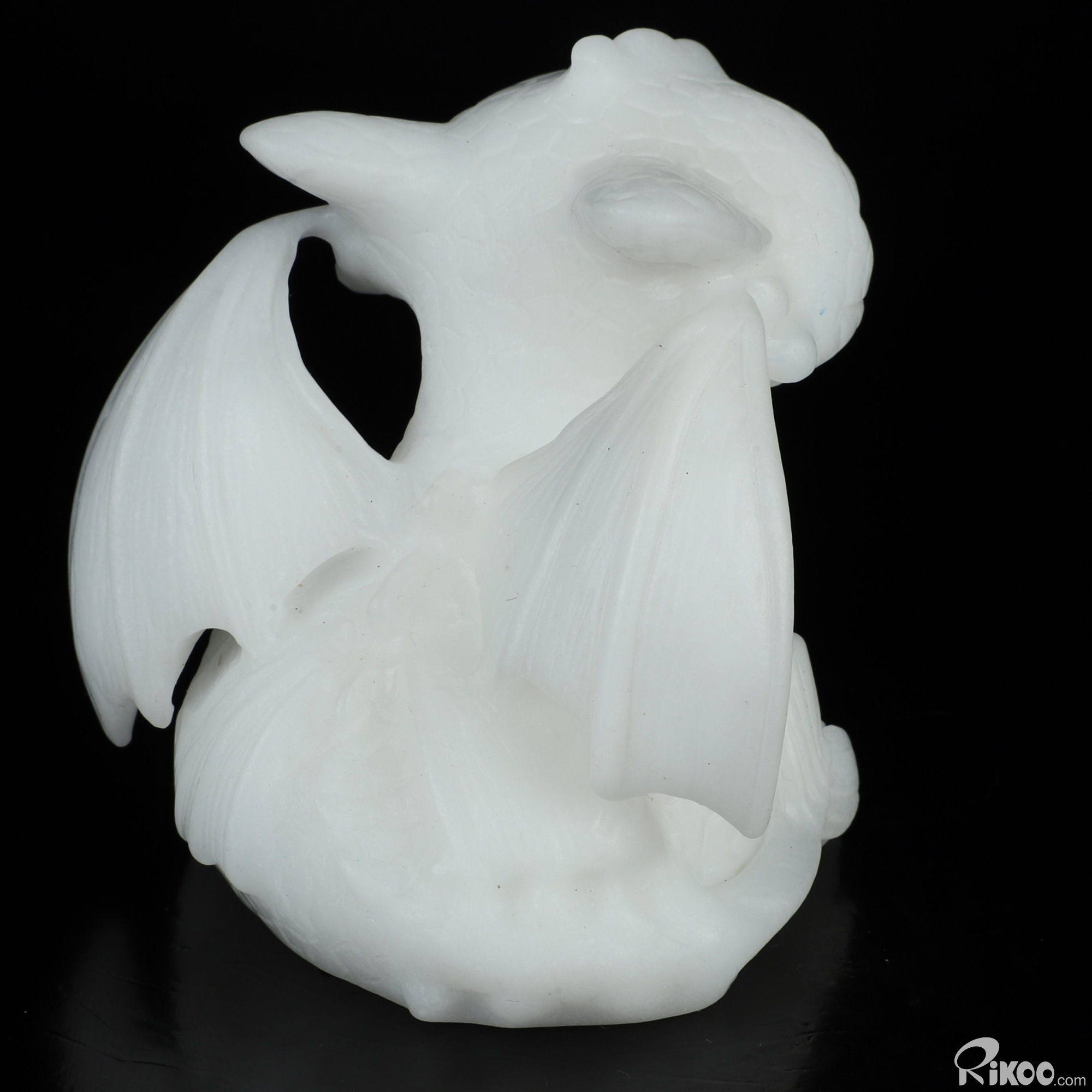 4.1" White Jade Hand Carved Crystal Toothless Dragon Sculpture, Crystal Healing