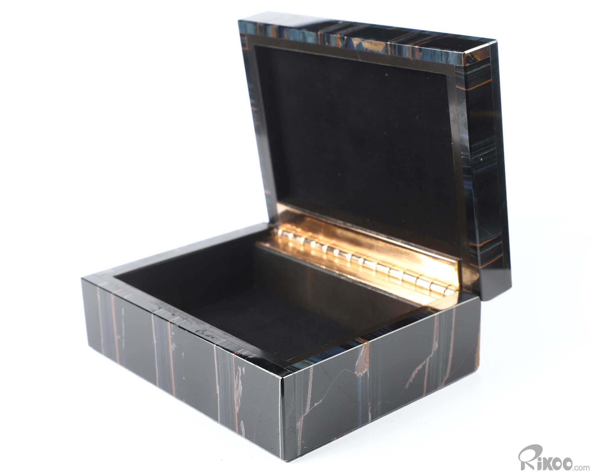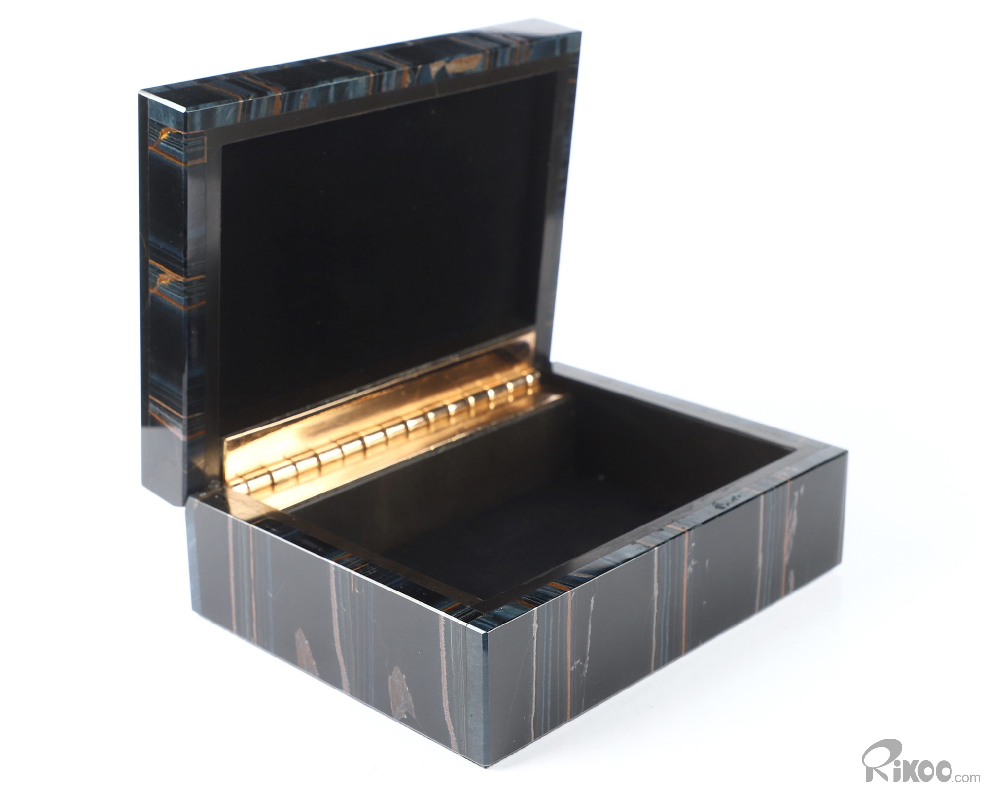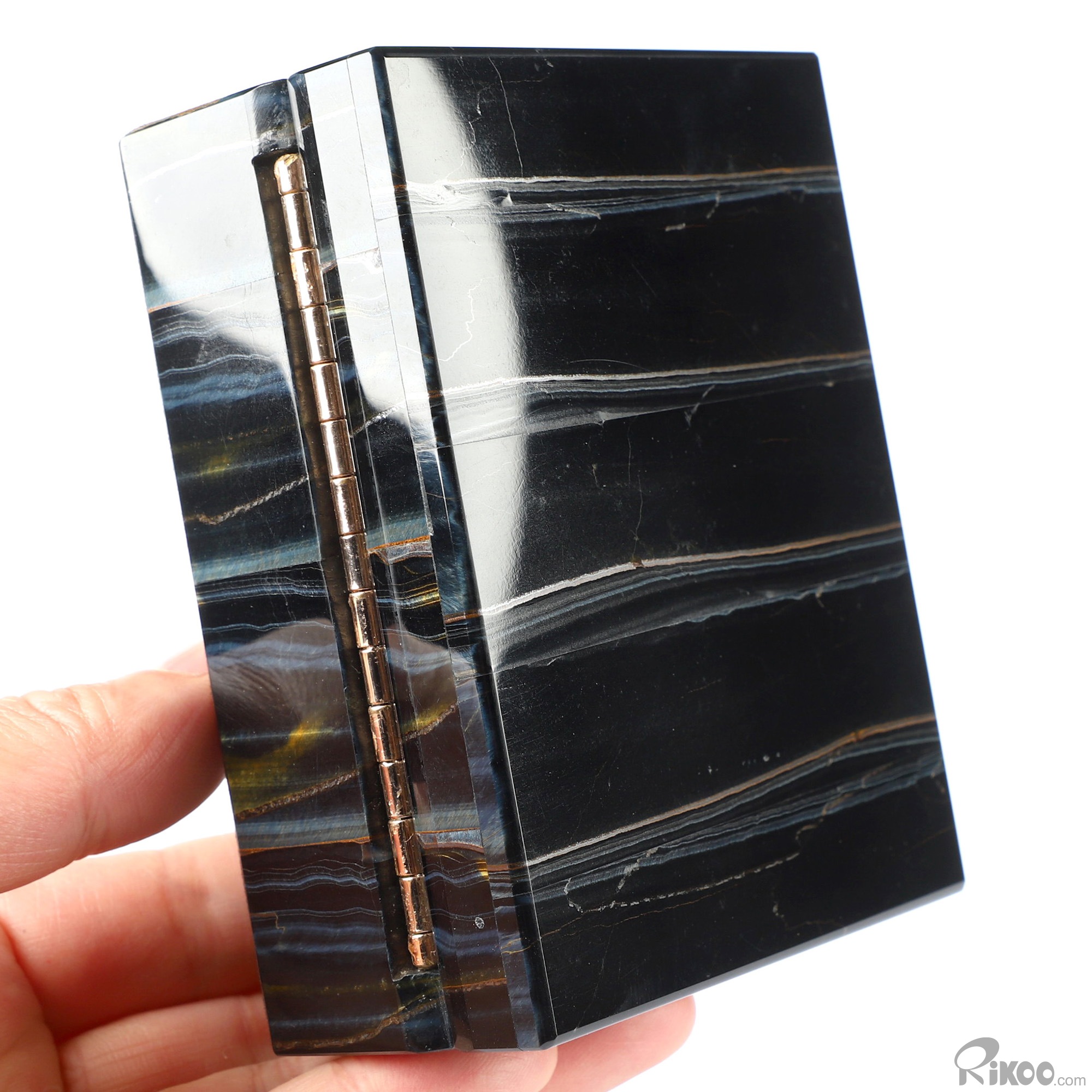 4.2" Blue Tiger's Eye Hand Carved Crystal Jewelry Box, Crystal Healing