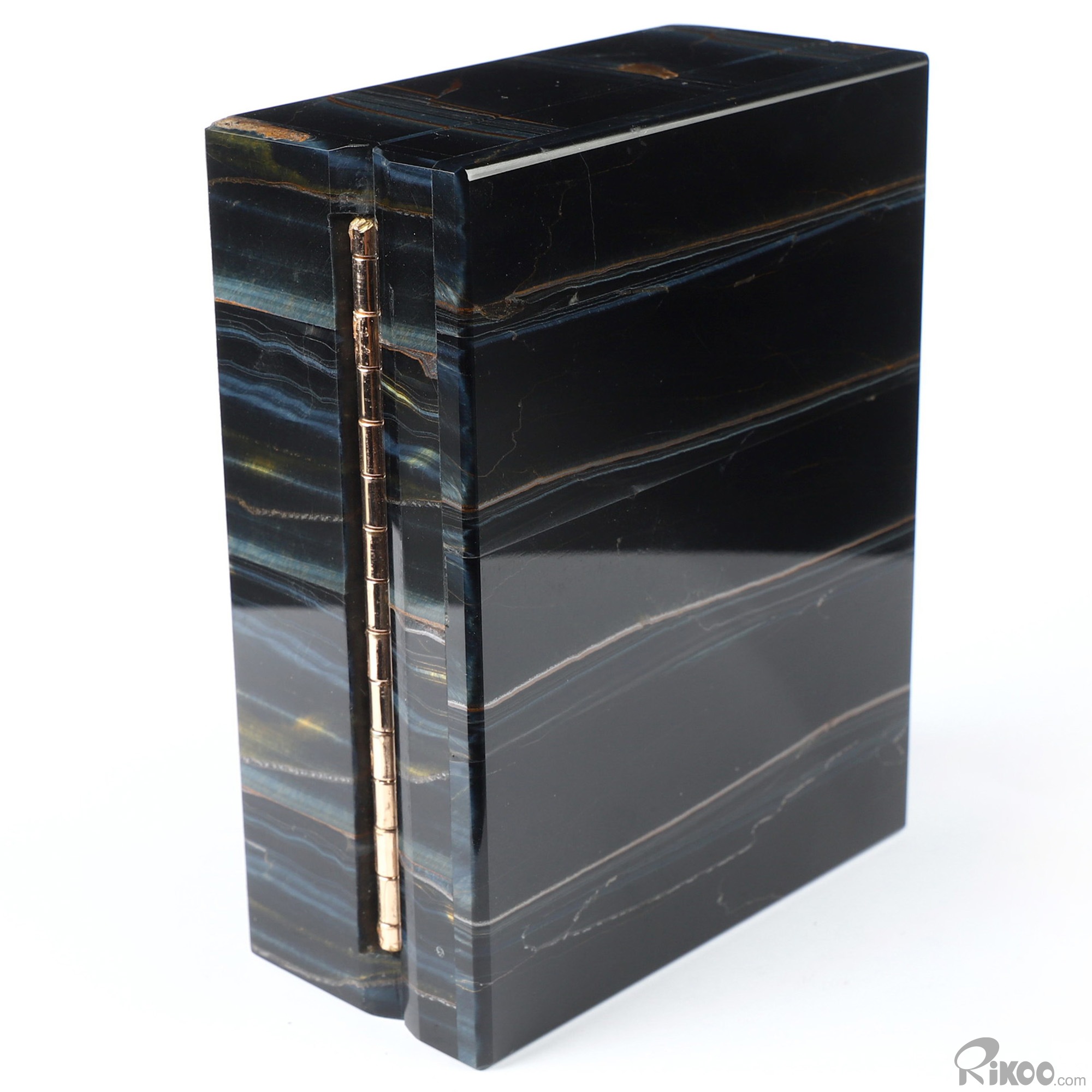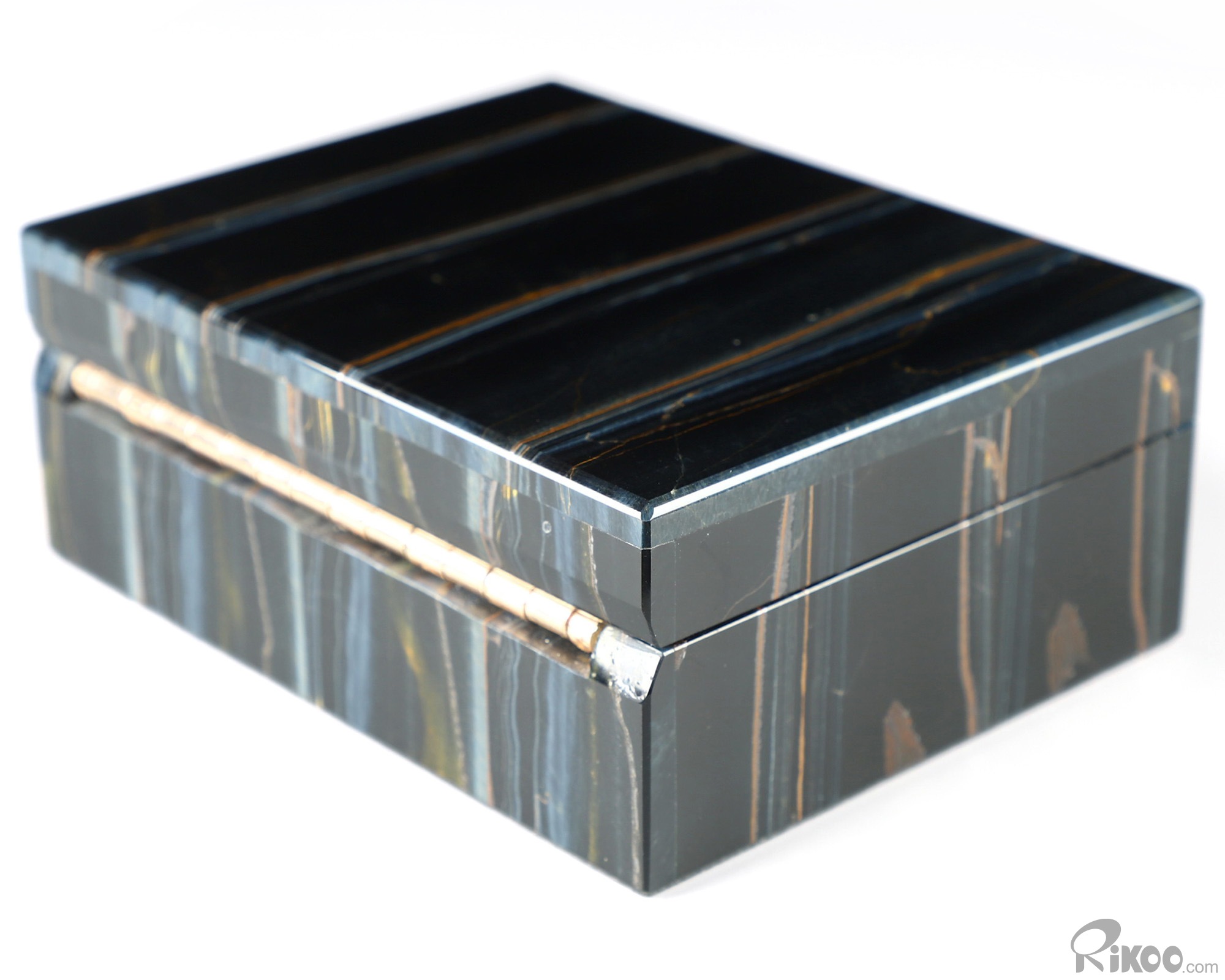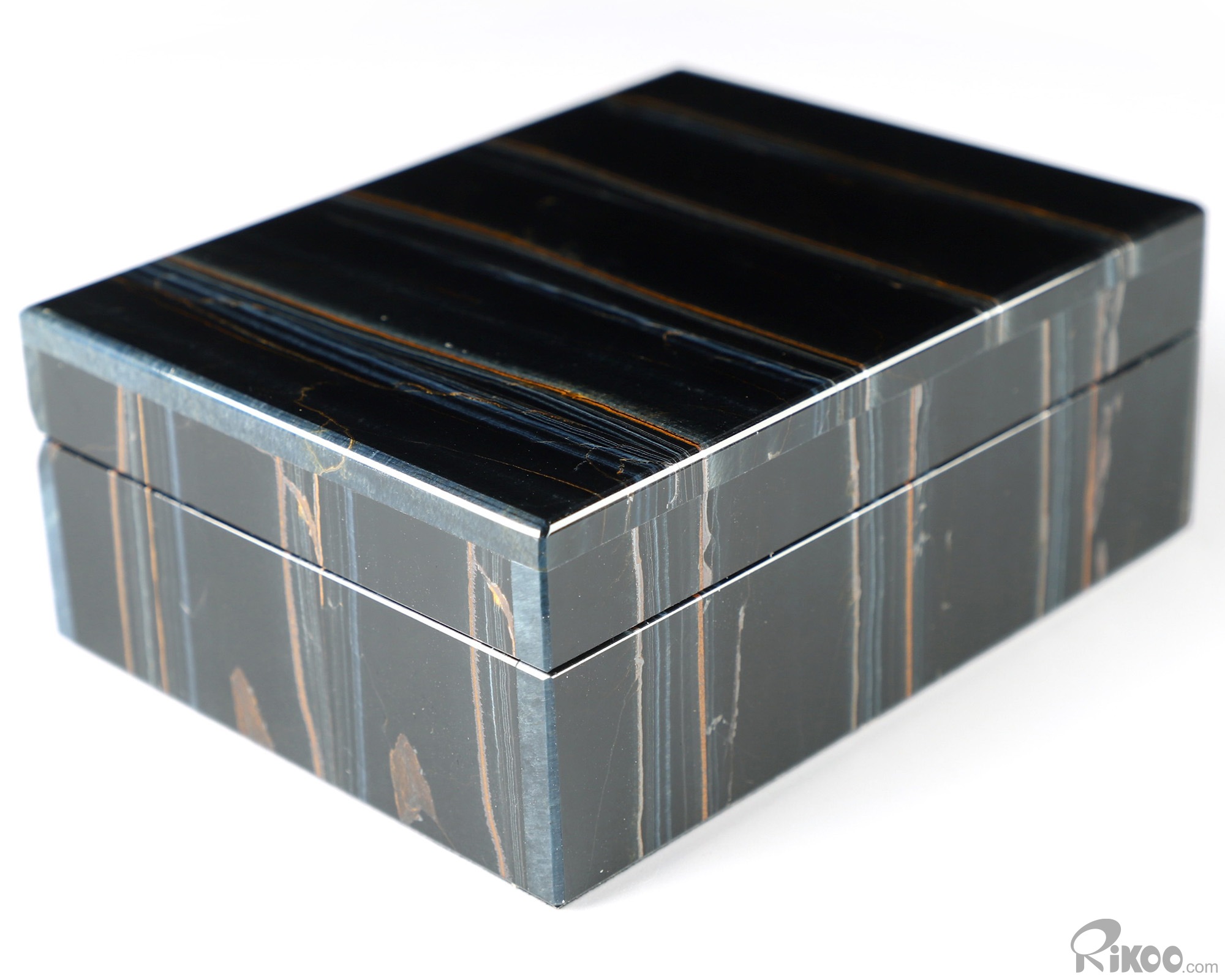4.2" Blue Tiger's Eye Hand Carved Crystal Jewelry Box, Crystal Healing