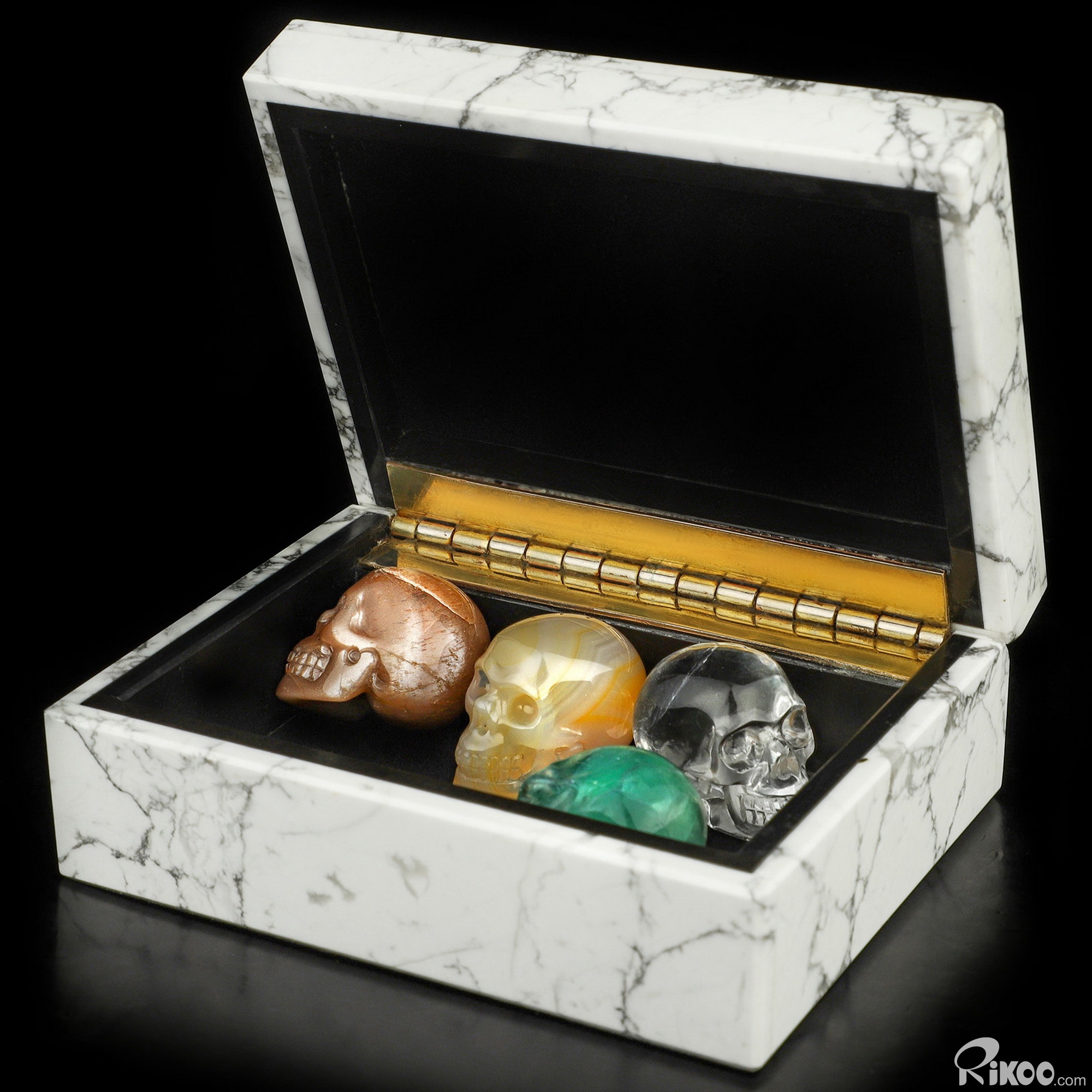 4.2" Howlite Hand Carved Crystal Jewelry Gemstone Box, Crystal Healing
