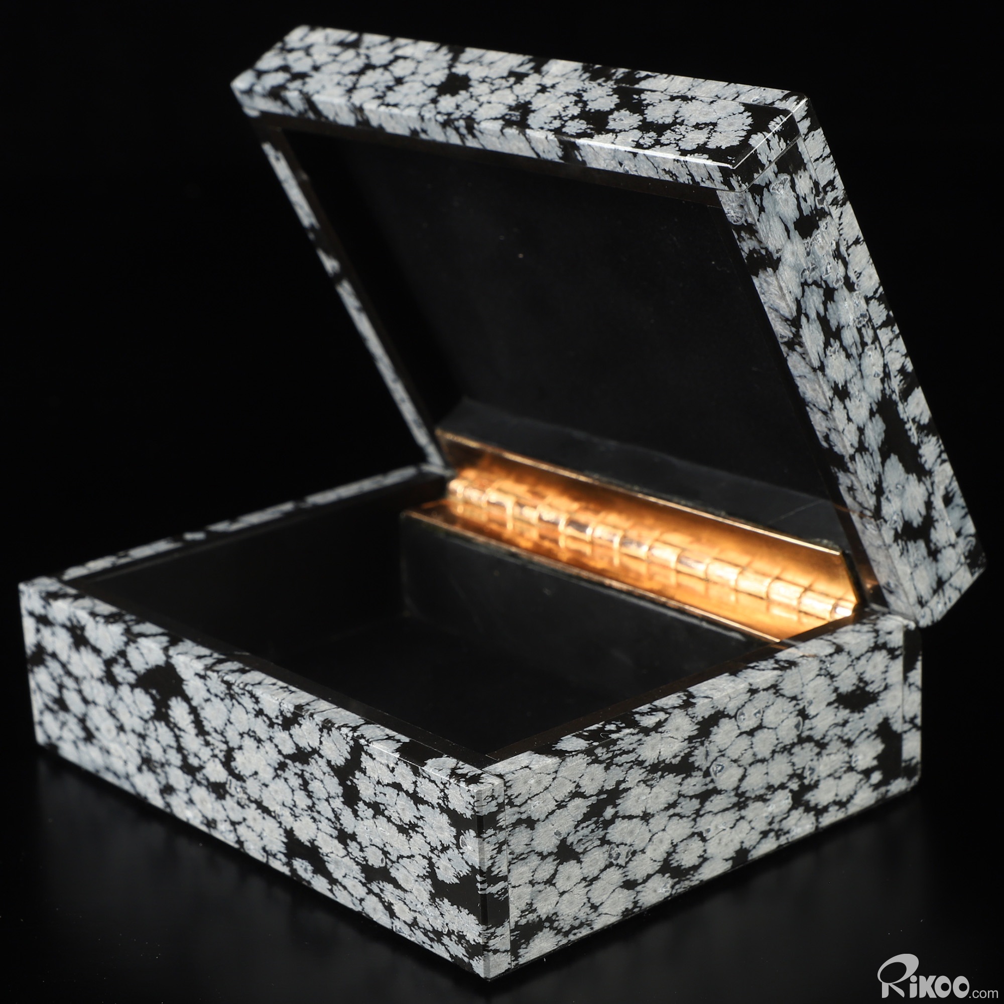 4.2" Snowflake Obsidian Hand Carved Crystal Jewelry Box, Crystal Healing