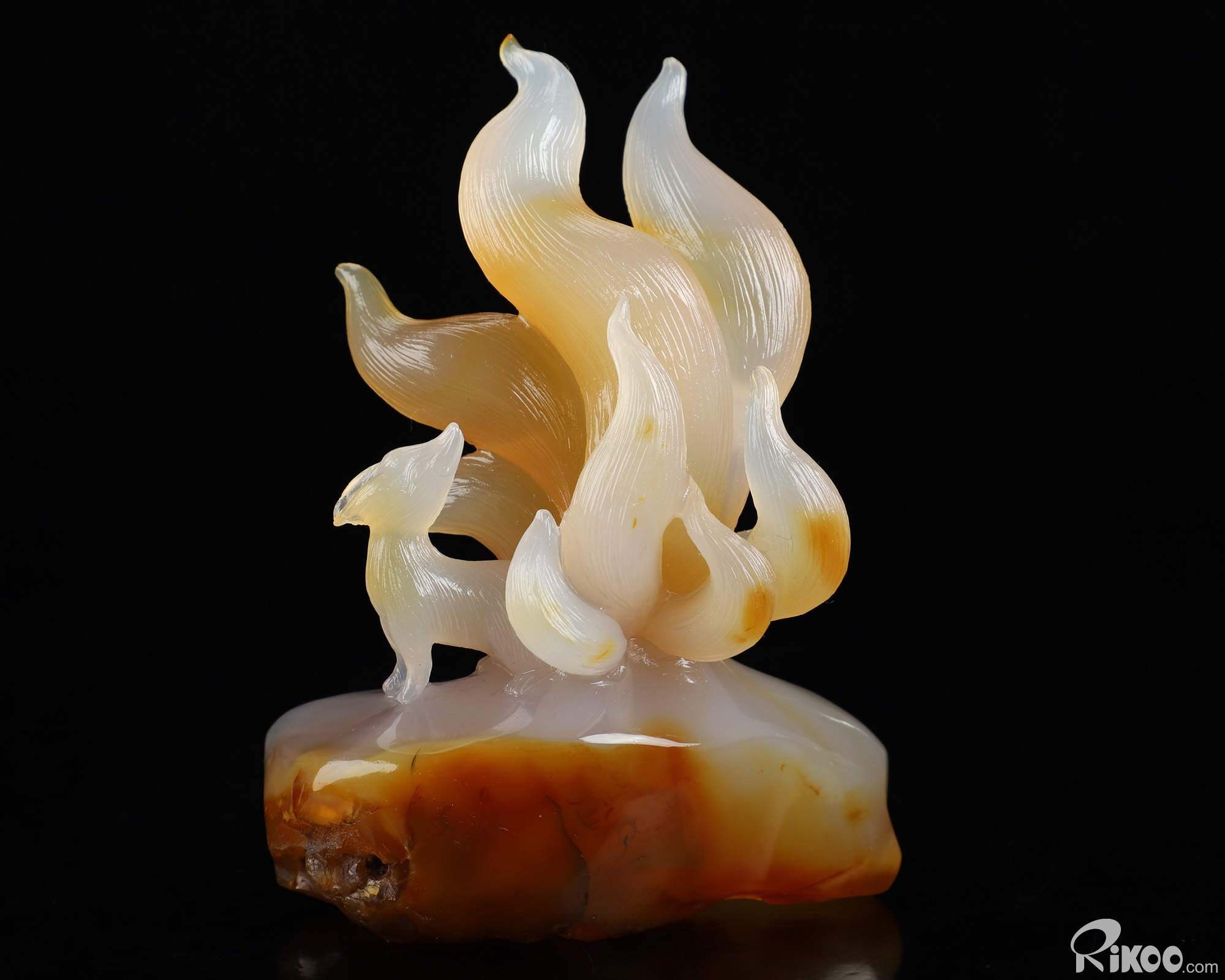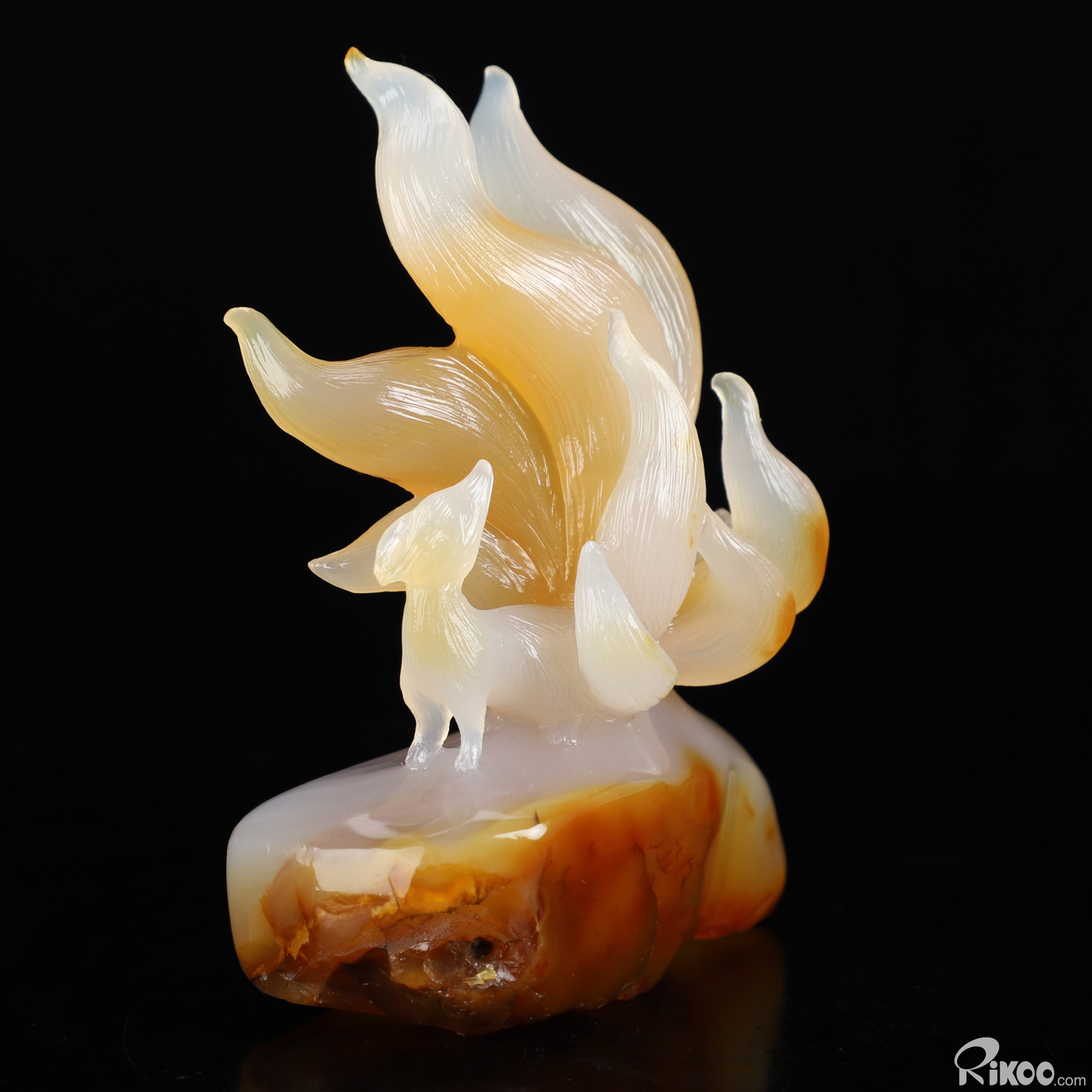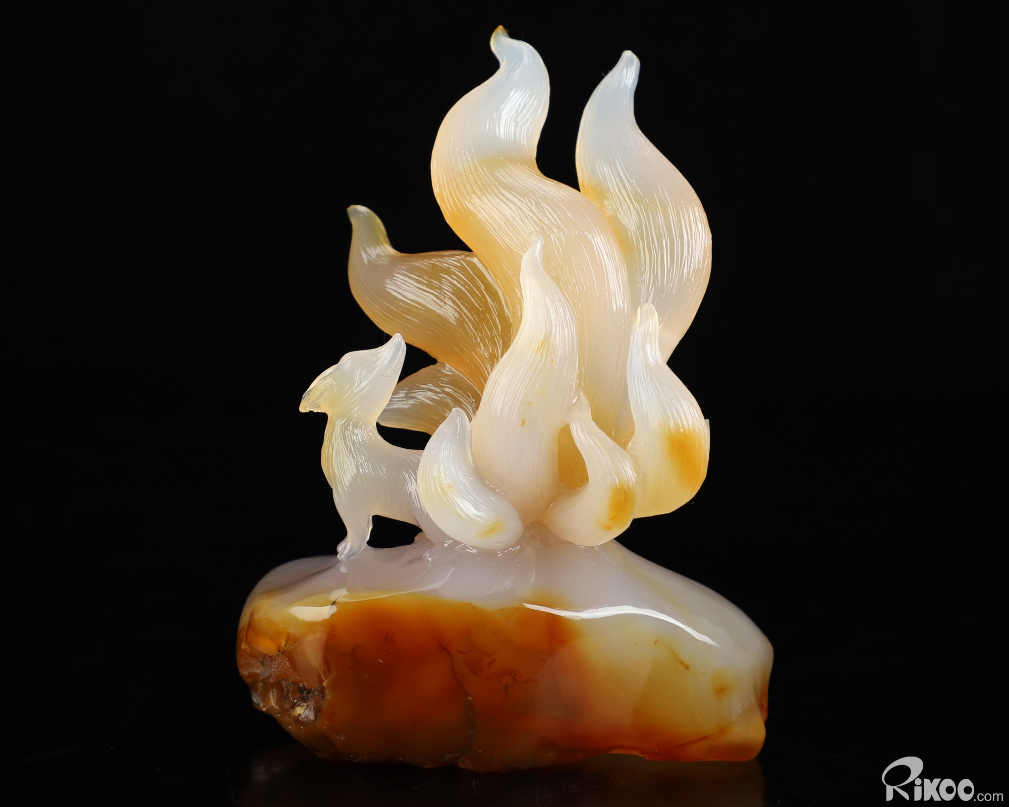 4.3" Agate Hand Carved Crystal Nine-Tailed Fox Sculpture, Crystal Healing