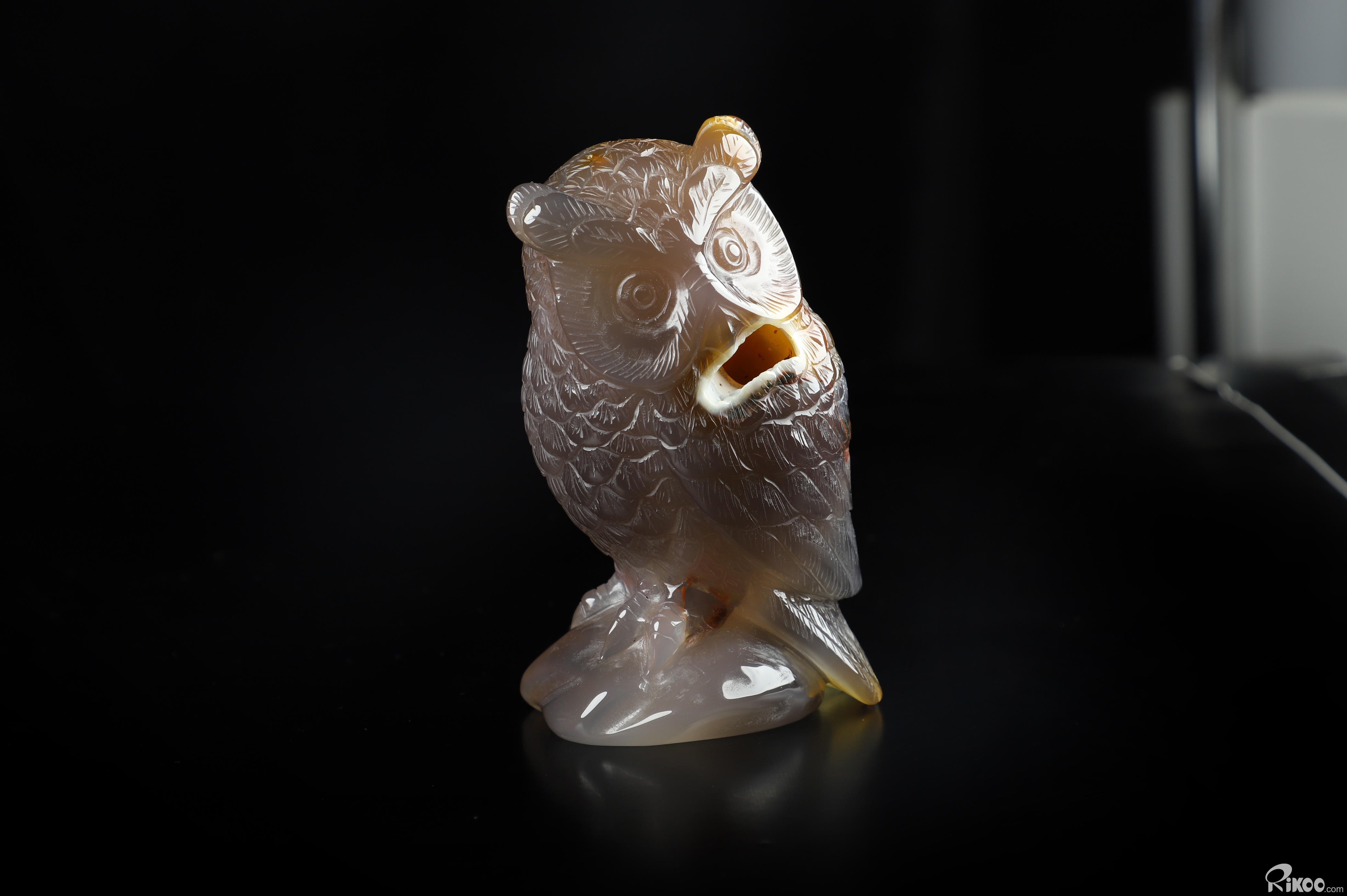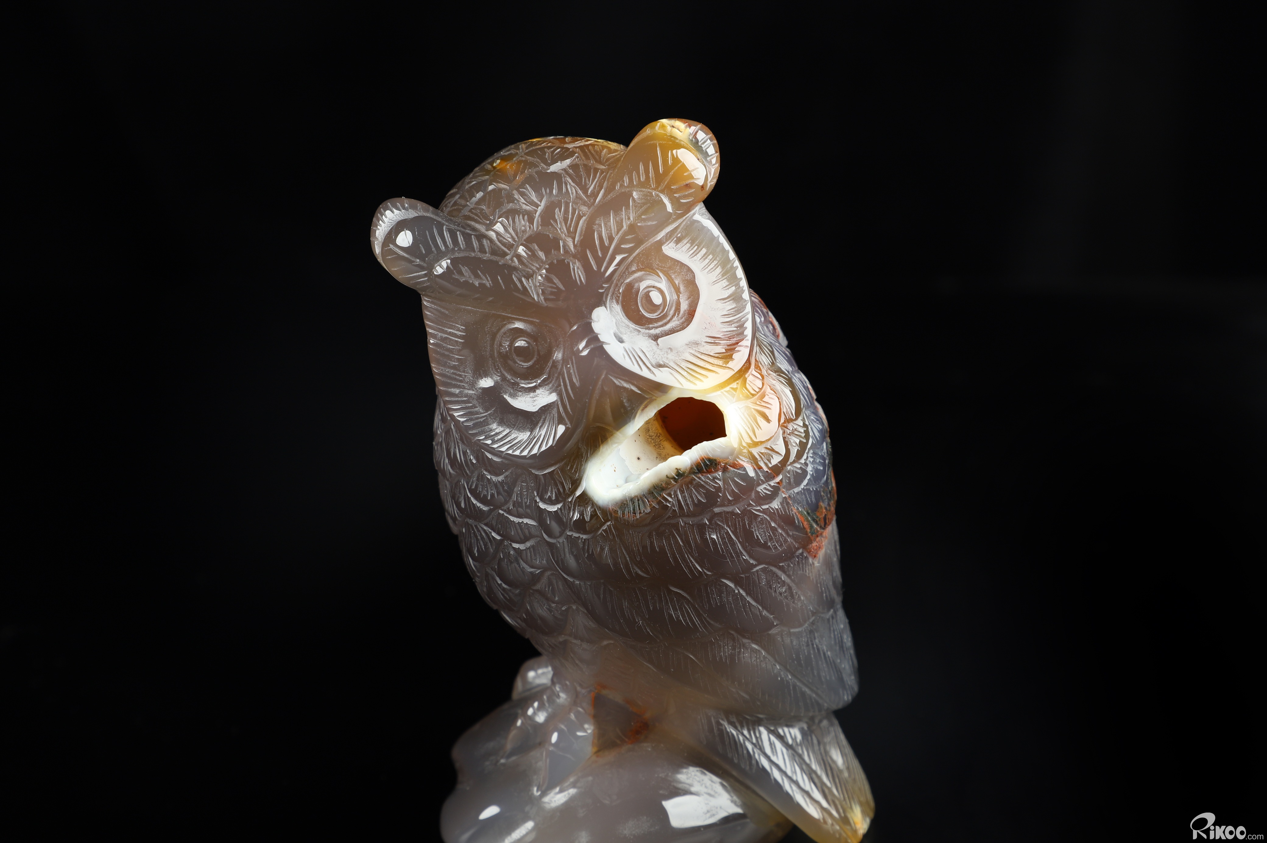 You are looking at a Agate Owl. The Owl is 4.3 inches long from top to bottom.