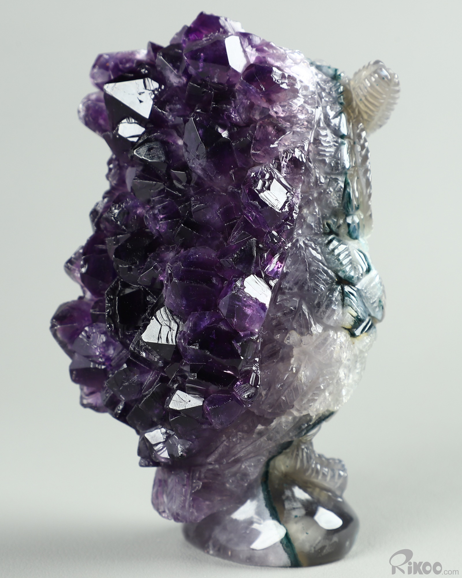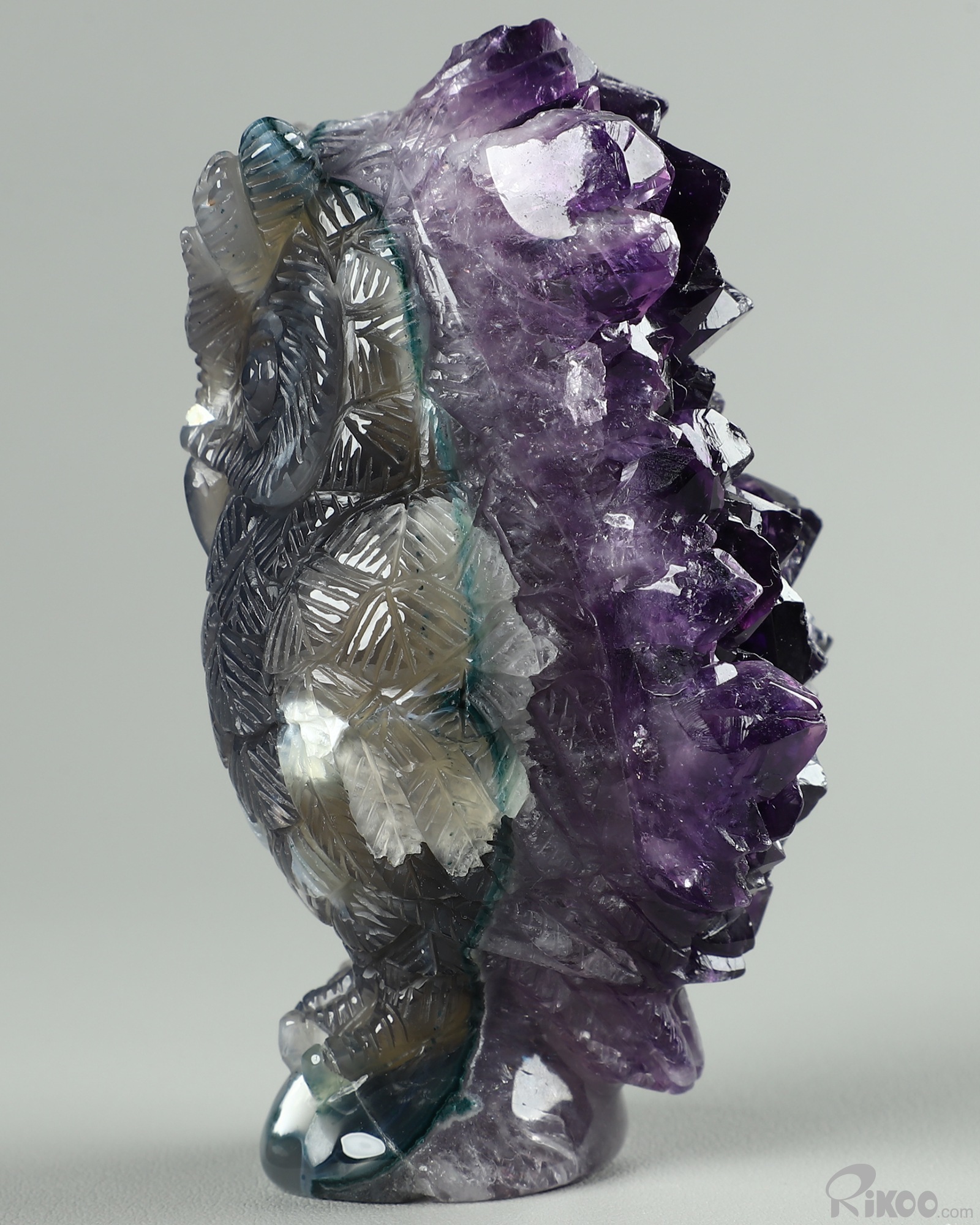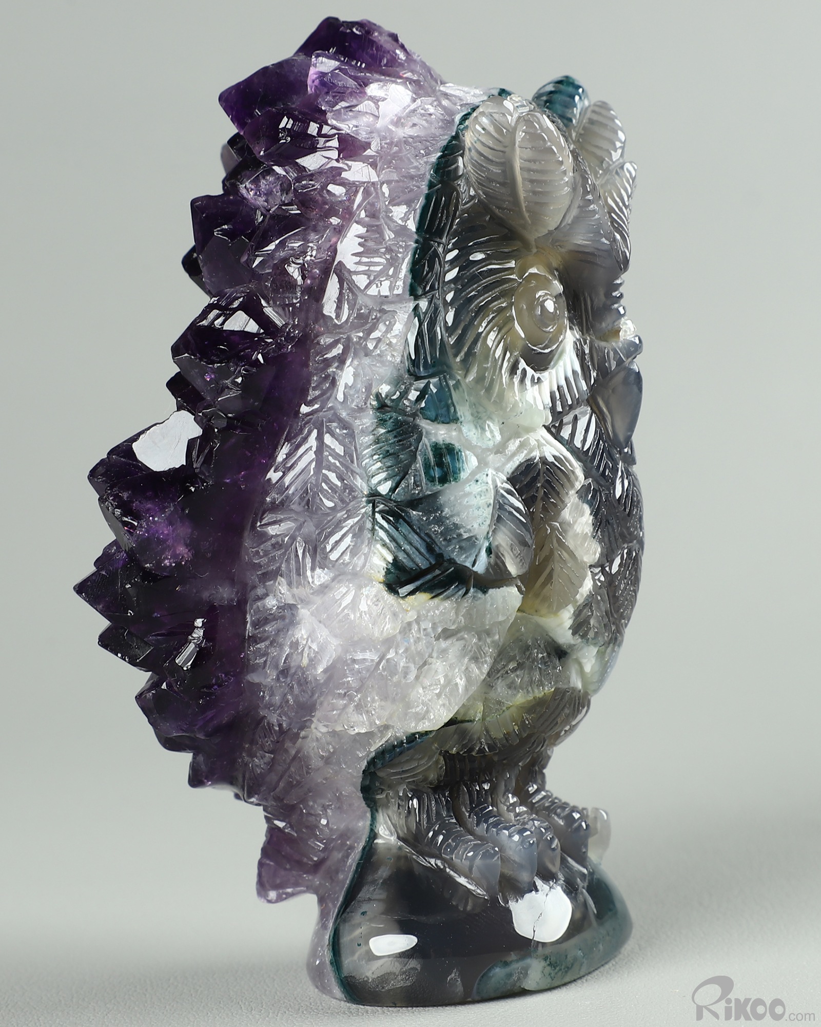 4.3" Amethyst & Agate Carved Crystal Owl, Realistic, Crystal Healing
