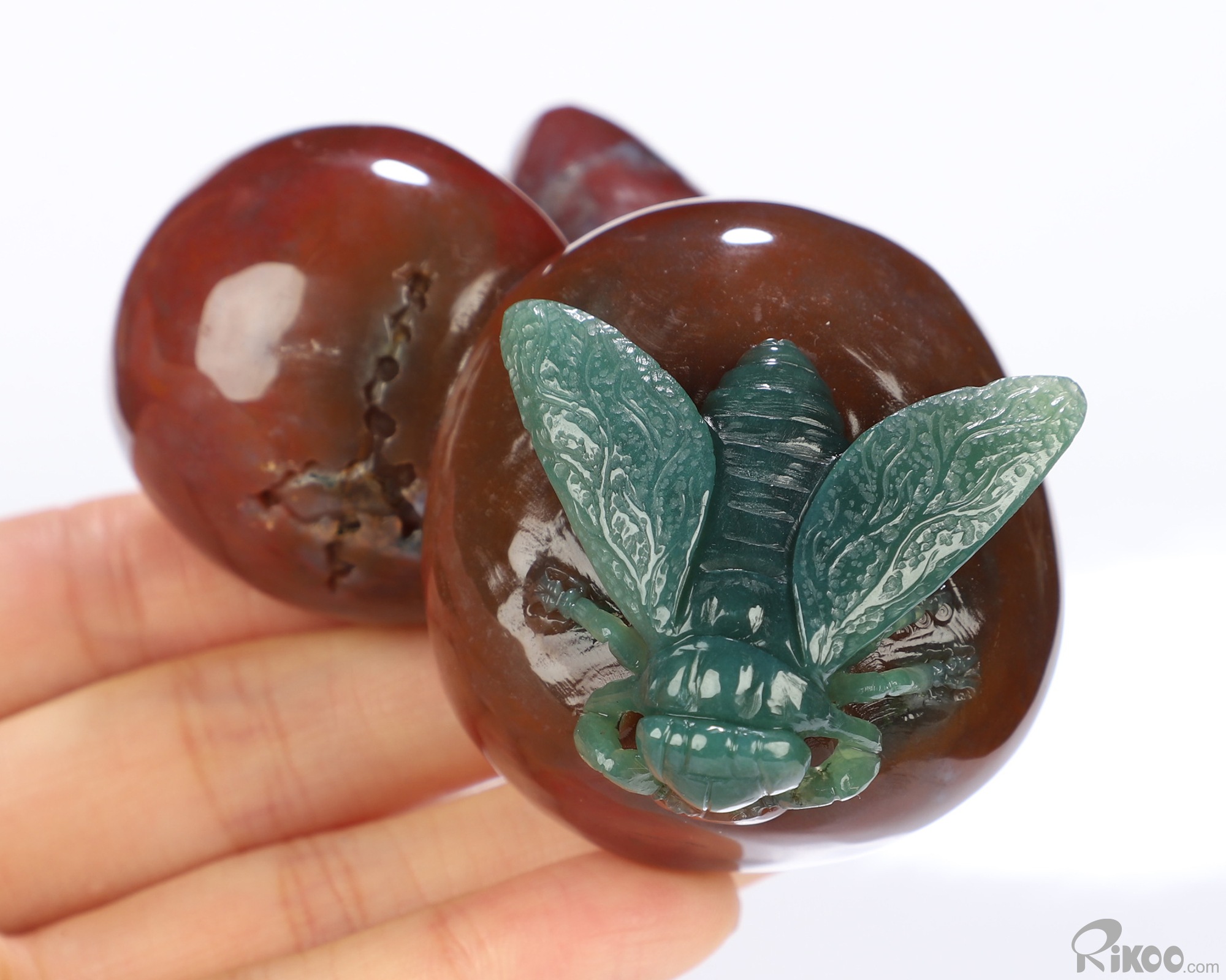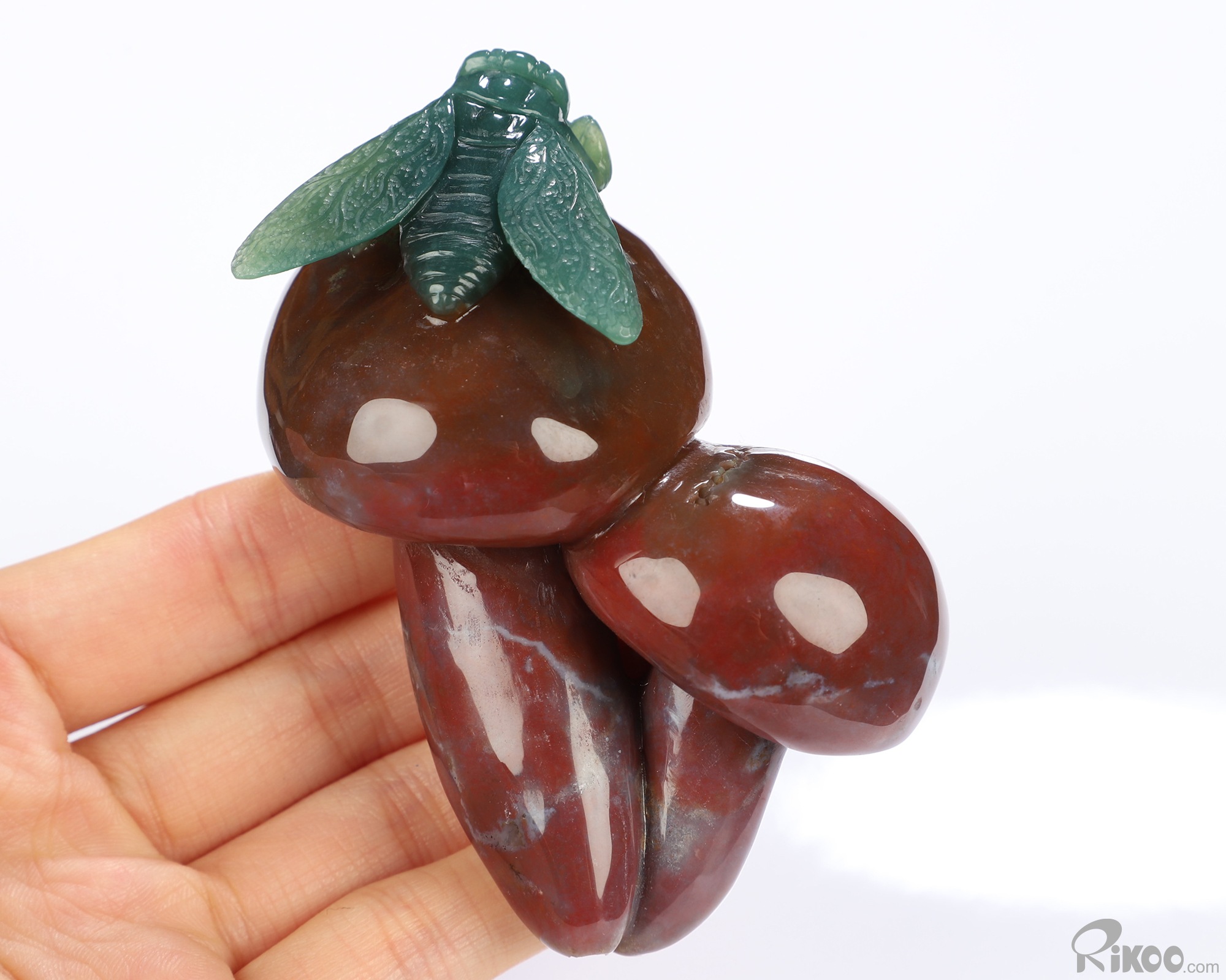You are looking at an Indian Agate Mushroom sculpture. The sculpture is 4.3 inches long.