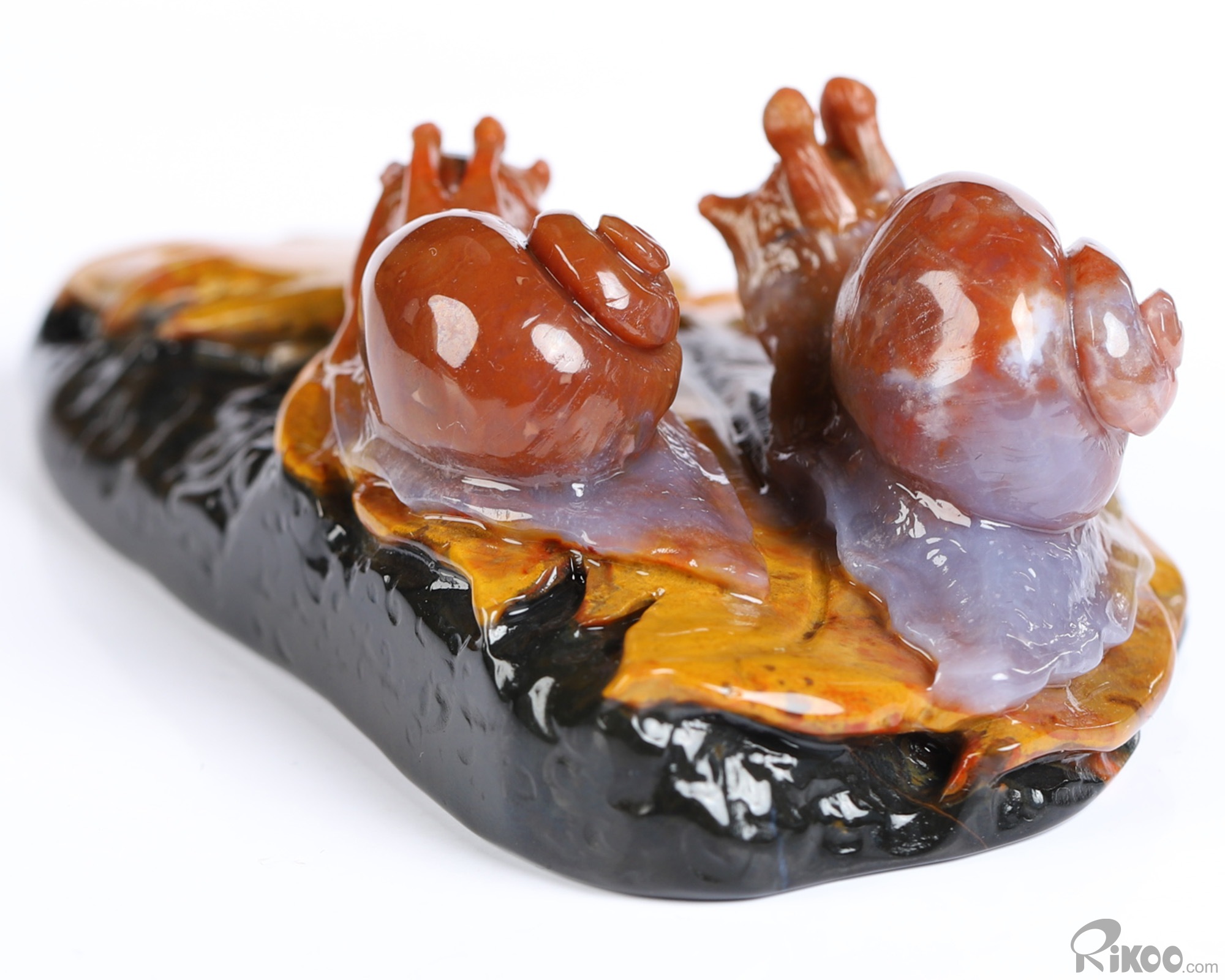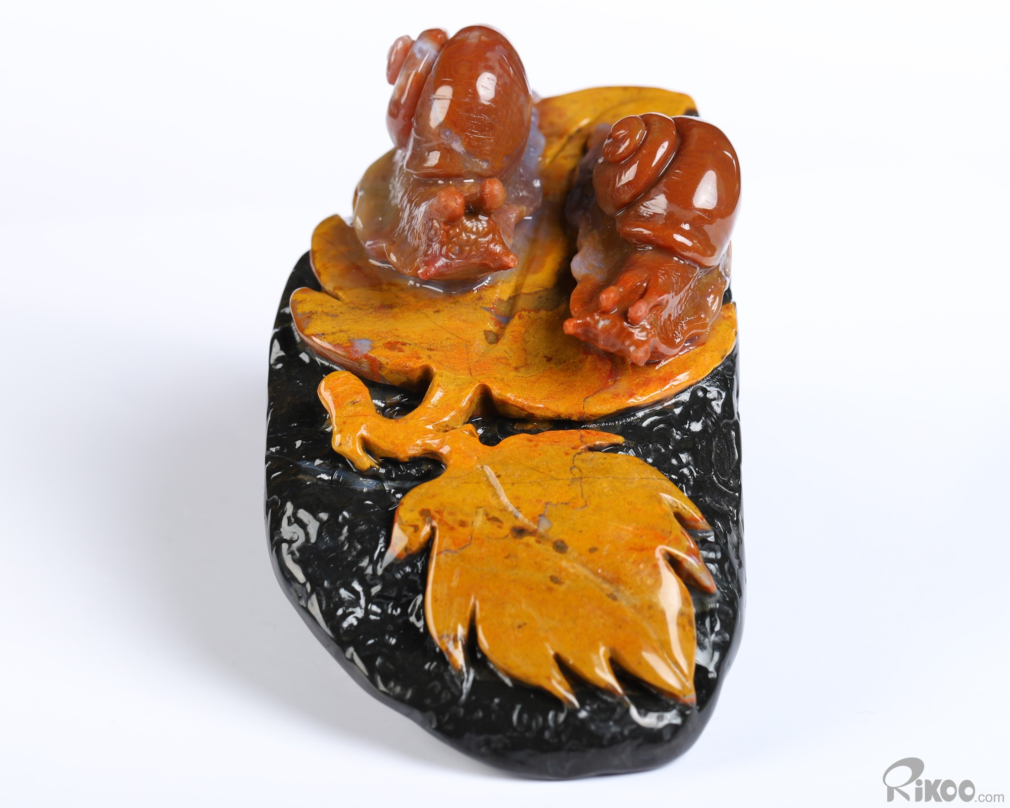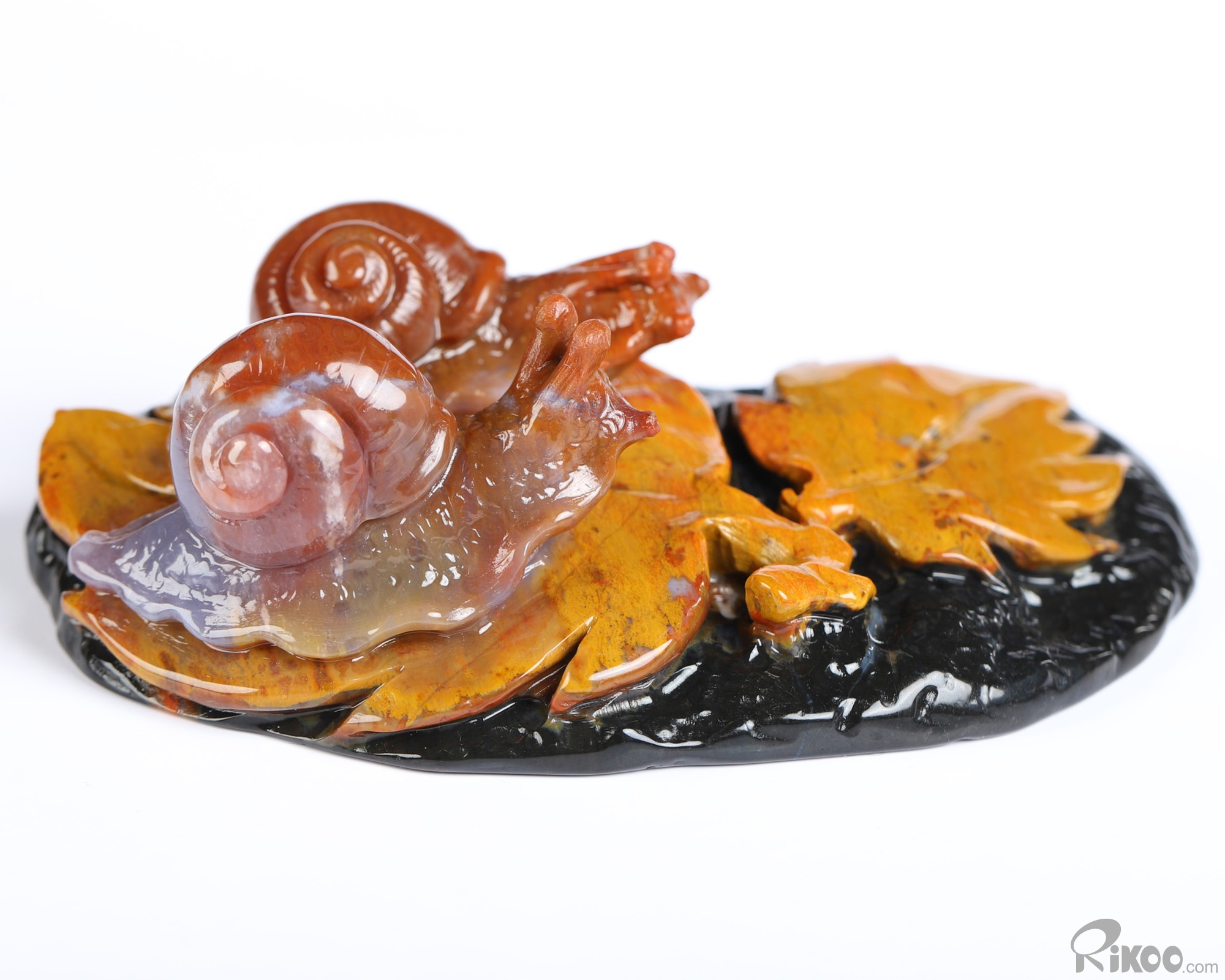 4.3" Indian Agate Hand Carved Crystal Snails Sculpture, Crystal Healing