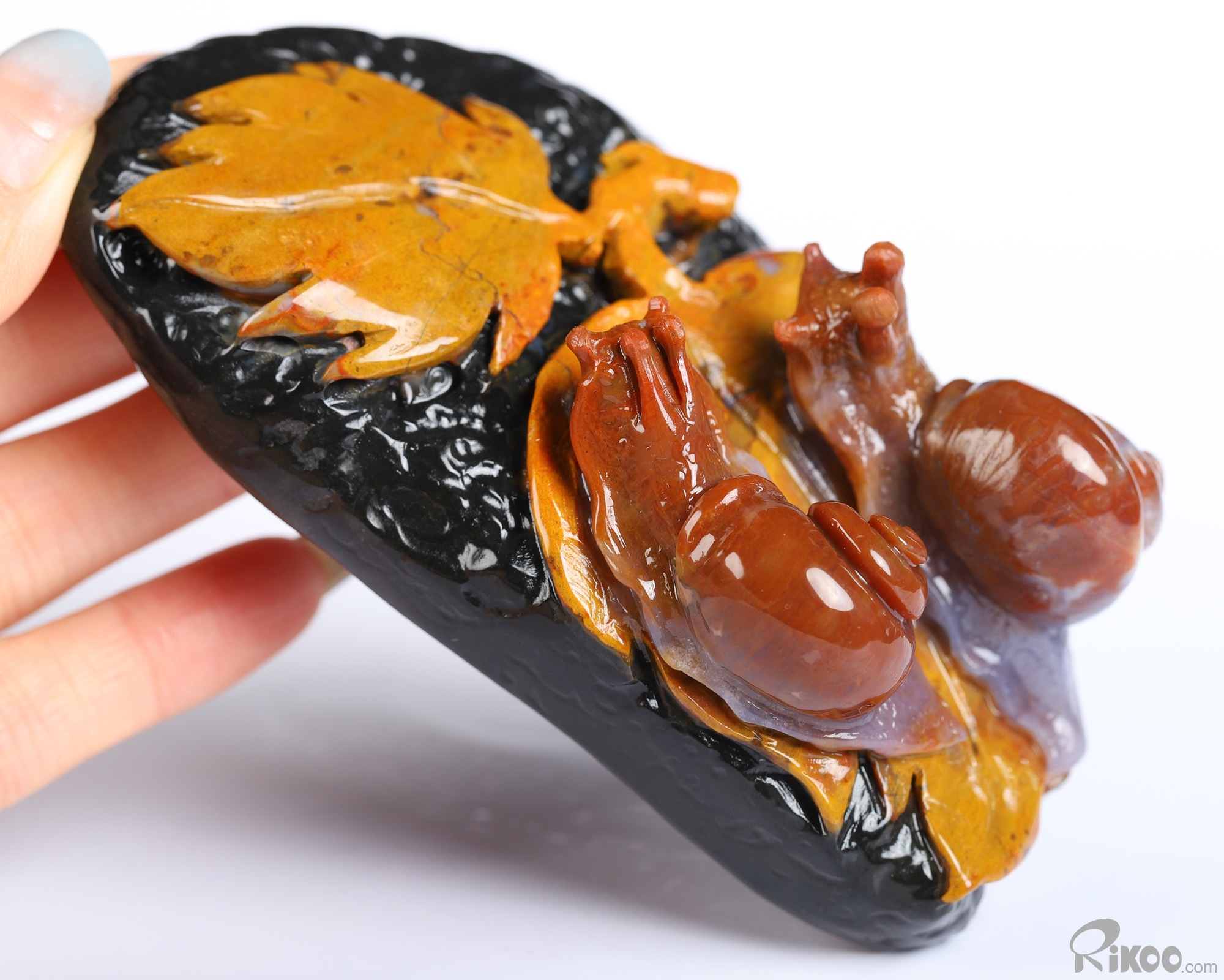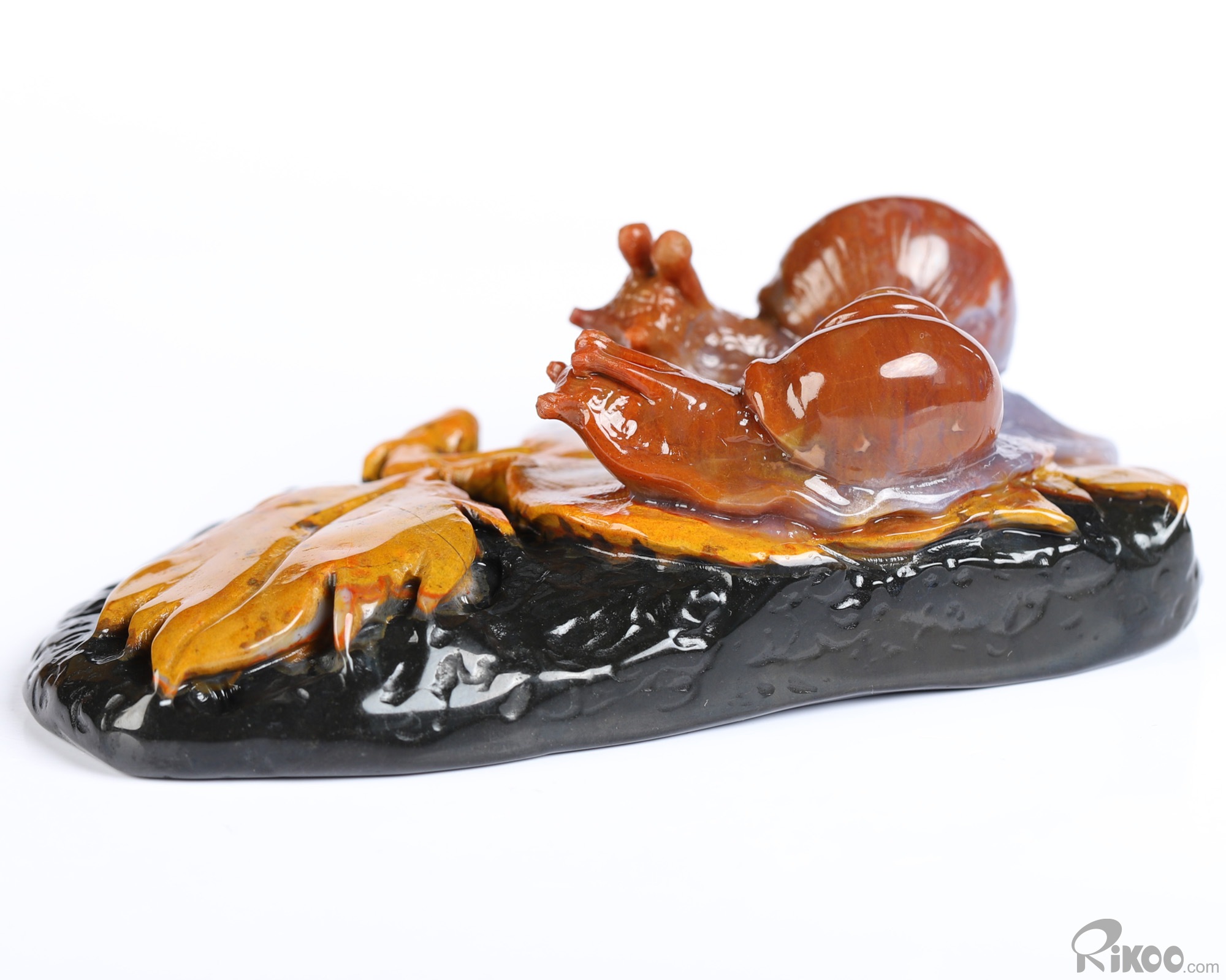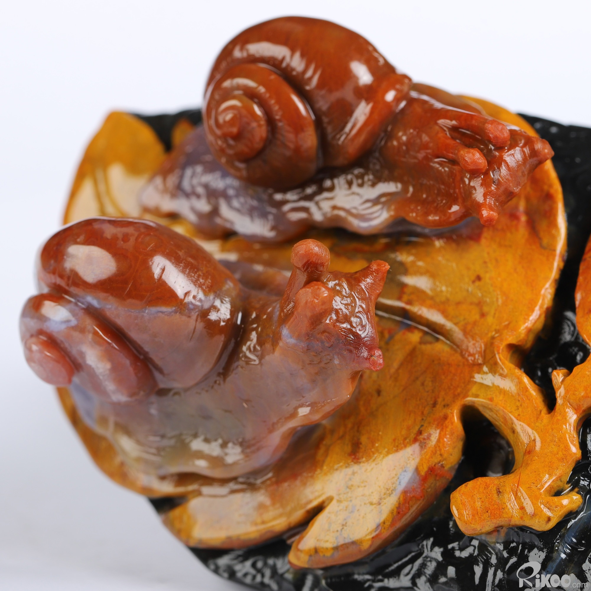 4.3" Indian Agate Hand Carved Crystal Snails Sculpture, Crystal Healing