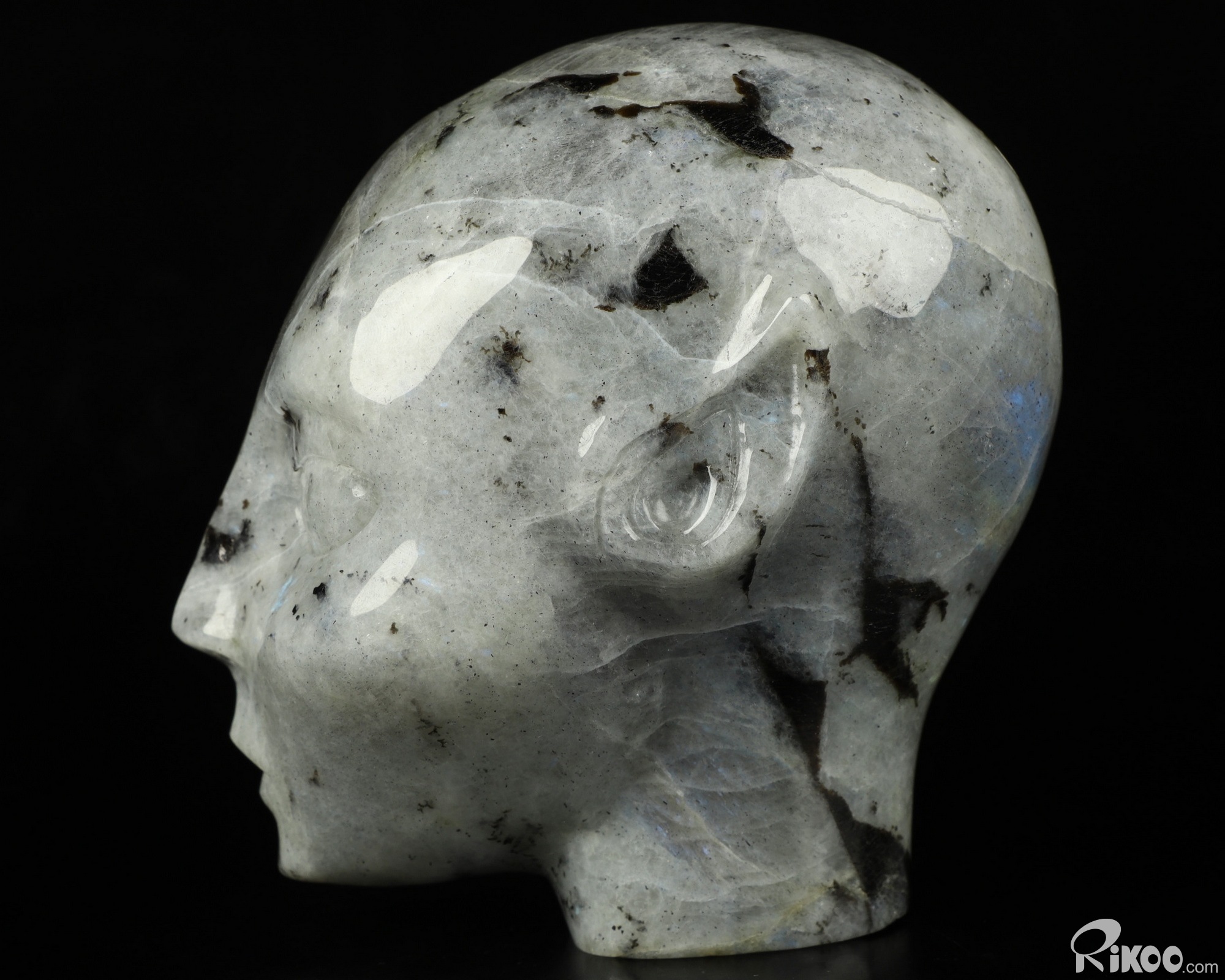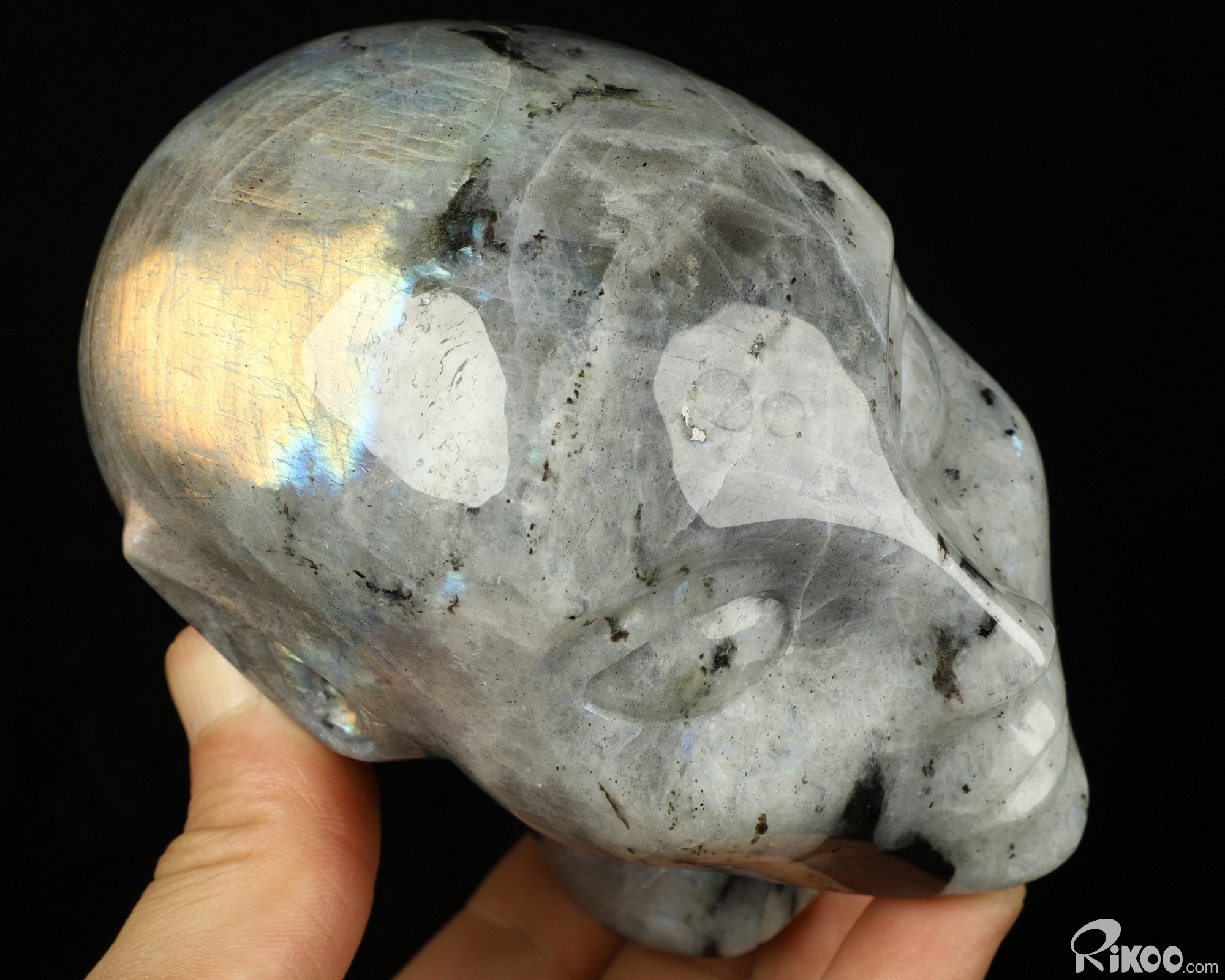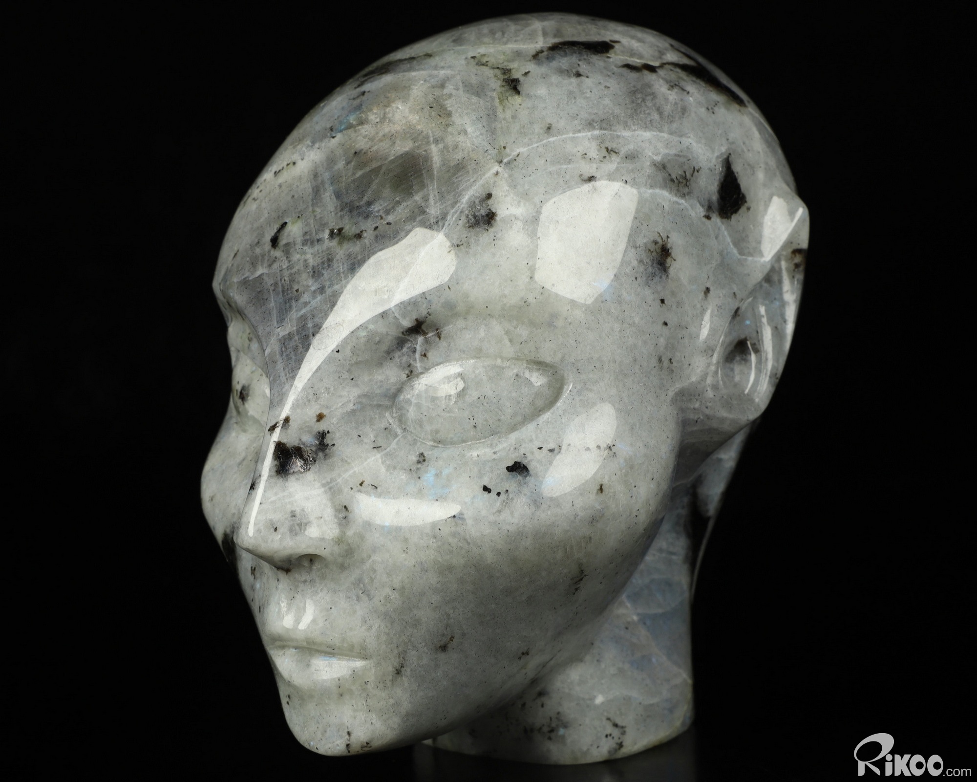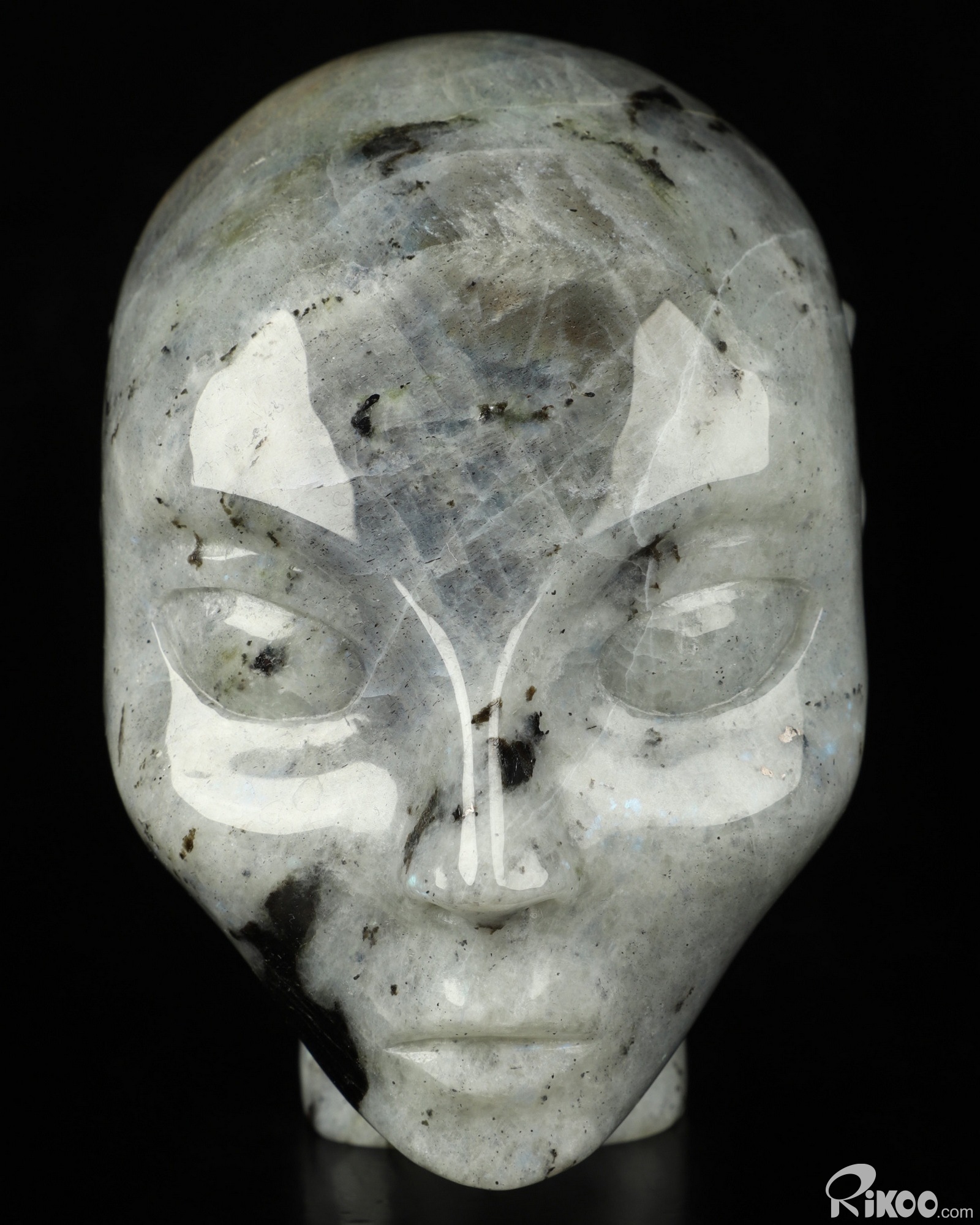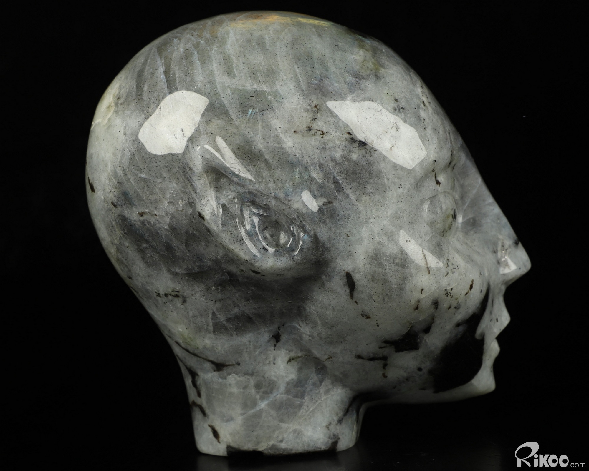 4.3" Labradorite Carved Fairy Elf Alien Crystal Skull Companion Sculpture, Crystal Healing
