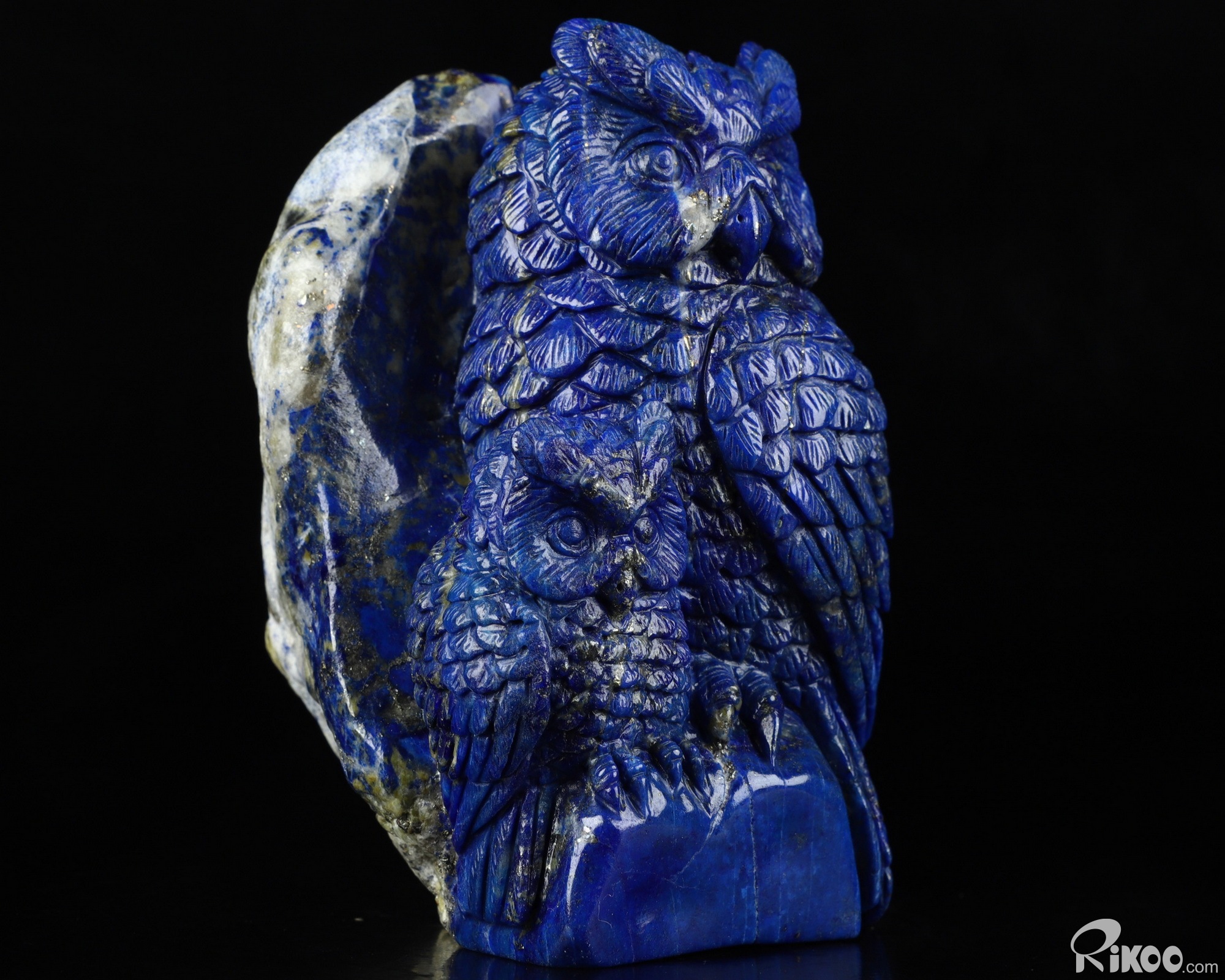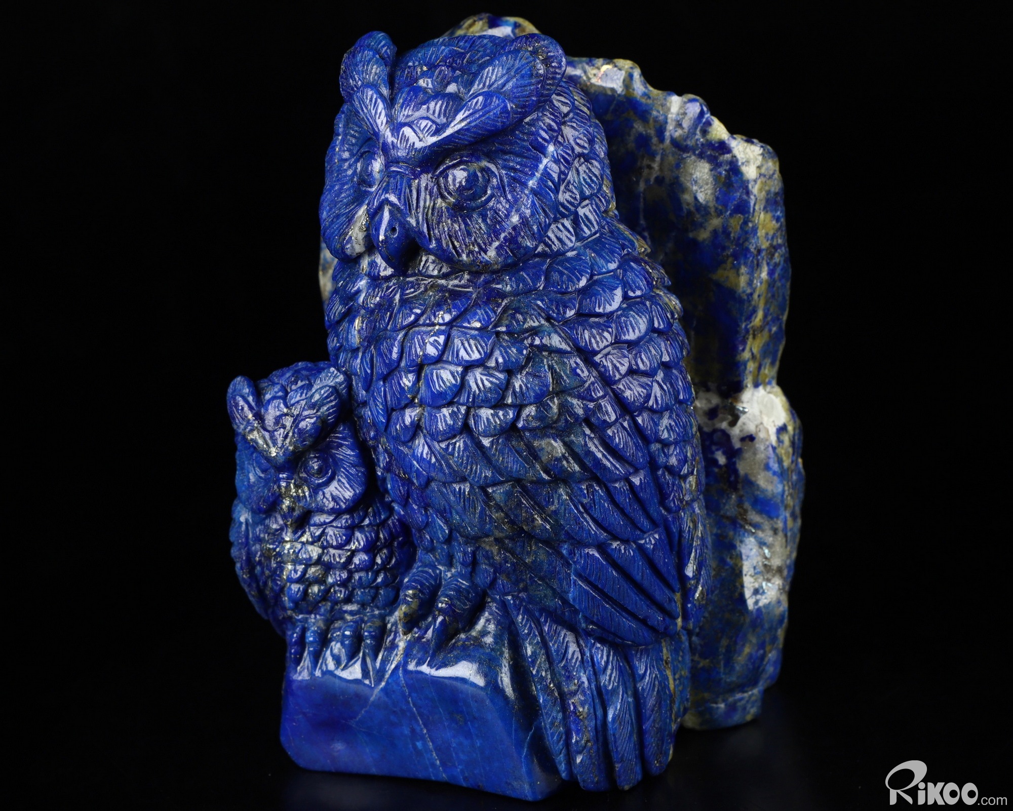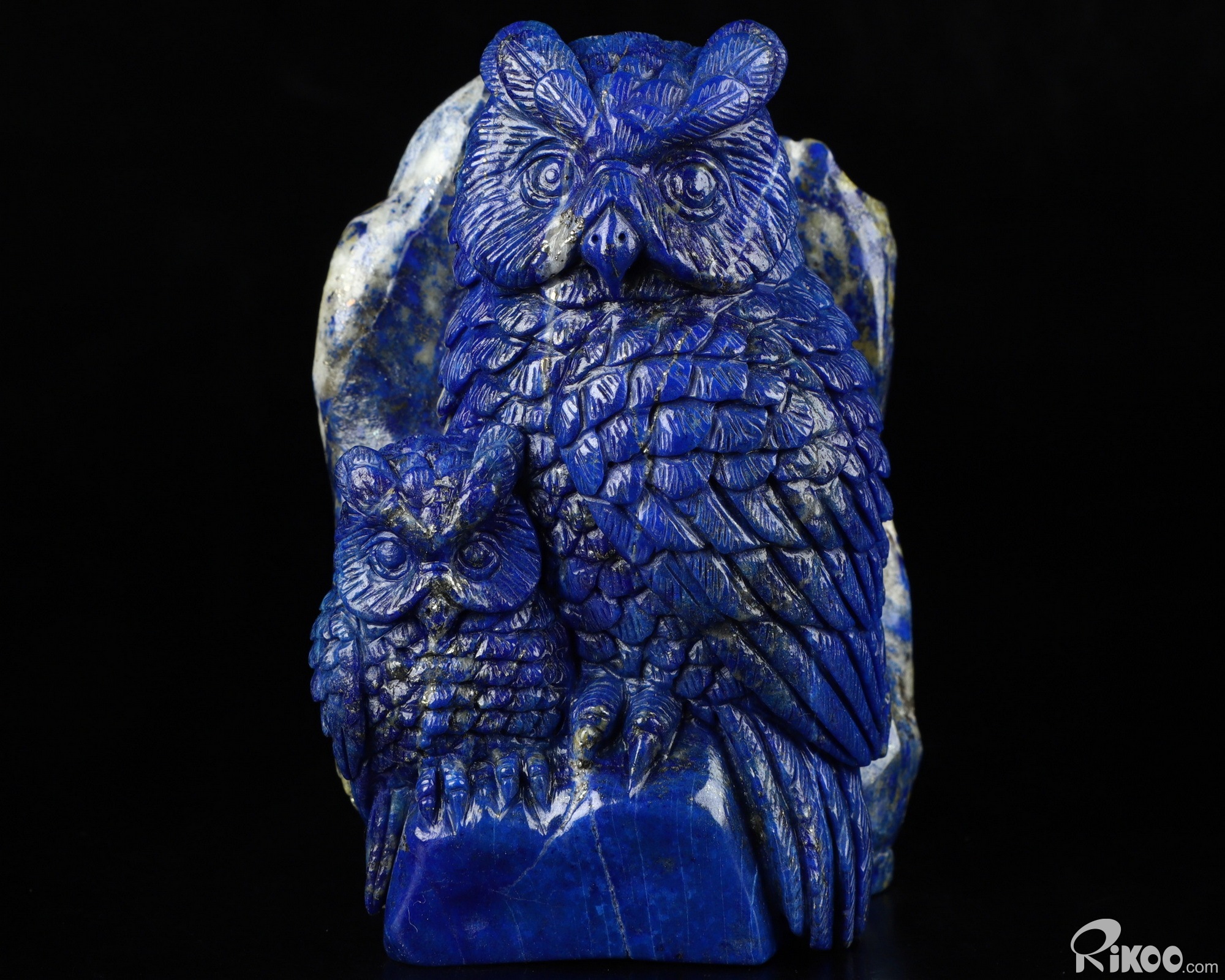 4.3" Lapis Lazuli Carved Crystal Owl Sculpture Mother and Son, Realistic, Crystal Healing